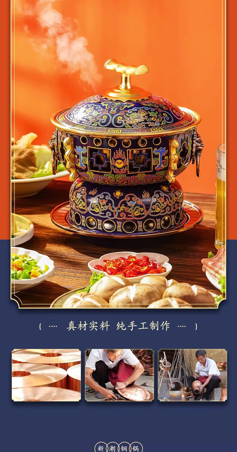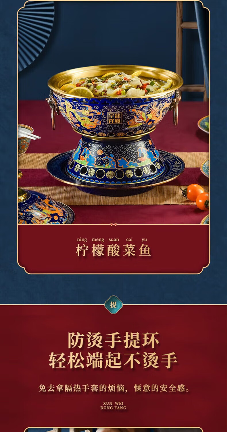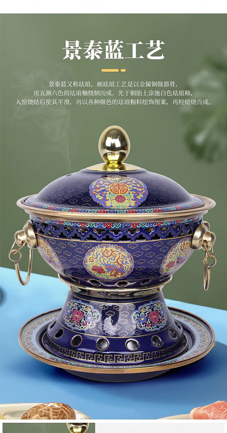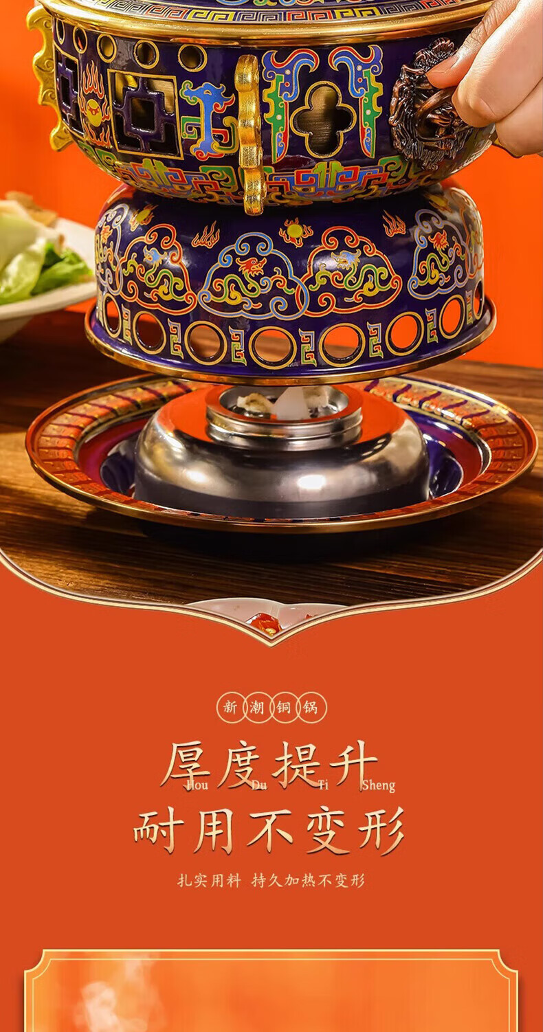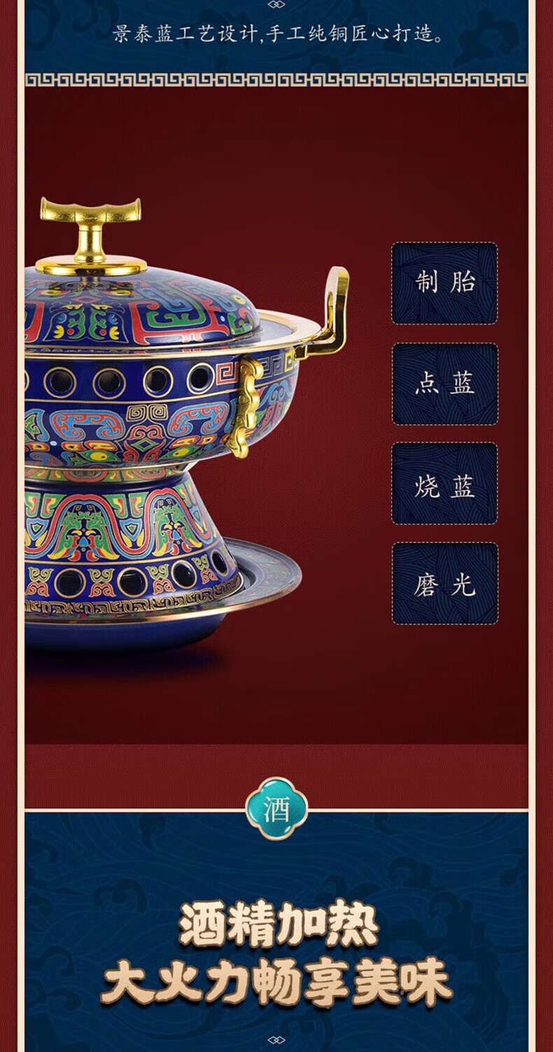 景泰蓝铜火锅酒精炉火锅专用锅铜锅单人火锅小火锅锅具一人一锅 大号塔型-龙凤款 24cm