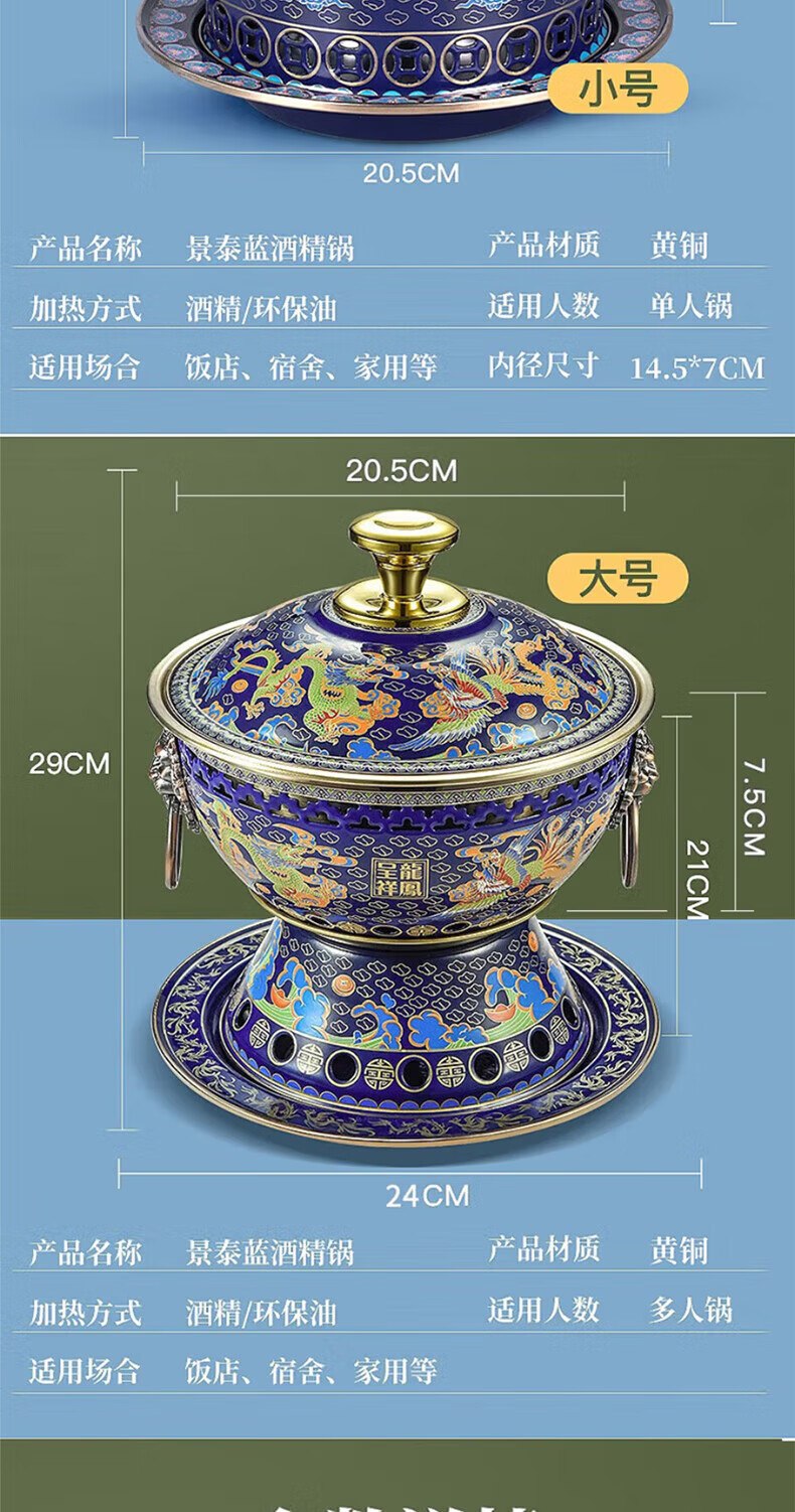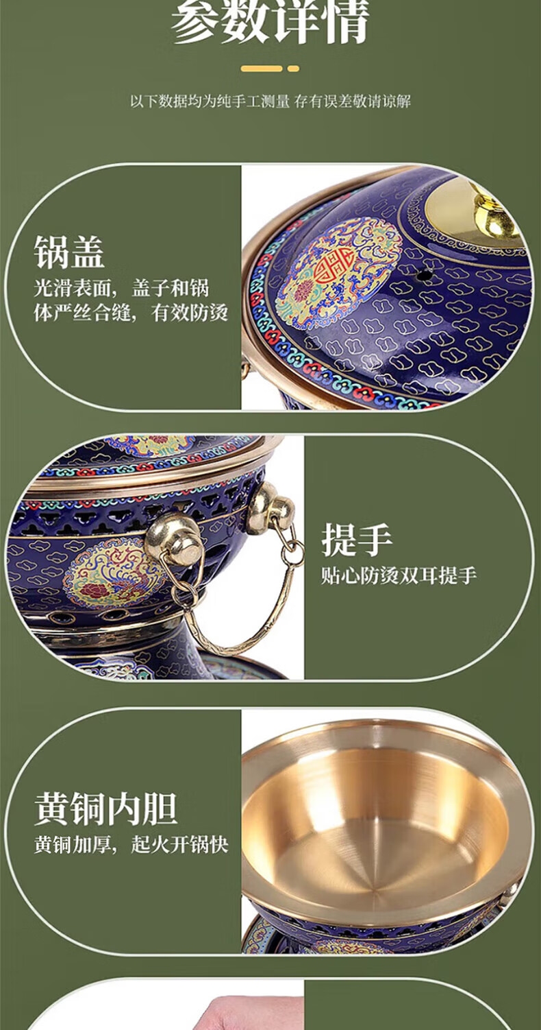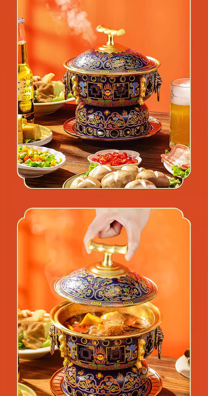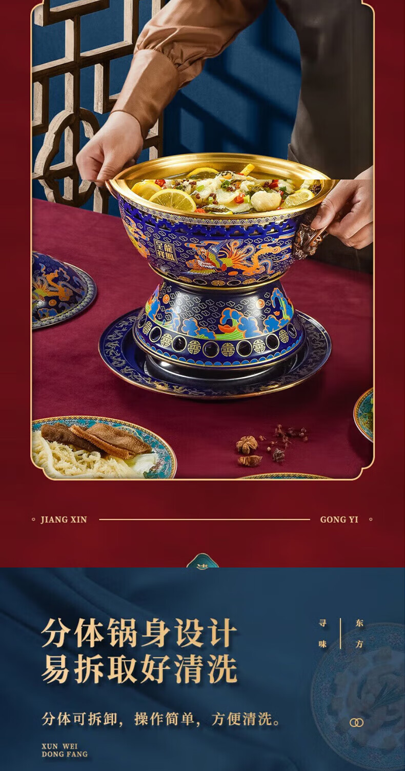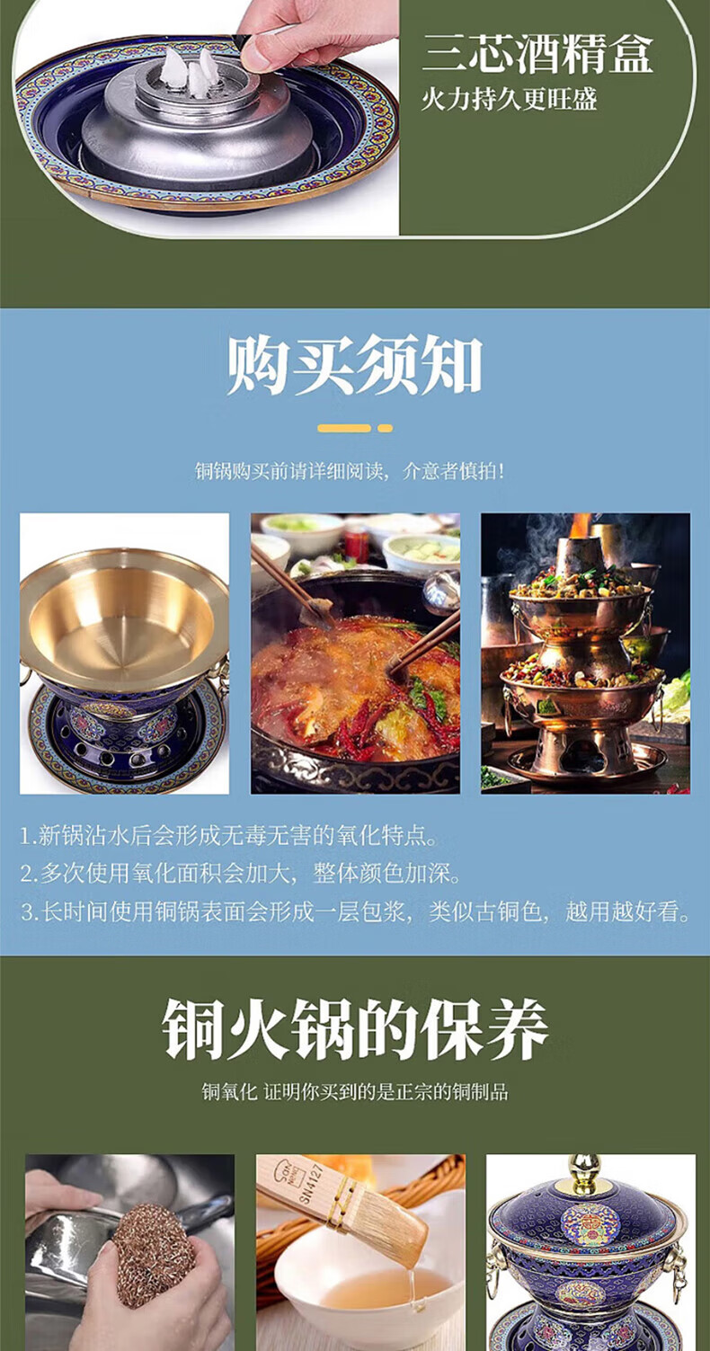 景泰蓝铜火锅酒精炉火锅专用锅铜锅单人火锅小火锅锅具一人一锅 大号塔型-龙凤款 24cm