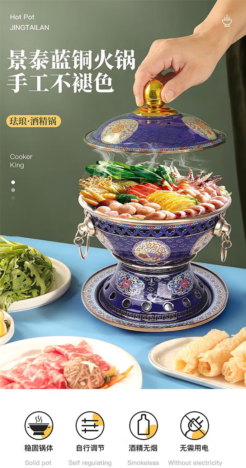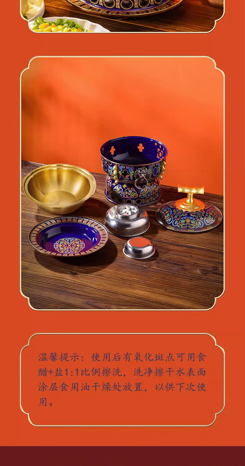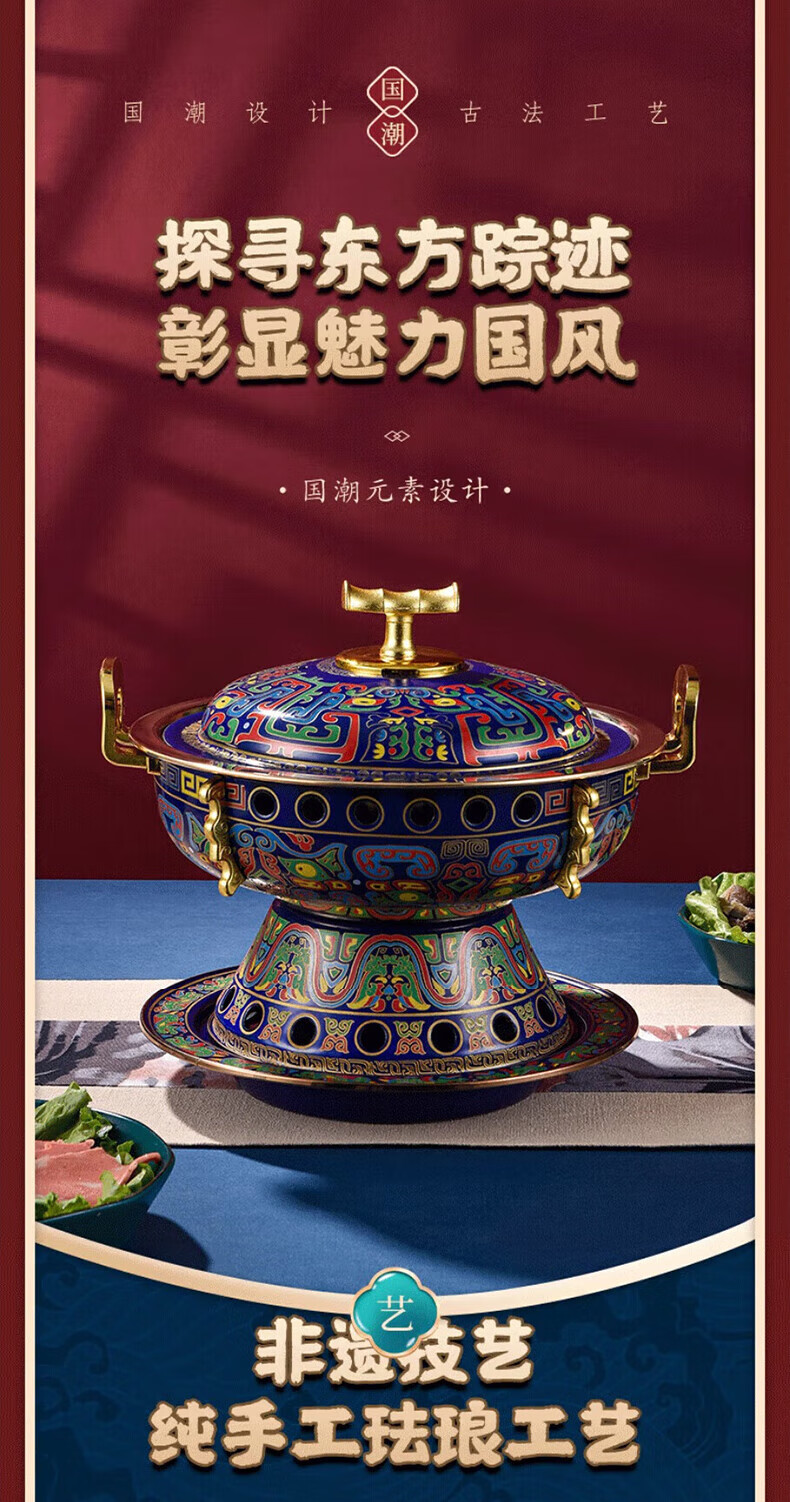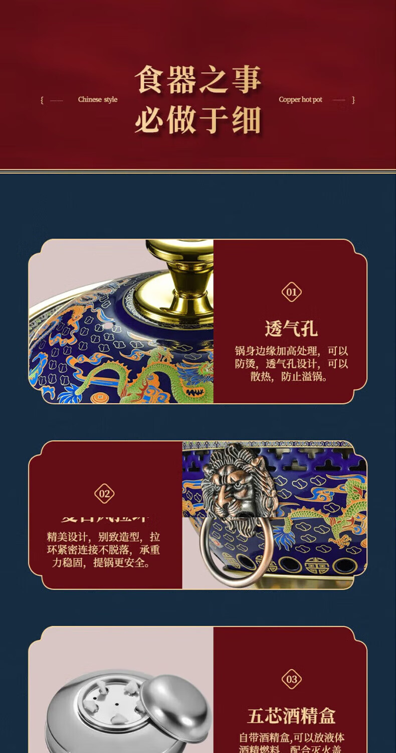 景泰蓝铜火锅酒精炉火锅专用锅铜锅单人火锅小火锅锅具一人一锅 大号塔型-龙凤款 24cm