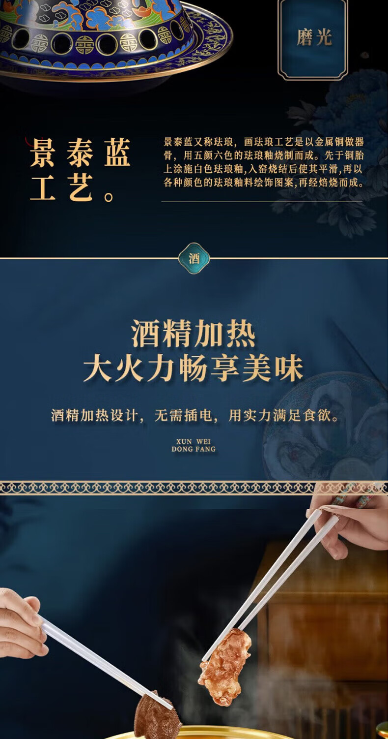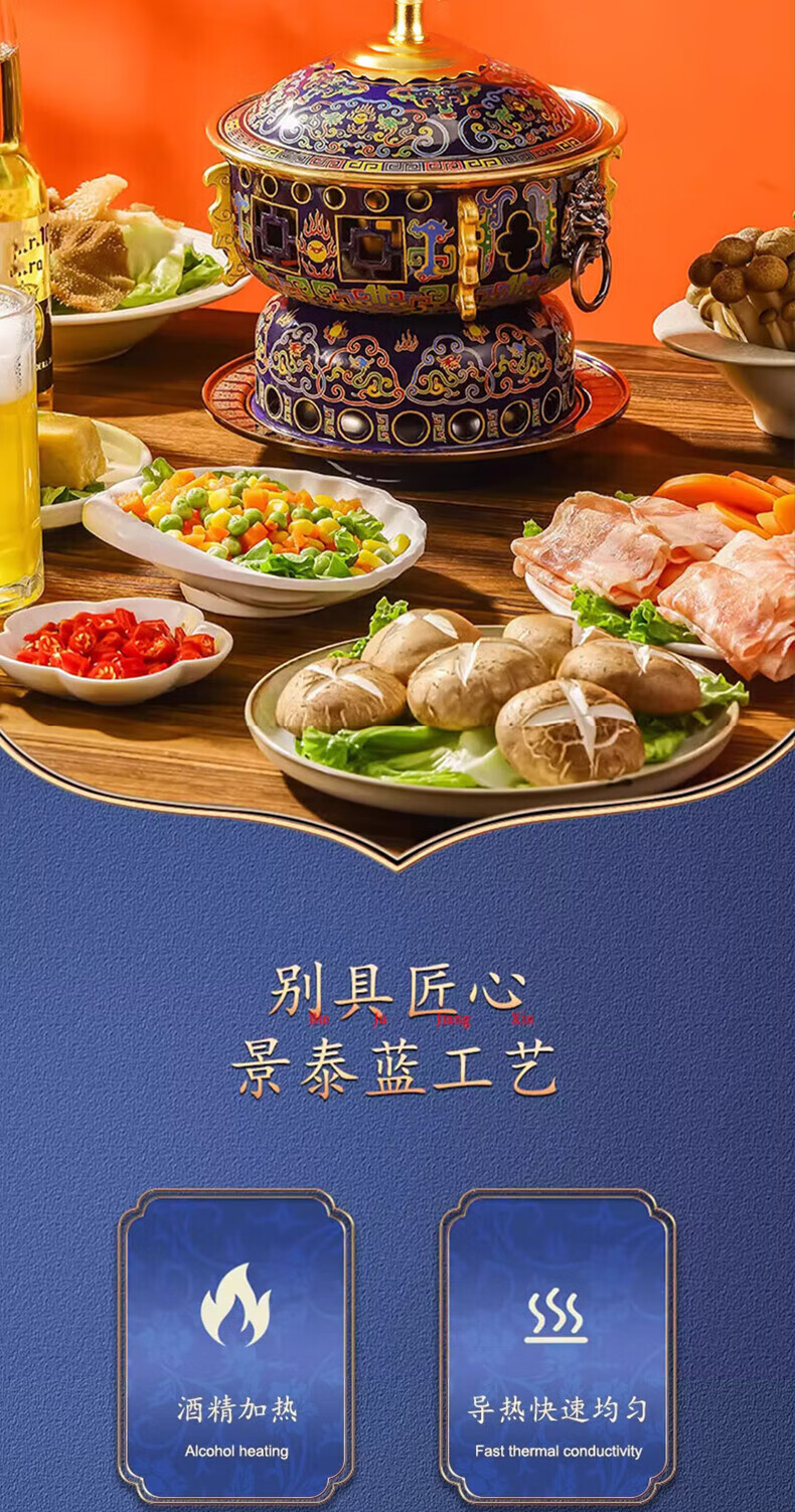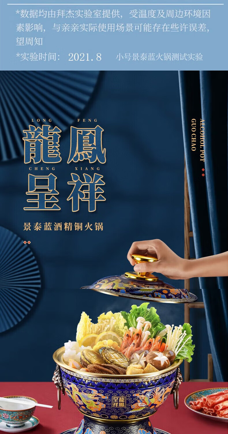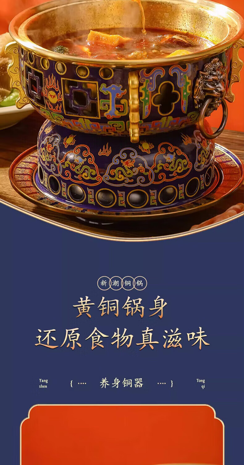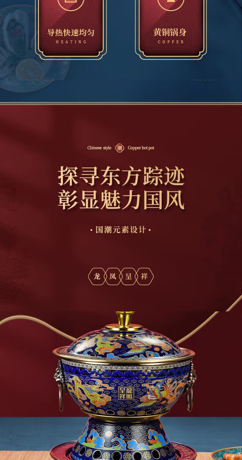 景泰蓝铜火锅酒精炉火锅专用锅铜锅单人火锅小火锅锅具一人一锅 大号塔型-龙凤款 24cm