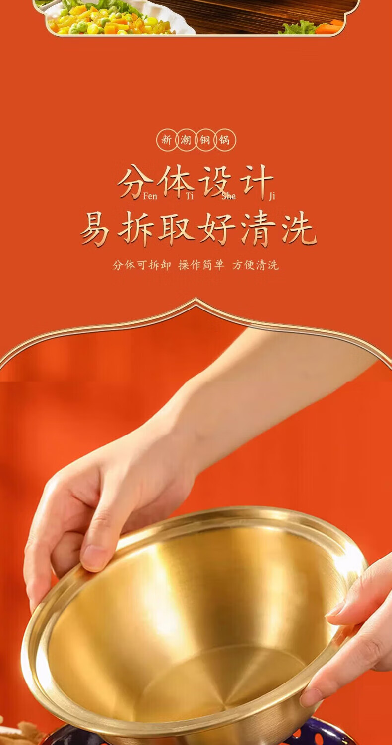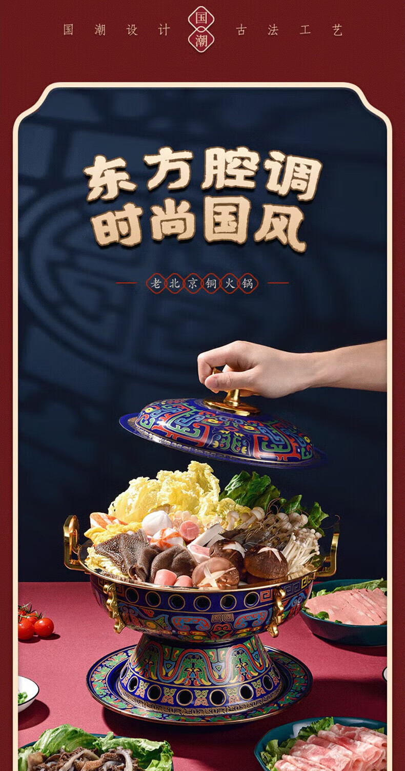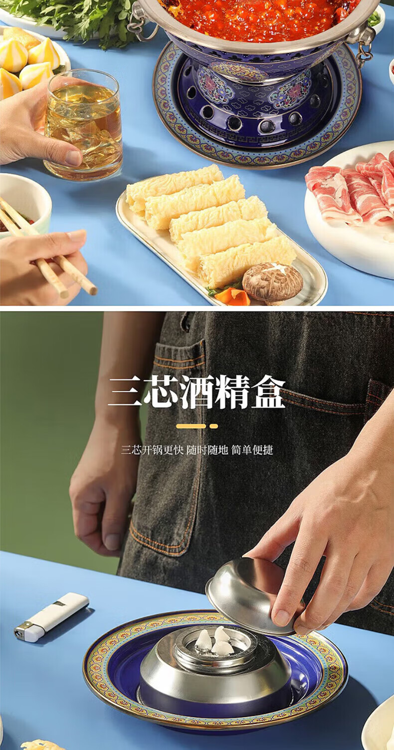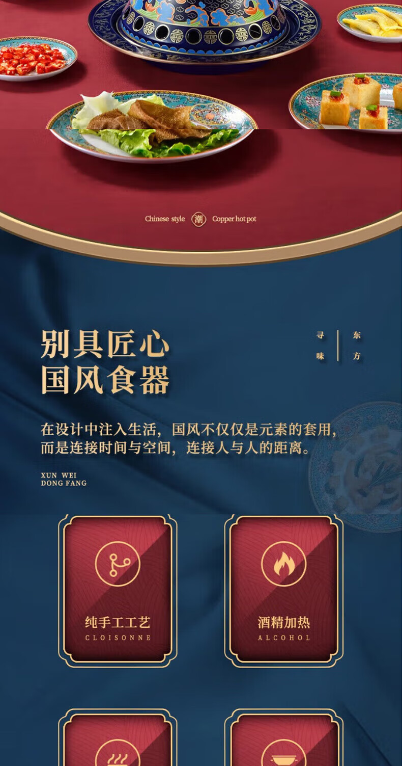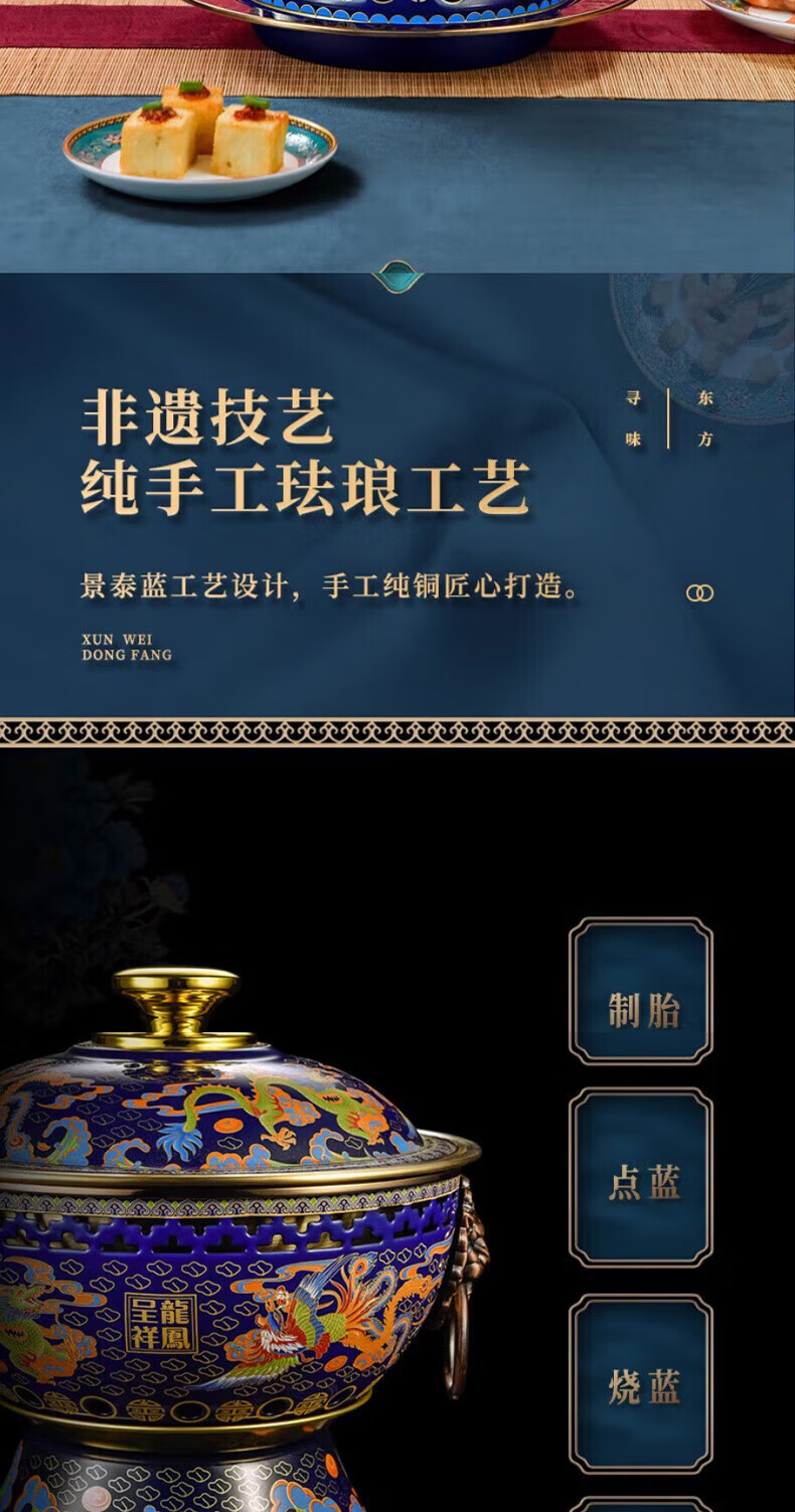 景泰蓝铜火锅酒精炉火锅专用锅铜锅单人火锅小火锅锅具一人一锅 大号塔型-龙凤款 24cm