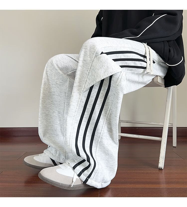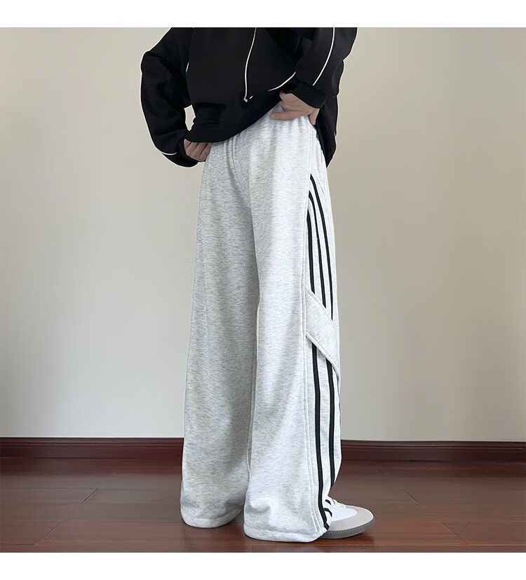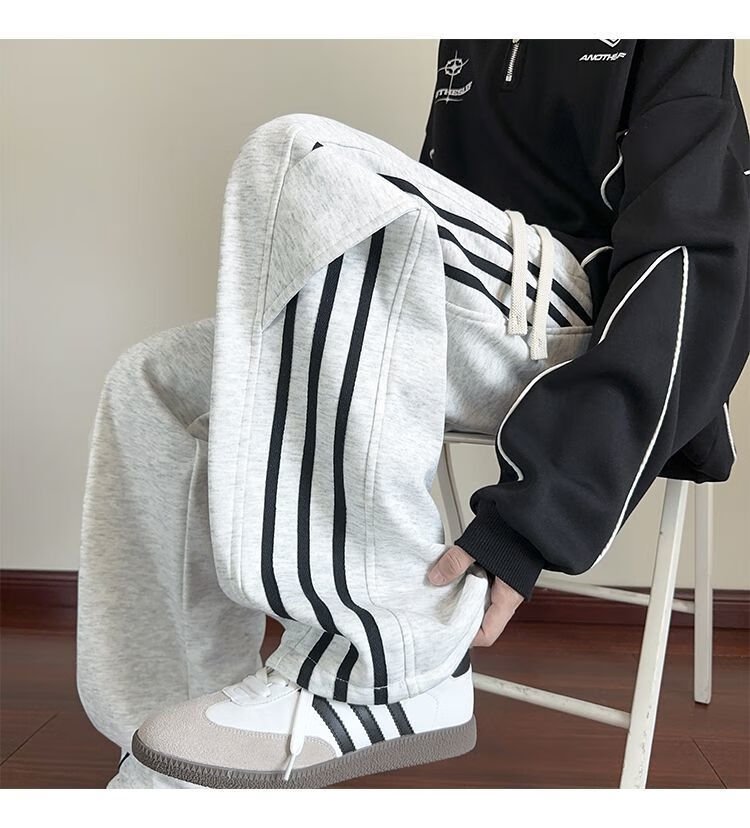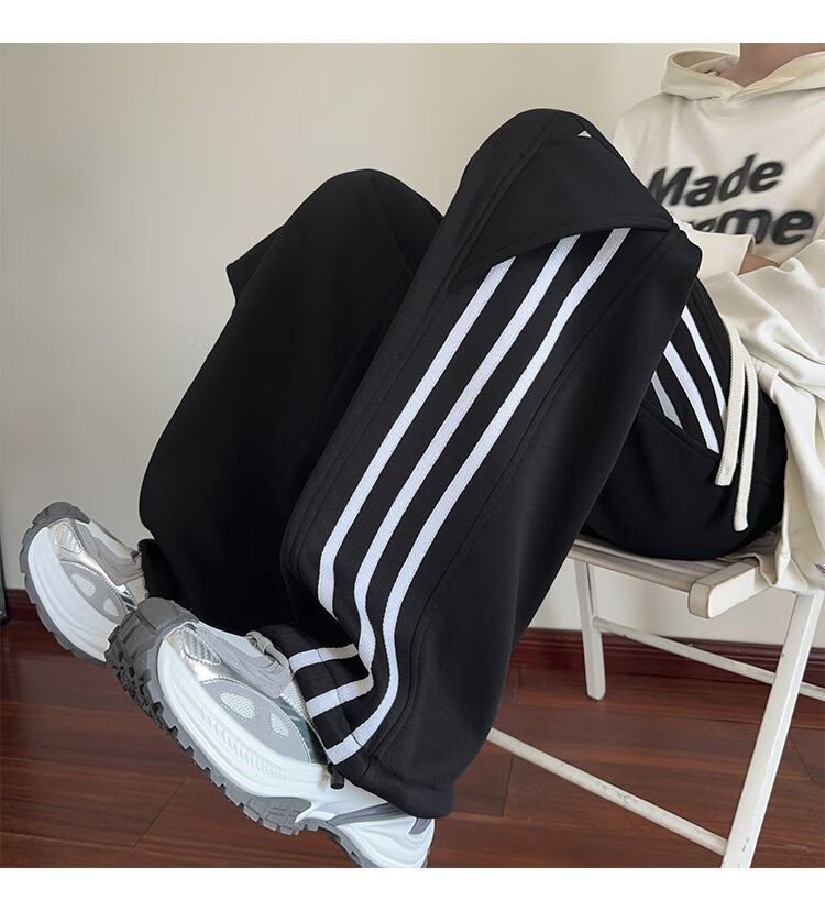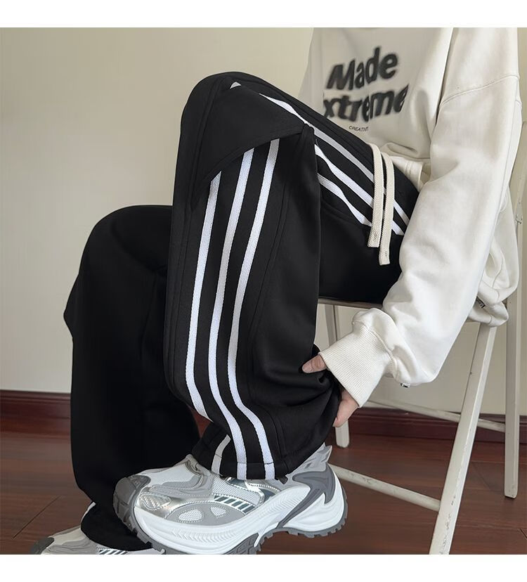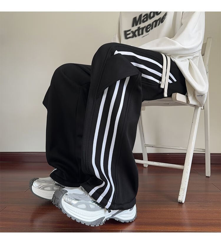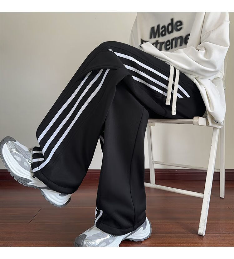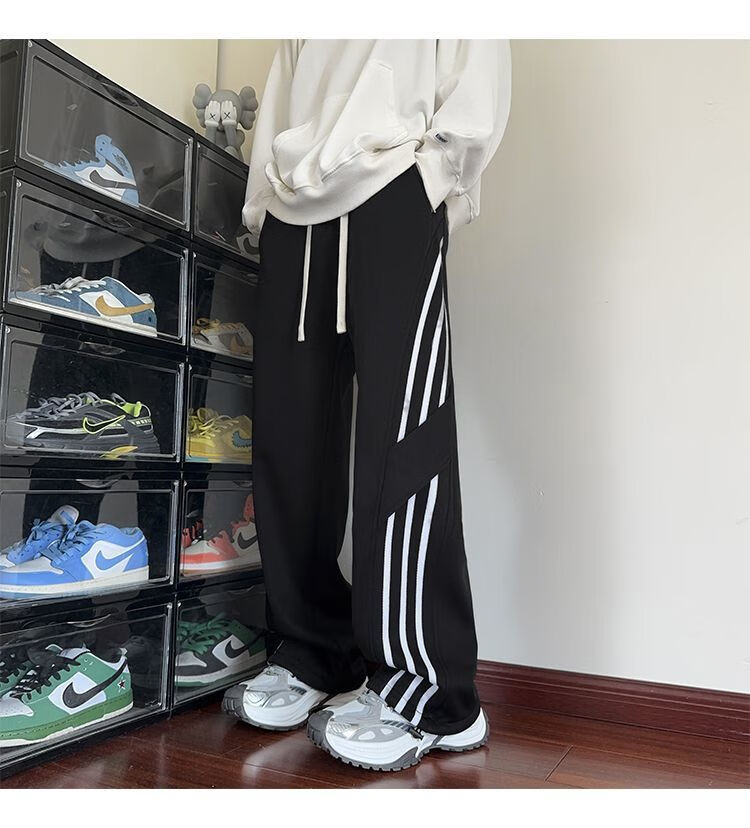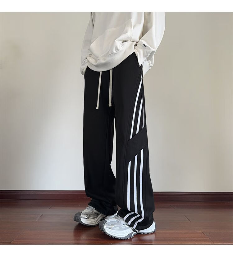 Katuchi black striped splicing straight casual pants for men in spring and autumn trendy handsome loose slimming wide leg sports long pants black white stripes XL recommended 125-140Jin Jin equals 0.5 kg
