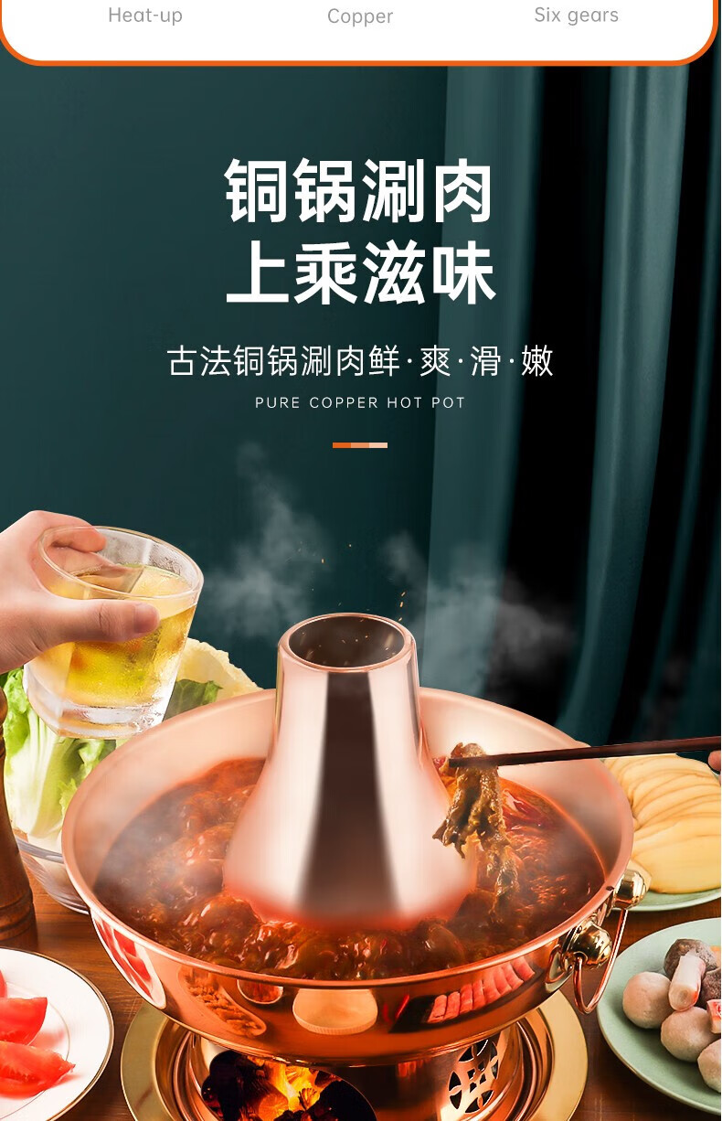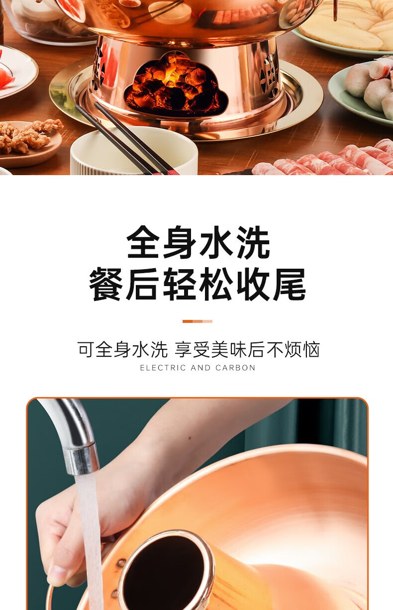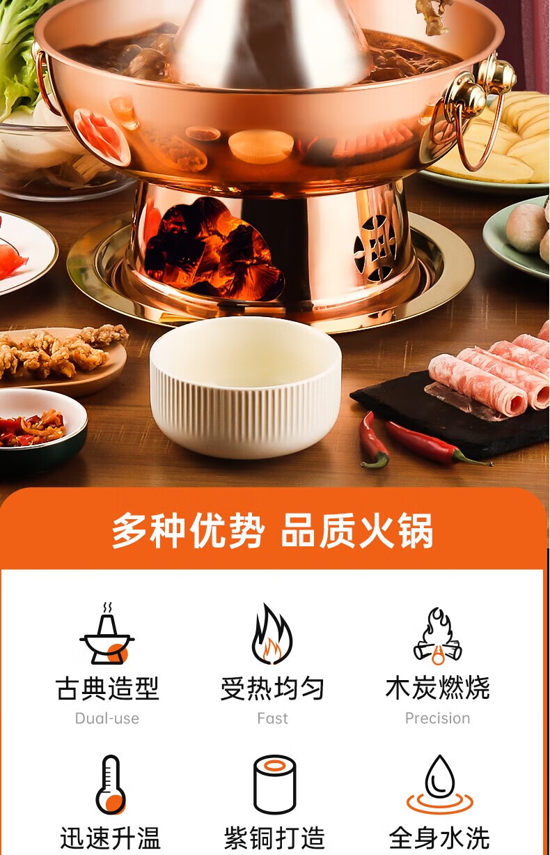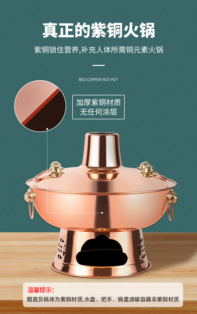 Baijie copper hot pot charcoal hot pot thickened copper hot pot handmade pot copper pot hot pot old-fashioned hot pot special pot extra thick copper clear soup pot 38cm