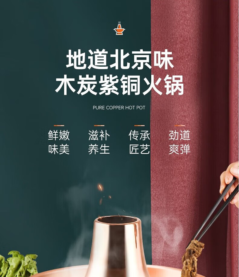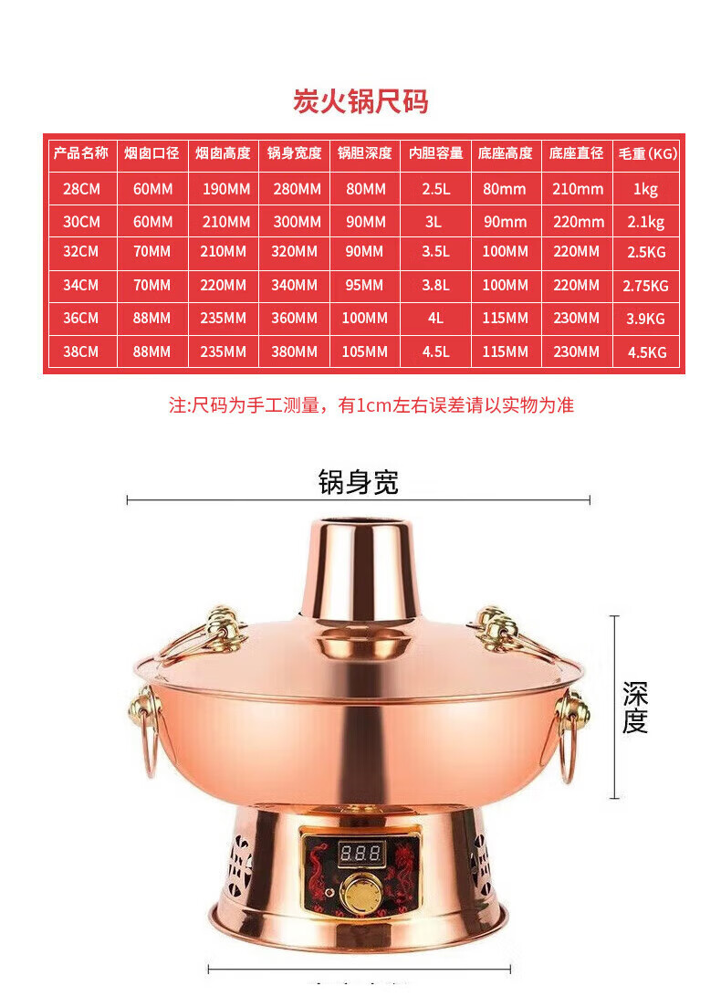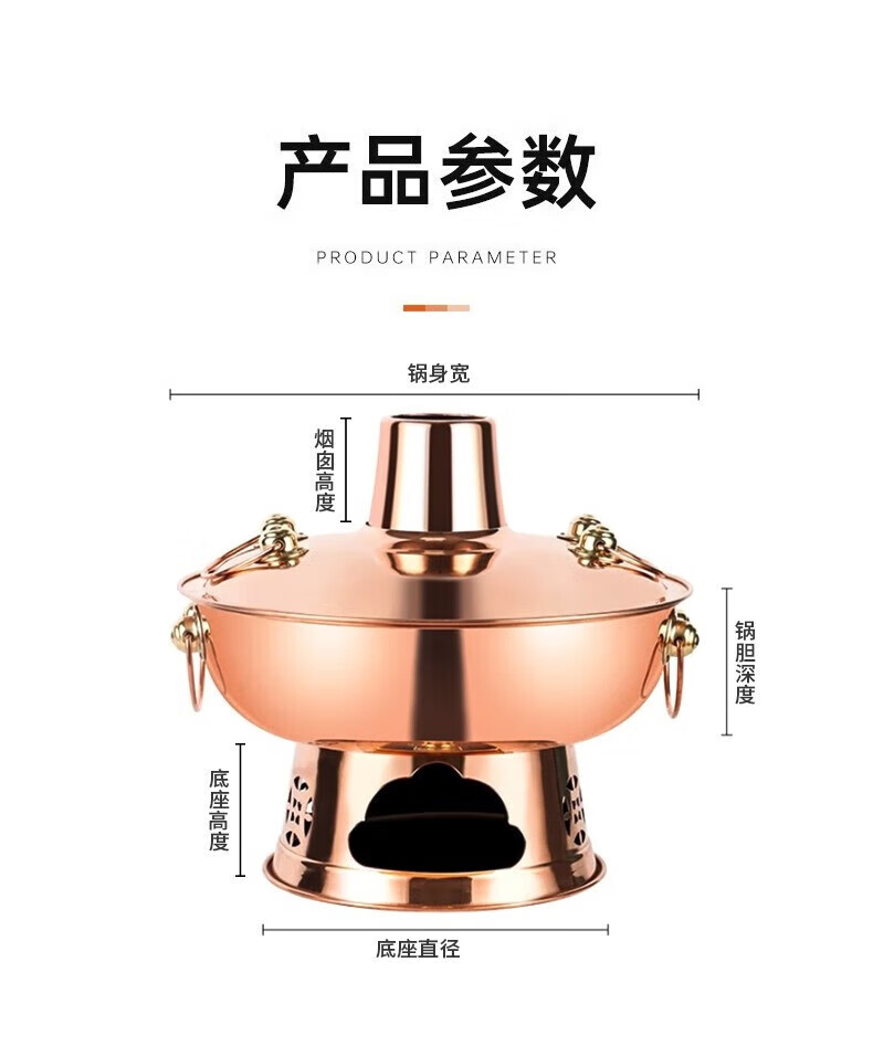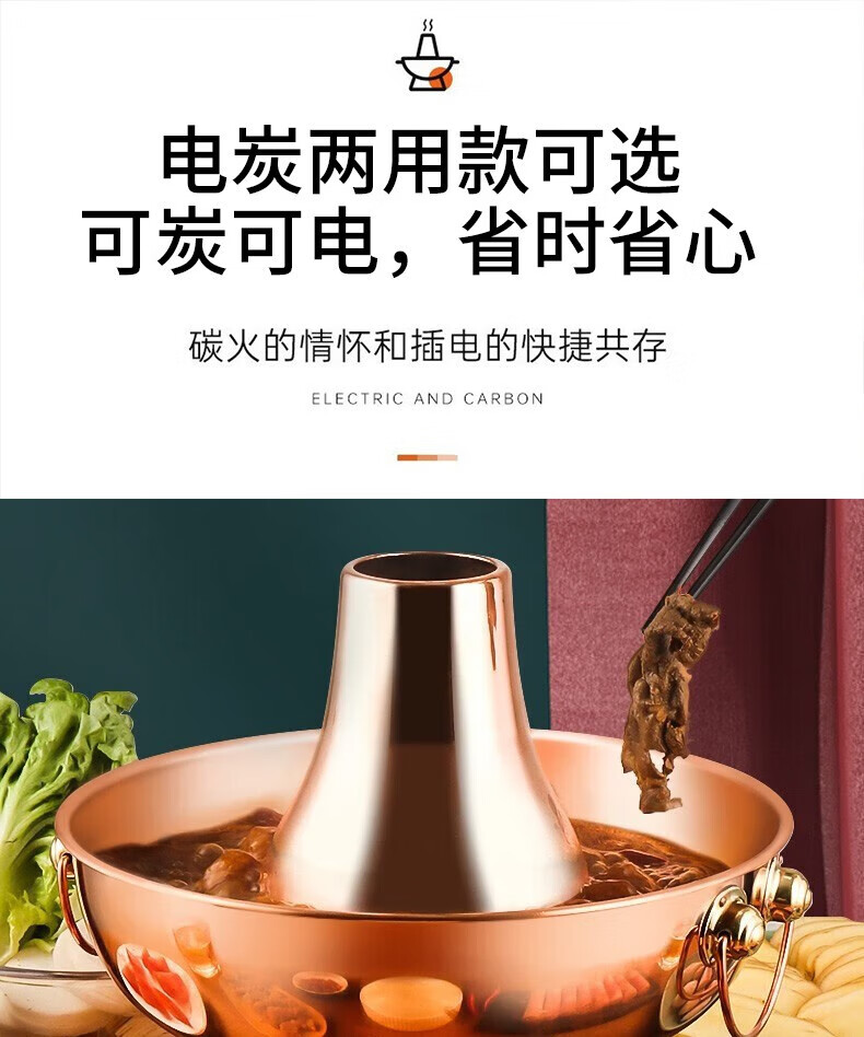 Baijie copper hot pot charcoal hot pot thickened copper hot pot handmade pot copper pot hot pot old-fashioned hot pot special pot extra thick copper clear soup pot 38cm