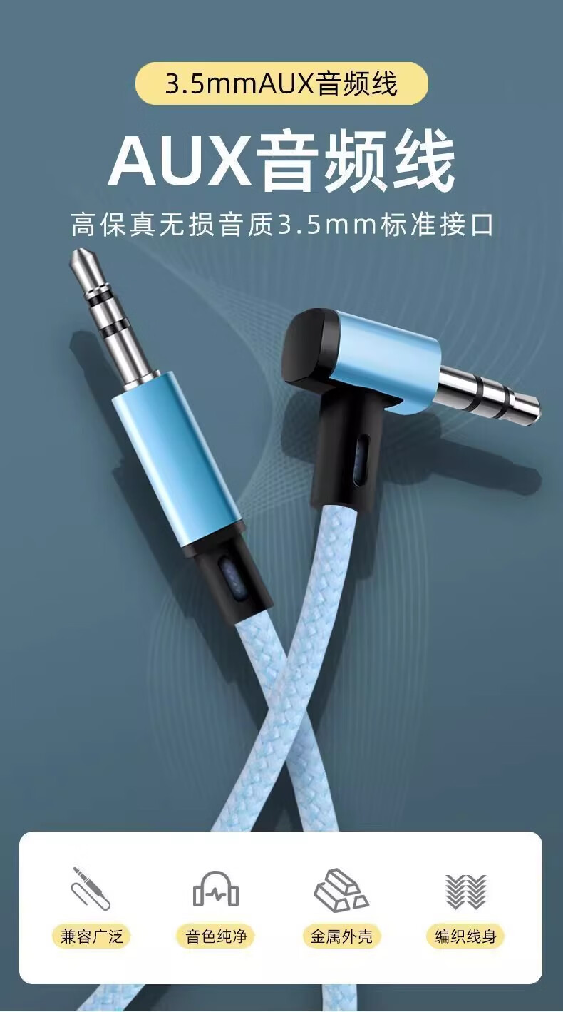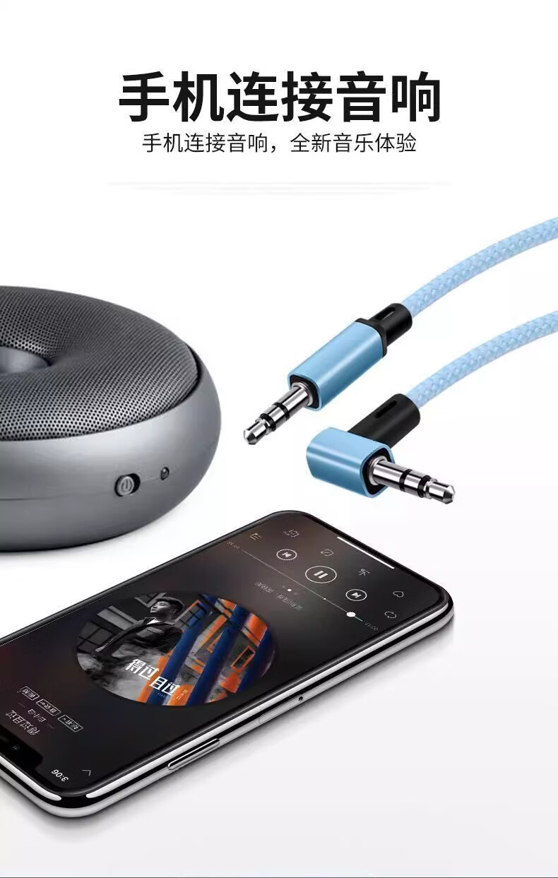 AUX audio connection cable 3.5mm headphone head-mounted adapter double-ended desktop computer mobile phone output audio speaker car data male-to-male player blue macaron elbow design 1 meter audio cable plug and play