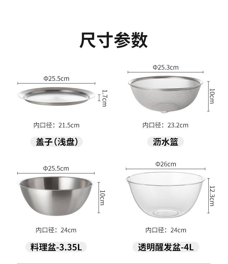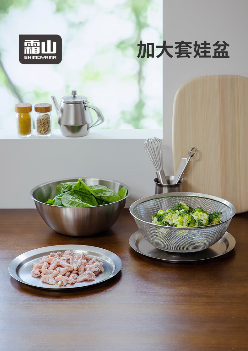 Shuangshan matryoshka doll basin enlarged 304 stainless steel kitchen preparation set washing vegetables, rice washing and draining basin 24cm cooking basin *Recommended by the store manager 4-piece enlarged kitchen cooking set