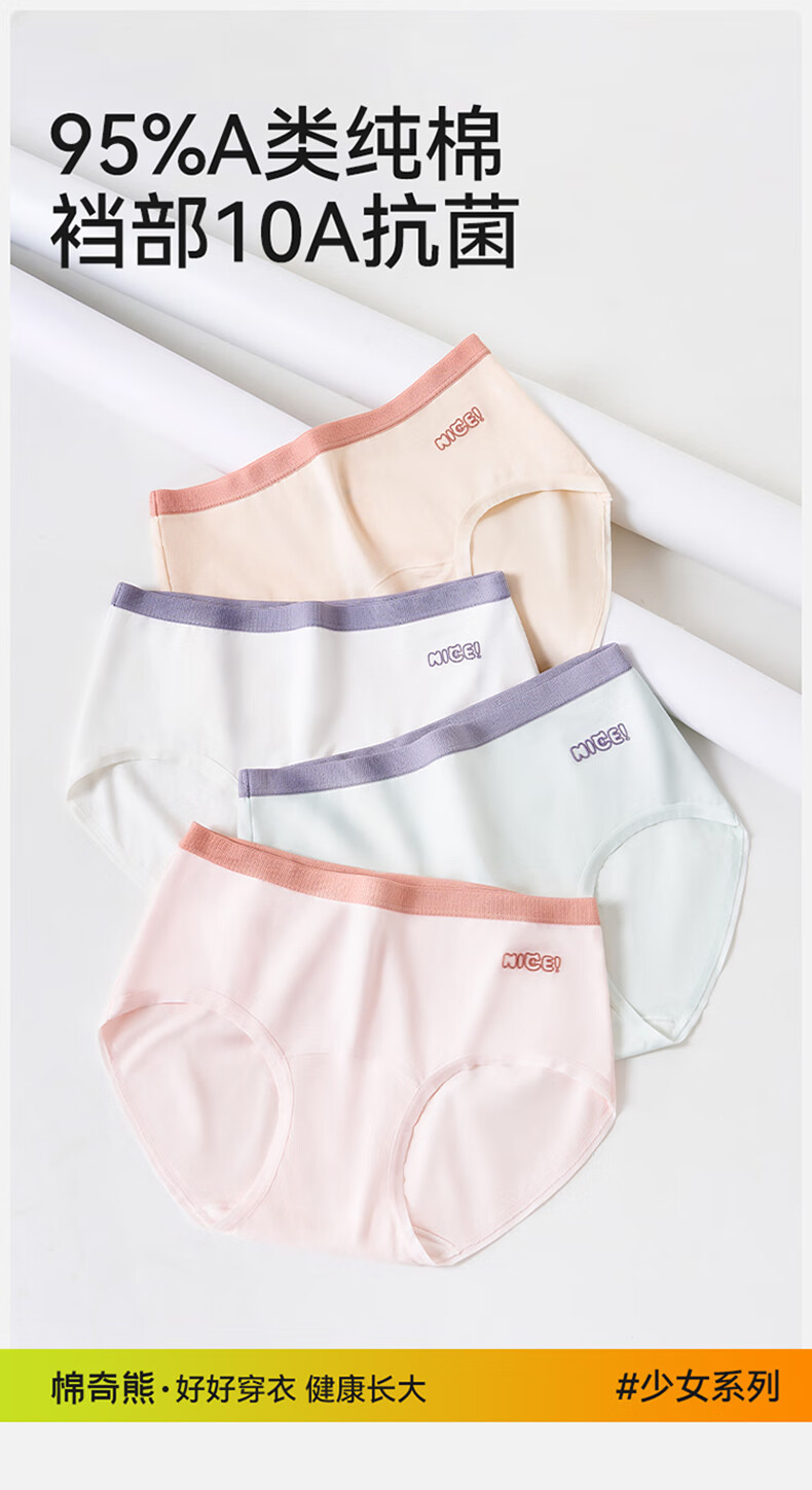 Mianqi Xiong Girls Underwear 2026 New Pure Cotton 10a Antibacterial Girls Briefs Full Cotton Girls Junior High School Student Shorts Q9806--4 Pack Class A Pure Cotton Breathable and Comfortable 165 - Weight 85-110 Jin Jin is equal to 0.5 kg