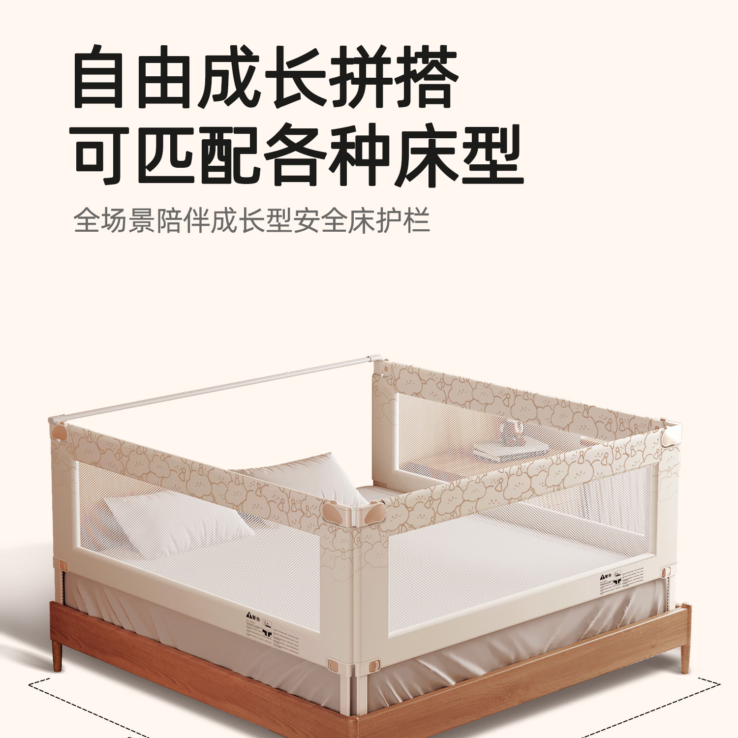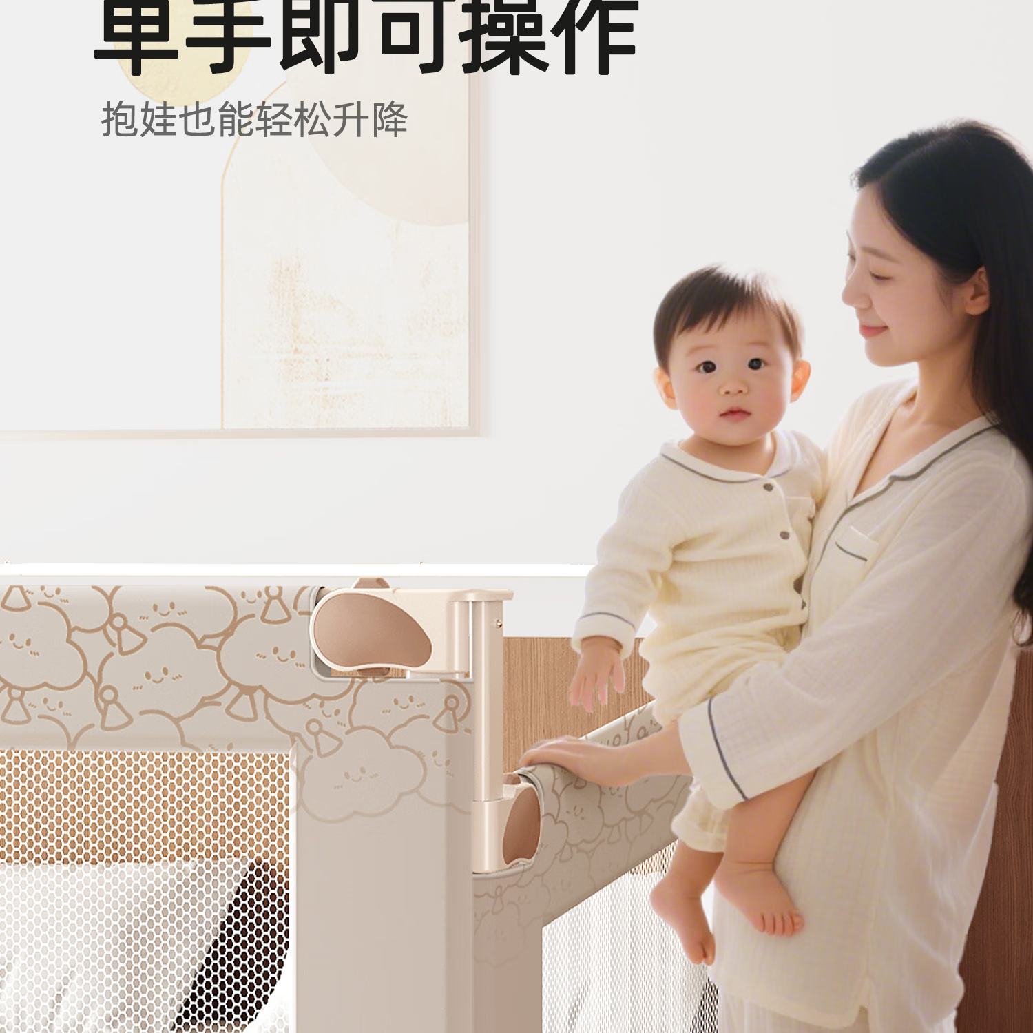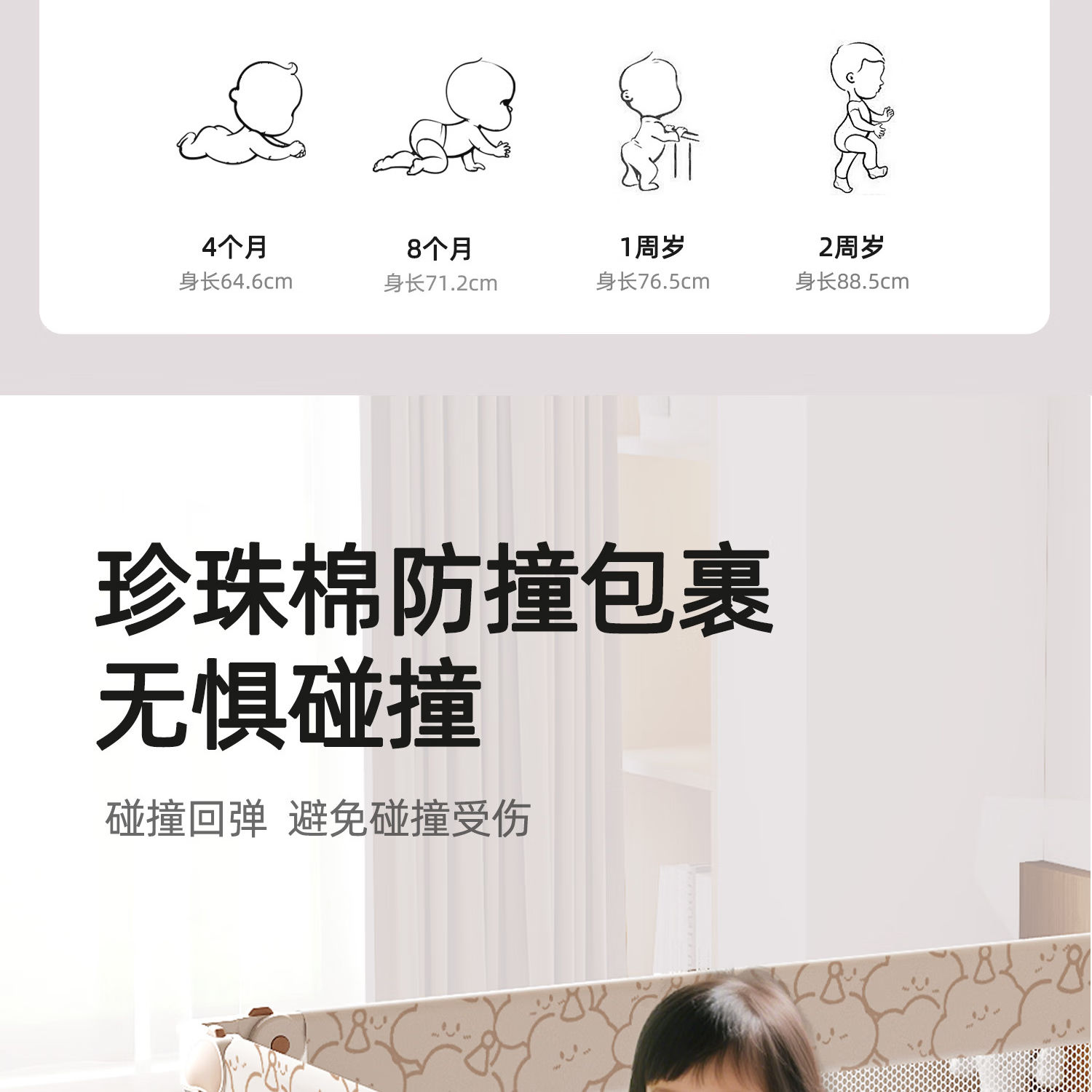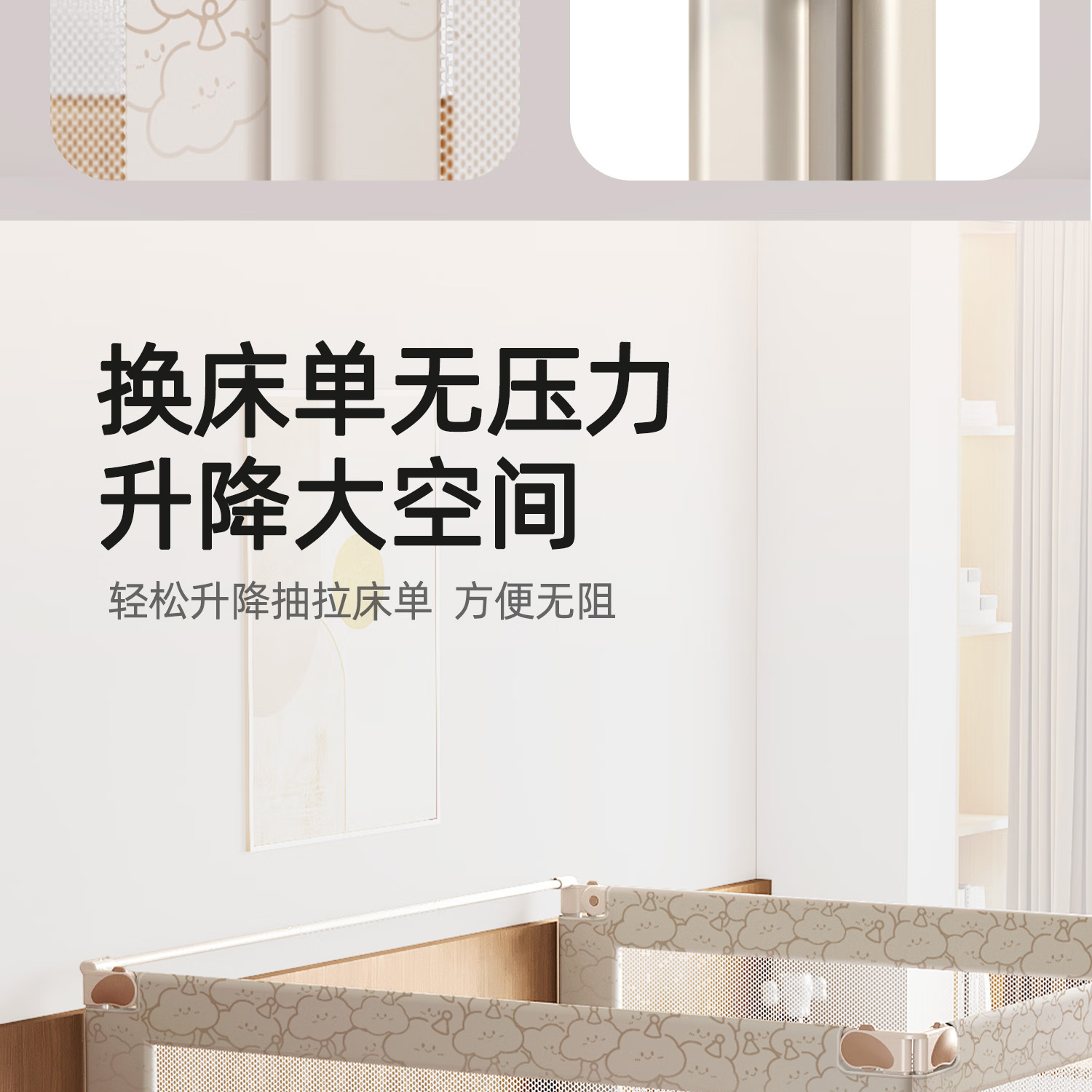 BABYBLIZ bed fence baby heightened anti-fall guardrail bedside anti-fall guardrail child guardrail baby liftable bed guardrail yellow Xiangyun heavy upgrade column-return base-screw-free 1.8m+2.0m+2.0m three-sided installation