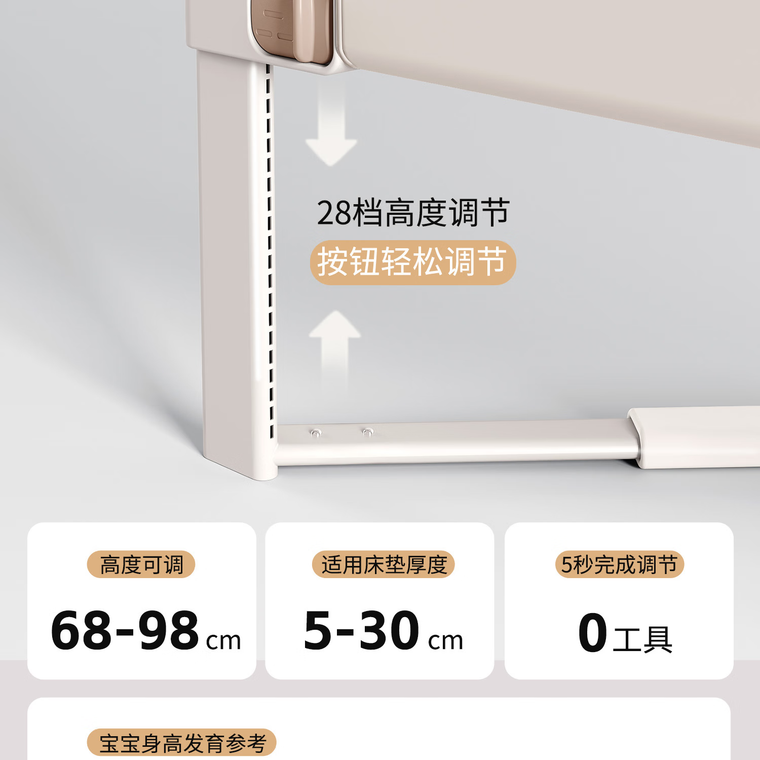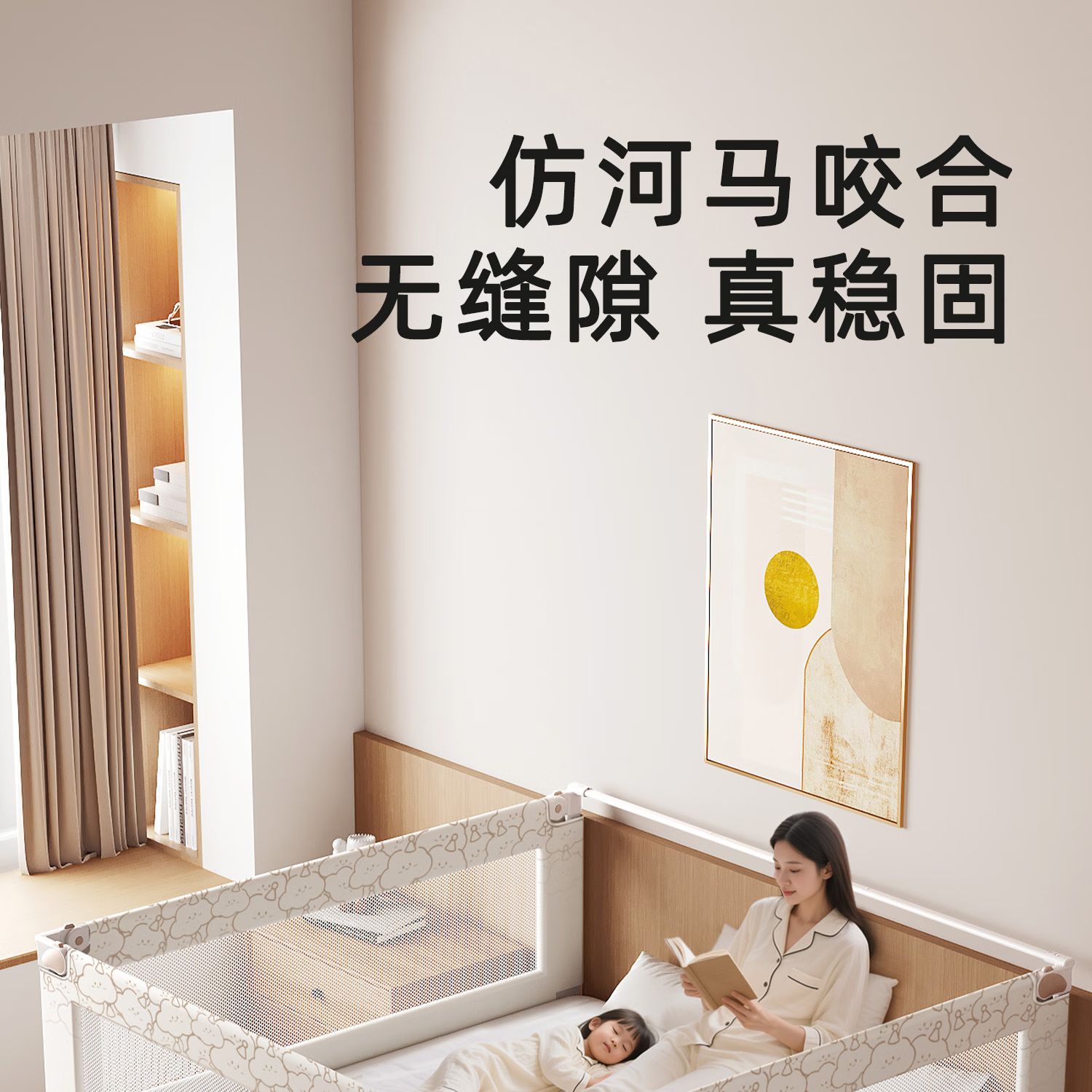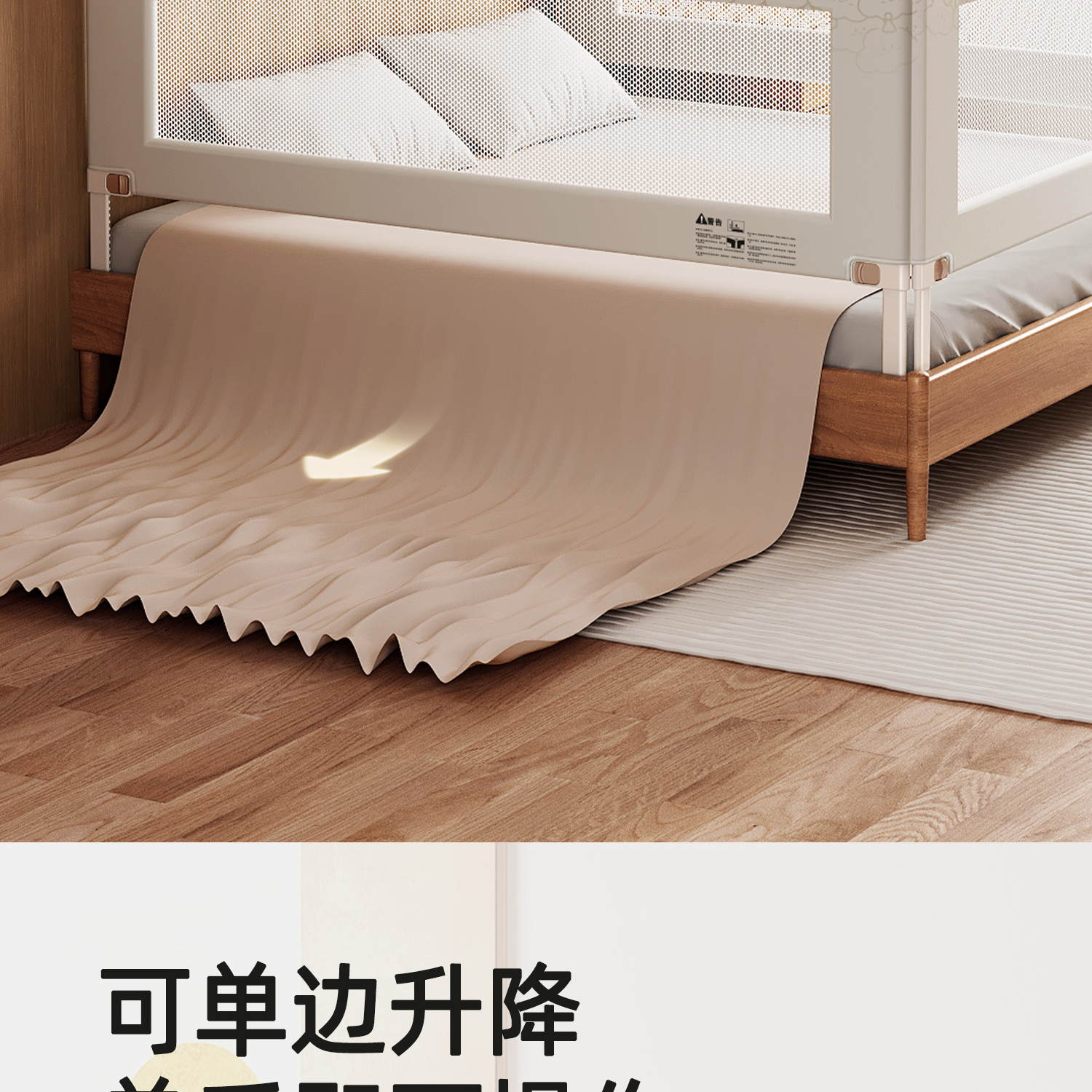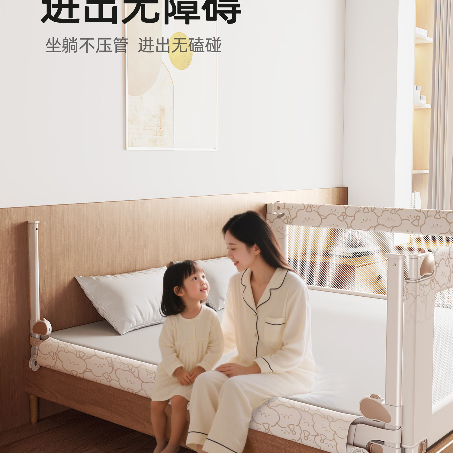 BABYBLIZ bed fence baby heightened anti-fall guardrail bedside anti-fall guardrail child guardrail baby liftable bed guardrail yellow Xiangyun heavy upgrade column-return base-screw-free 1.8m+2.0m+2.0m three-sided installation
