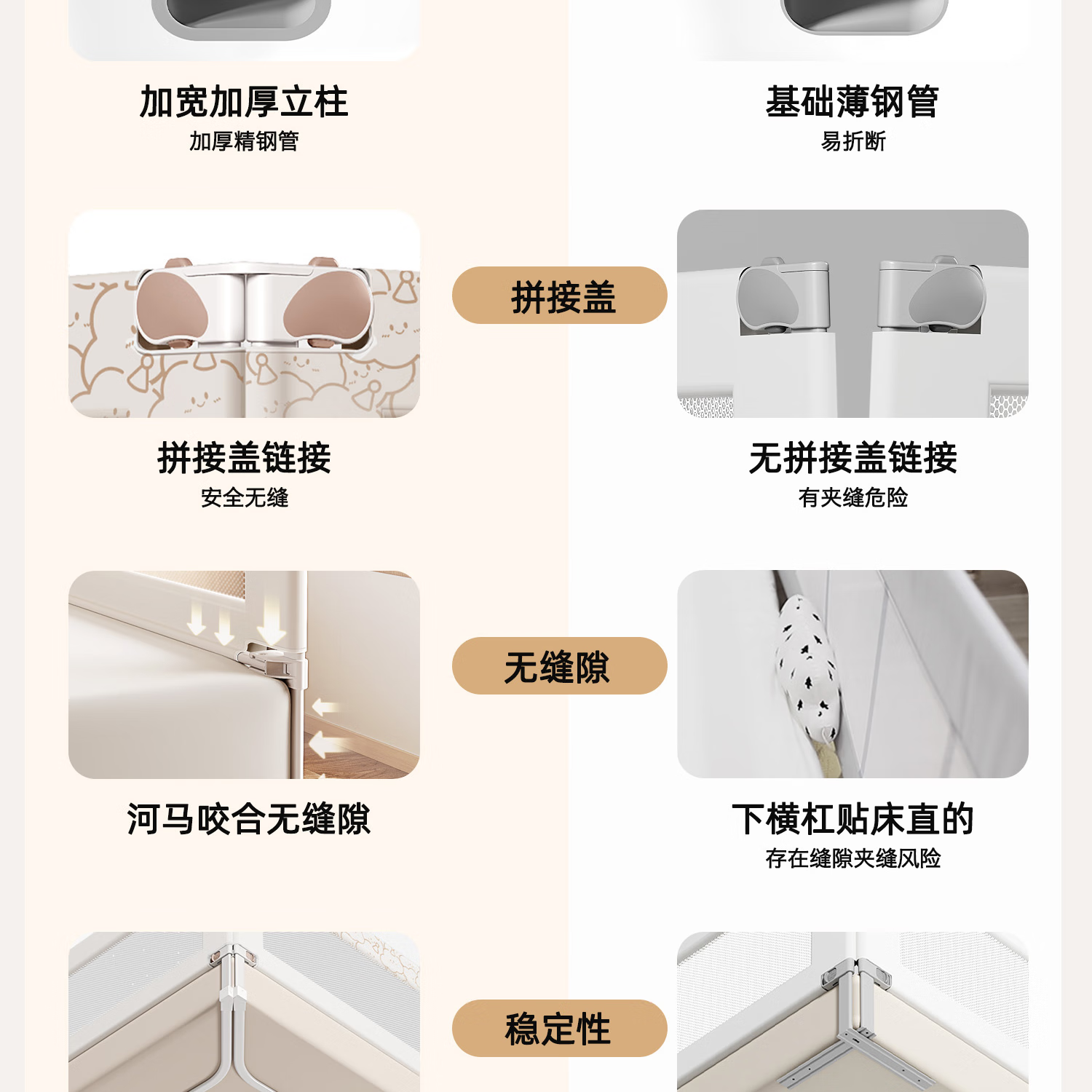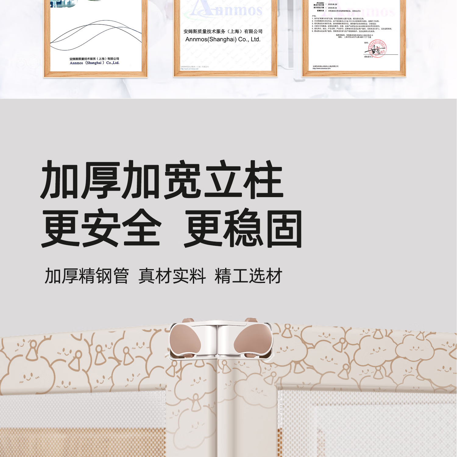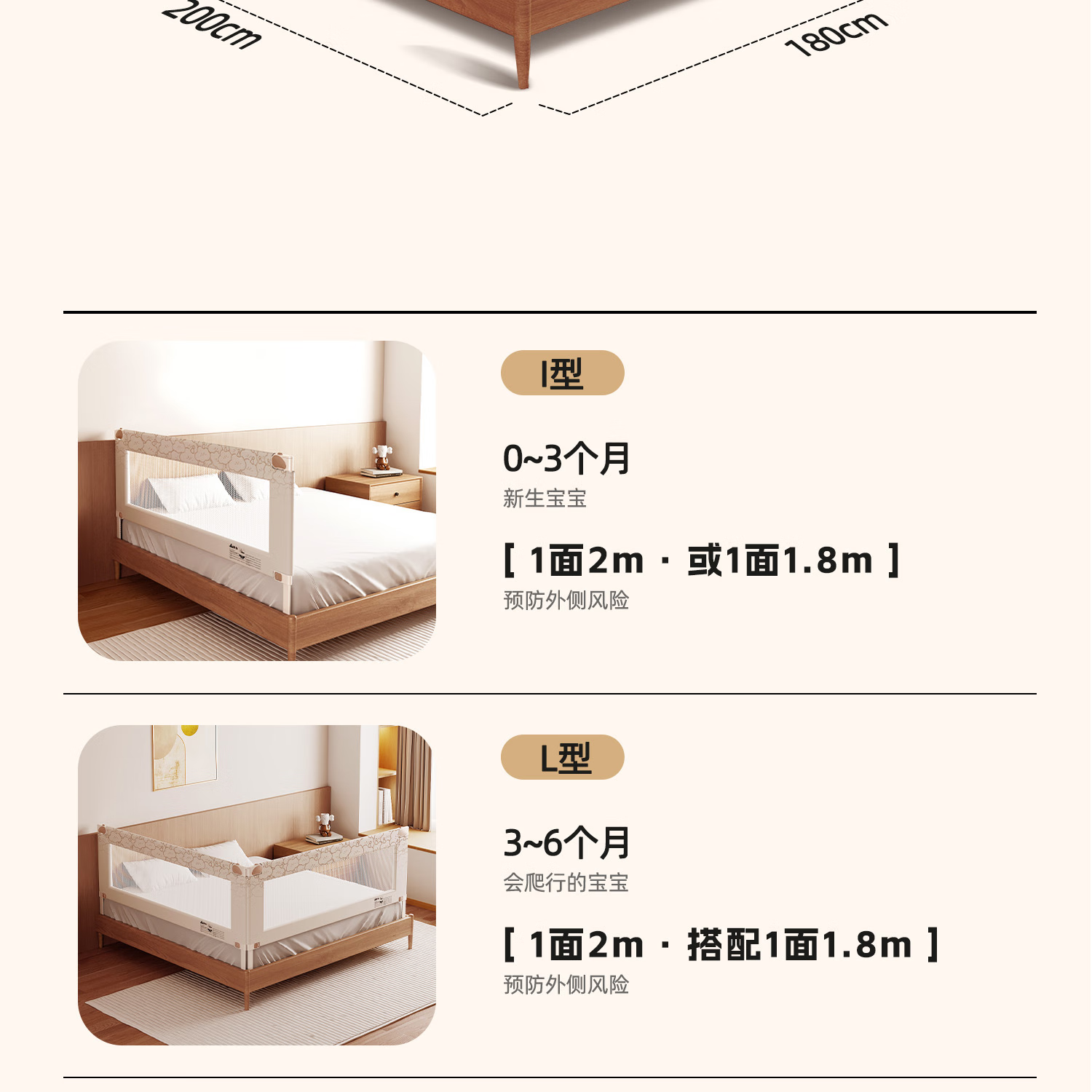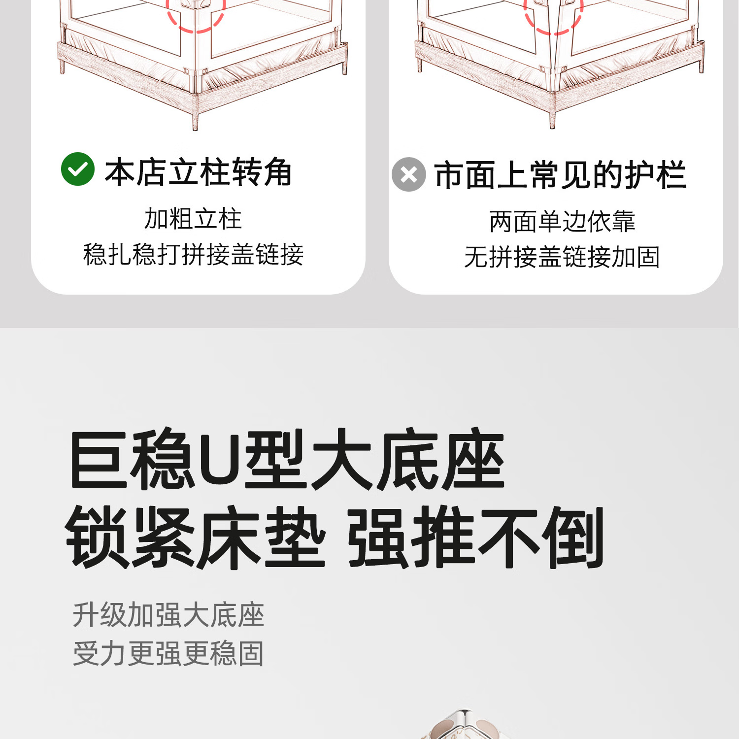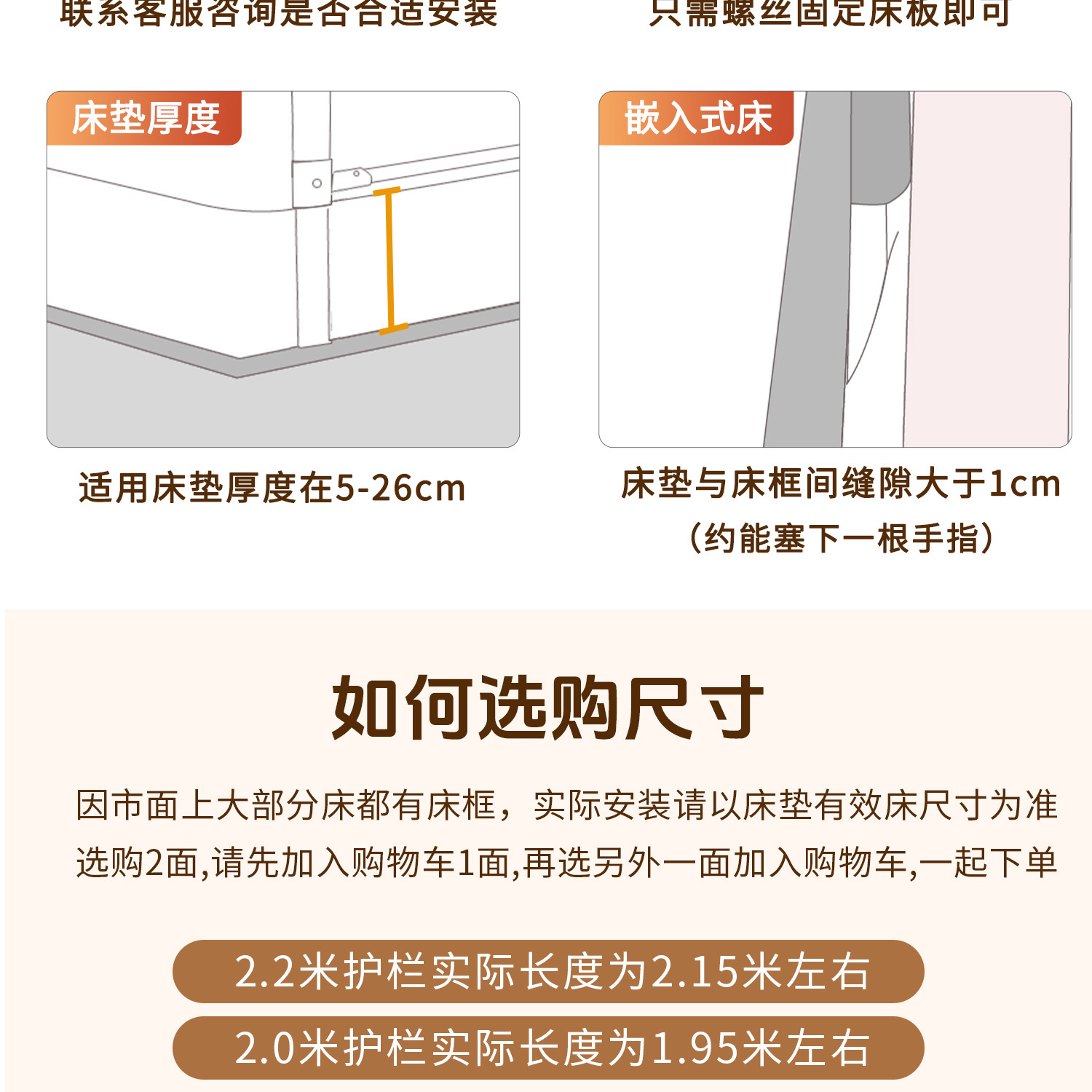 BABYBLIZ bed fence baby heightened anti-fall guardrail bedside anti-fall guardrail child guardrail baby liftable bed guardrail yellow Xiangyun heavy upgrade column-return base-screw-free 1.8m+2.0m+2.0m three-sided installation