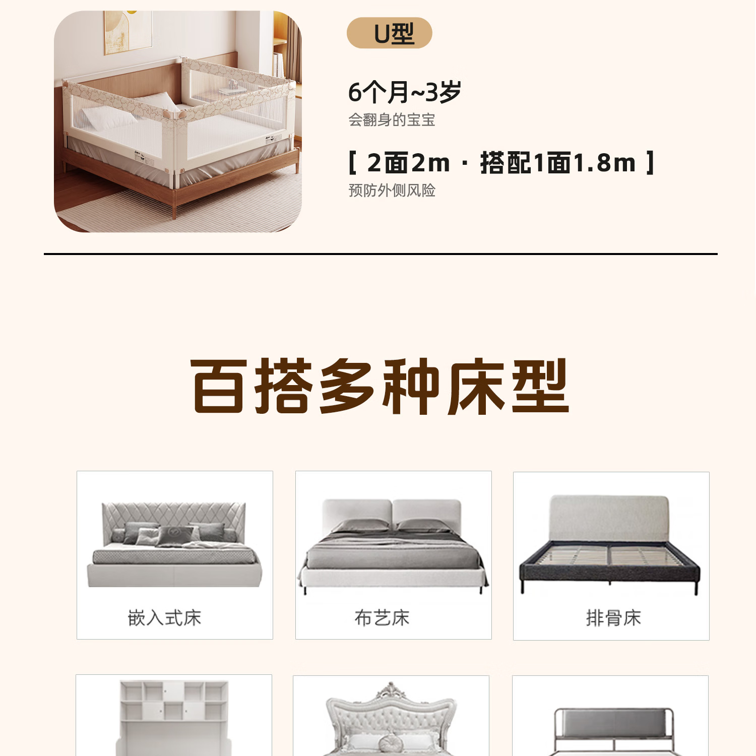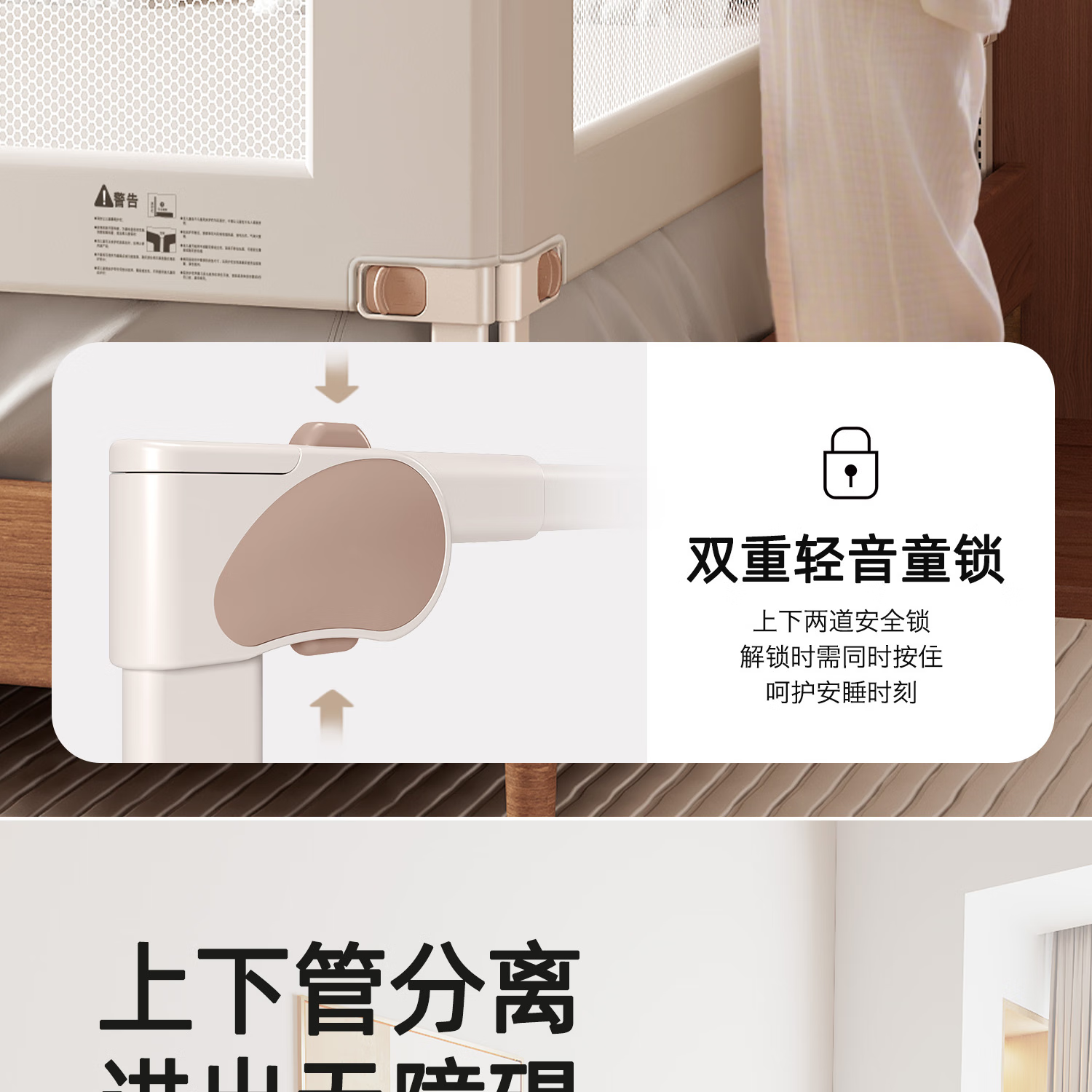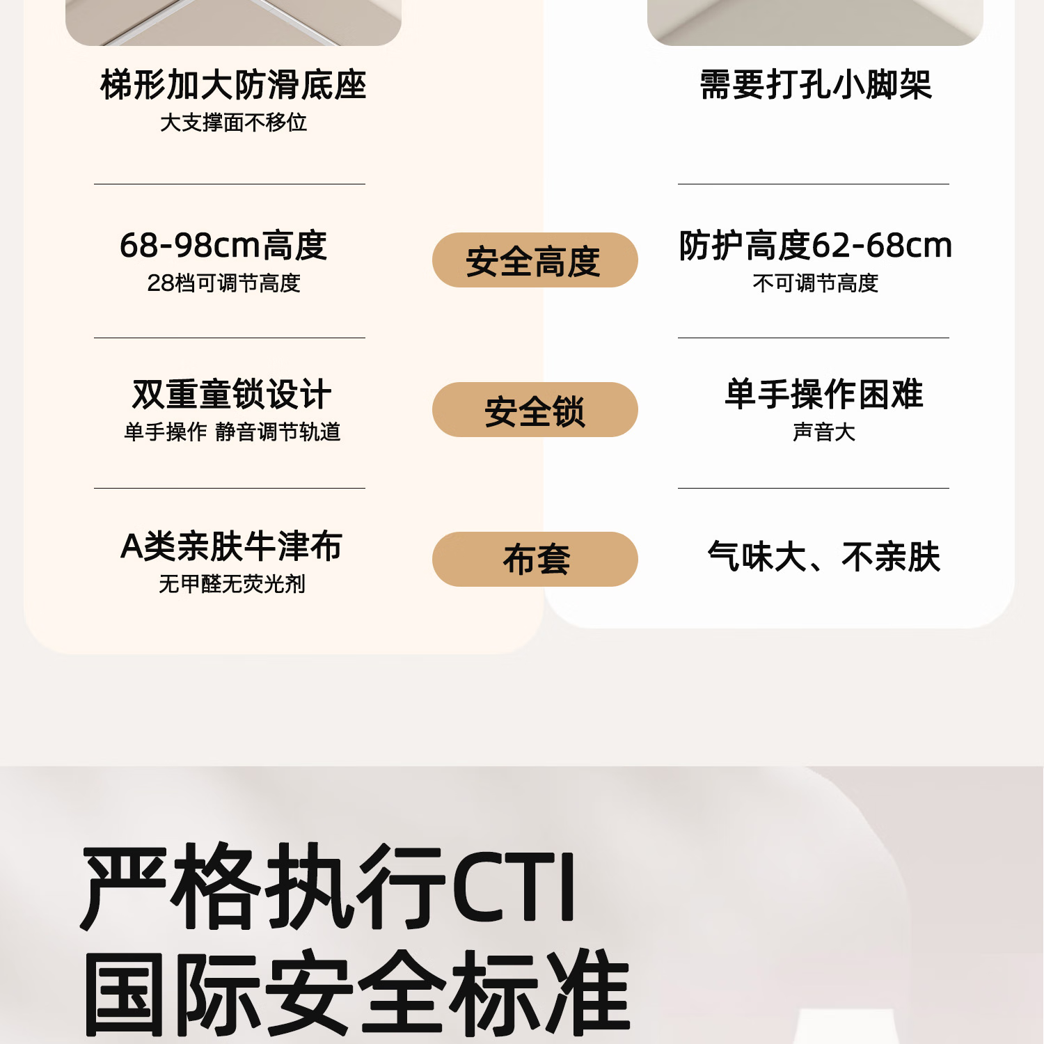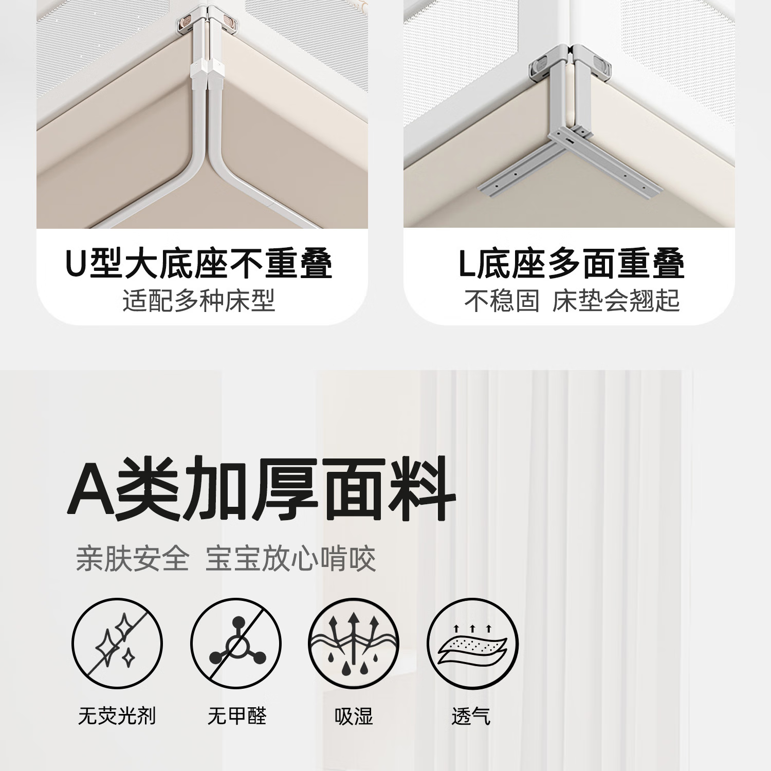 BABYBLIZ bed fence baby heightened anti-fall guardrail bedside anti-fall guardrail child guardrail baby liftable bed guardrail yellow Xiangyun heavy upgrade column-return base-screw-free 1.8m+2.0m+2.0m three-sided installation