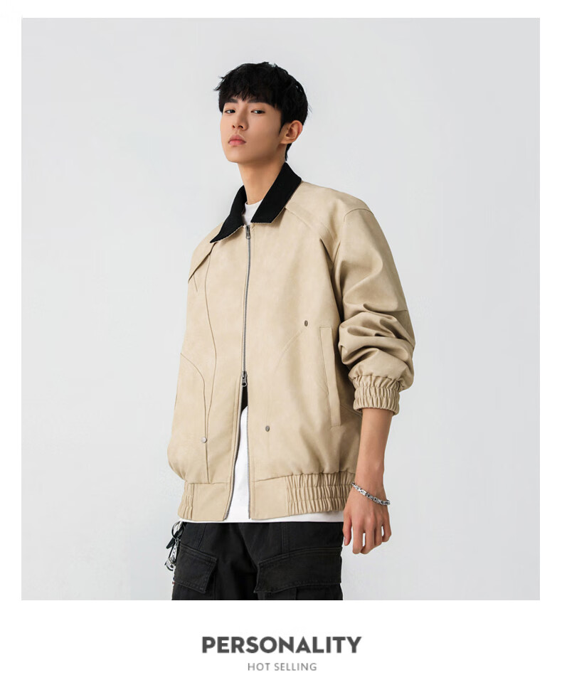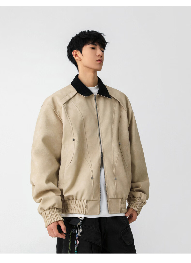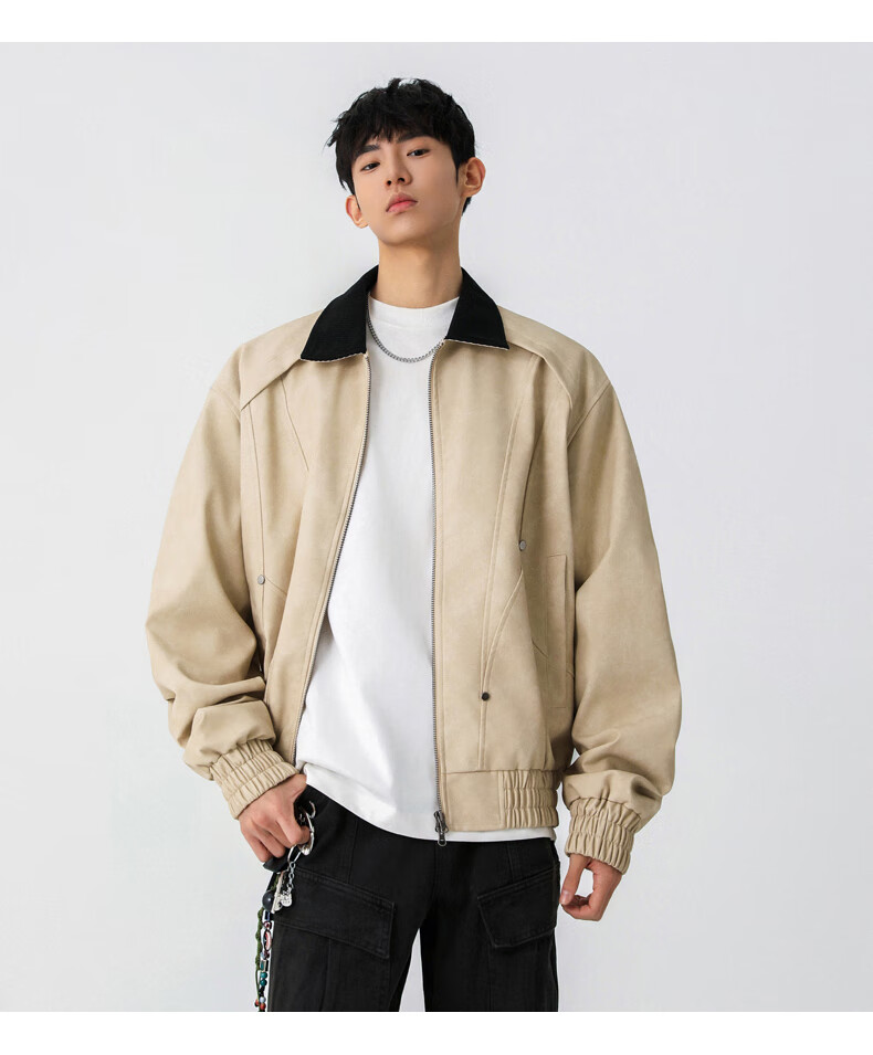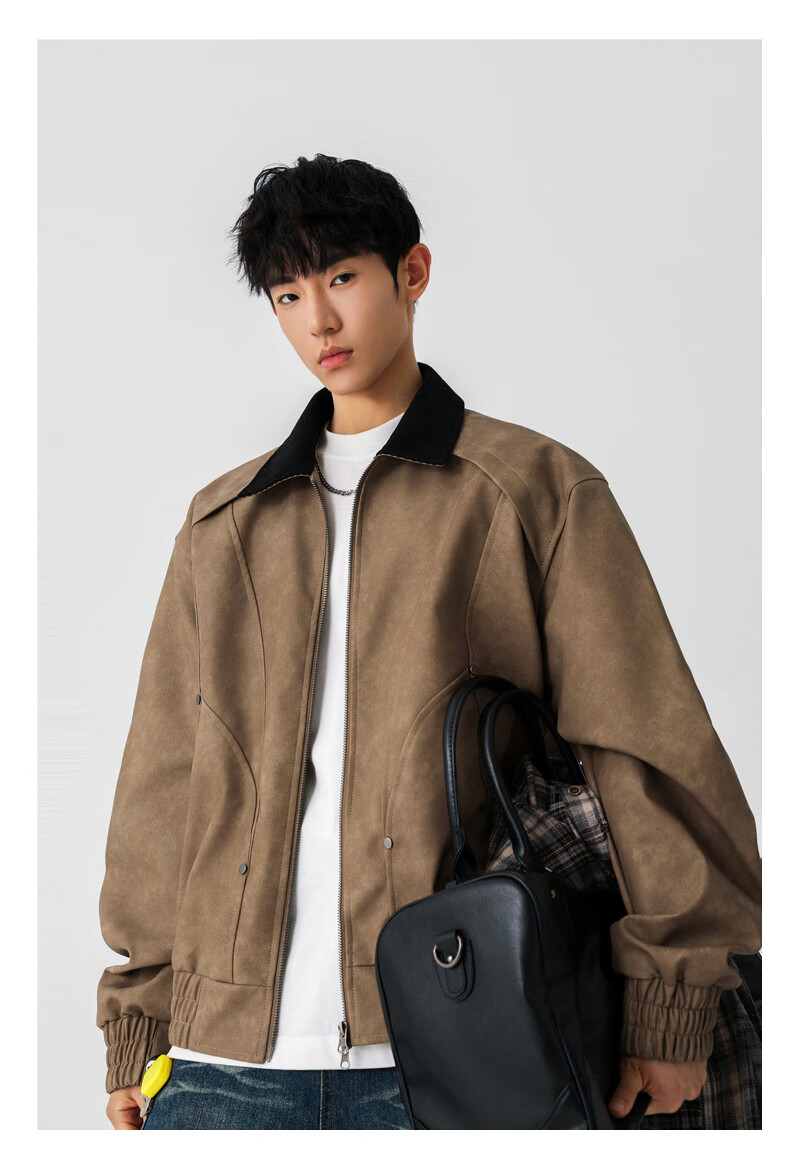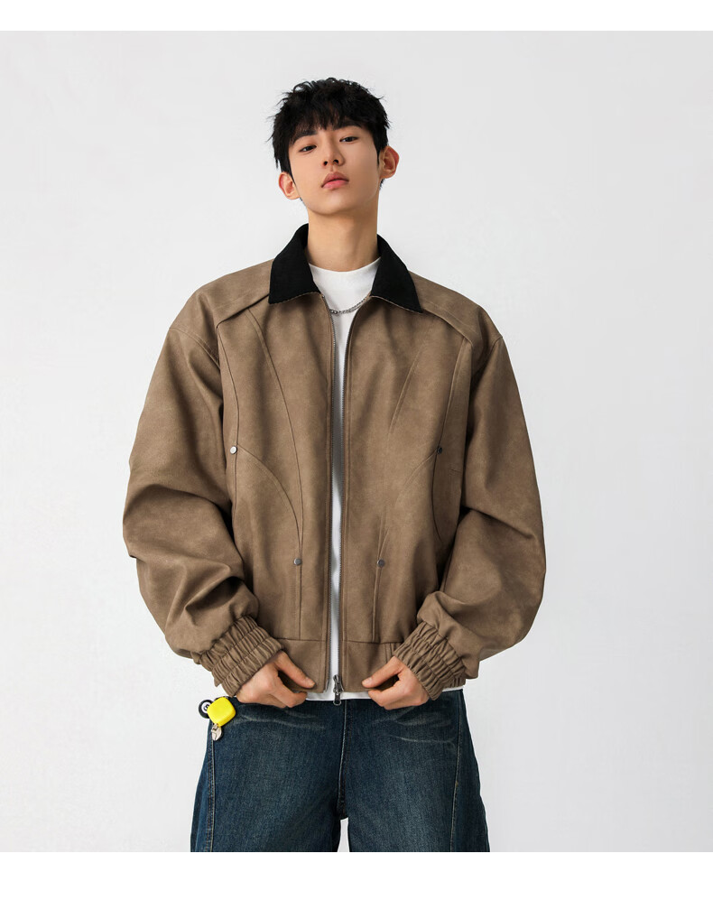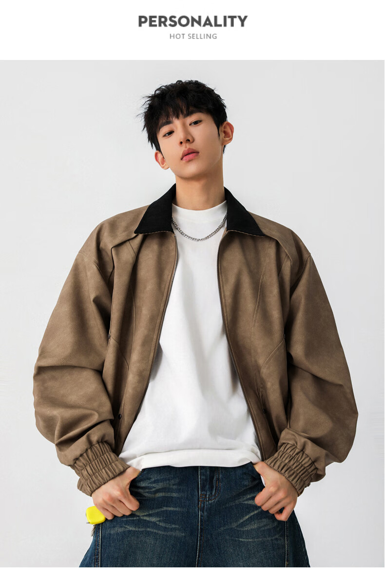 Jeanswest American style motorcycle leather jacket for men 2026 autumn new high-end trendy brand loose and versatile lapel jacket for men brown XL