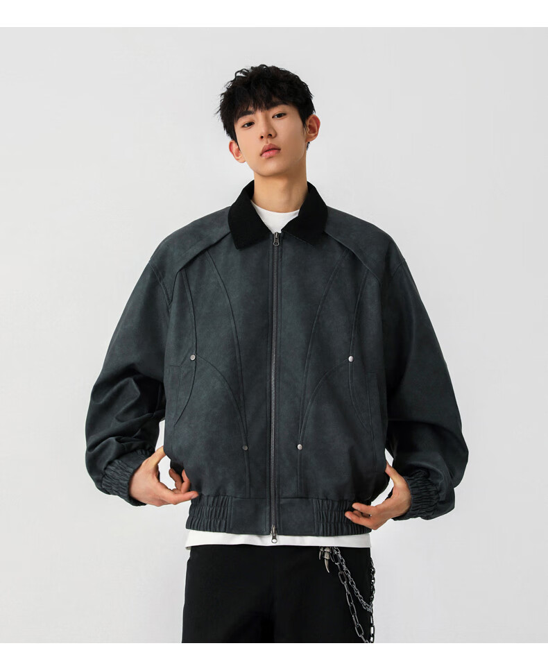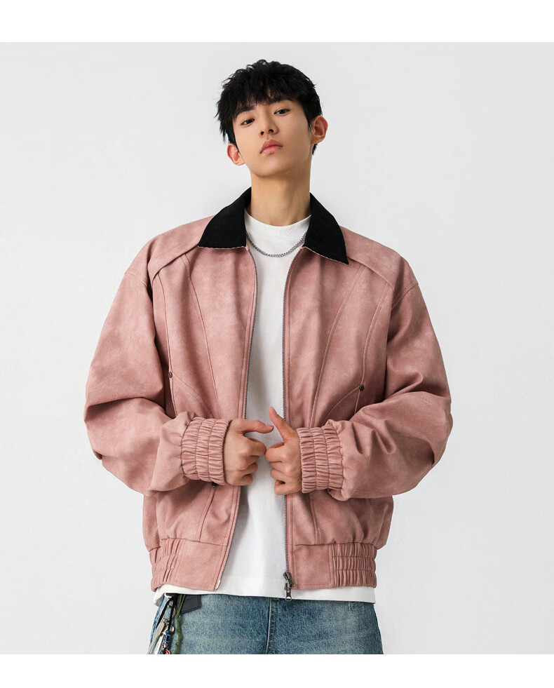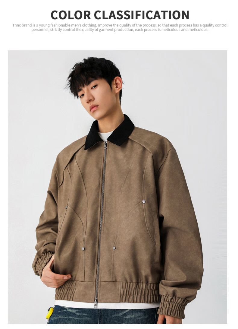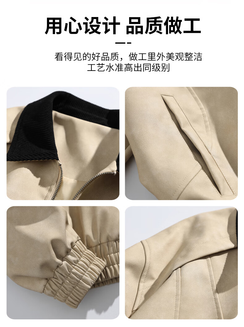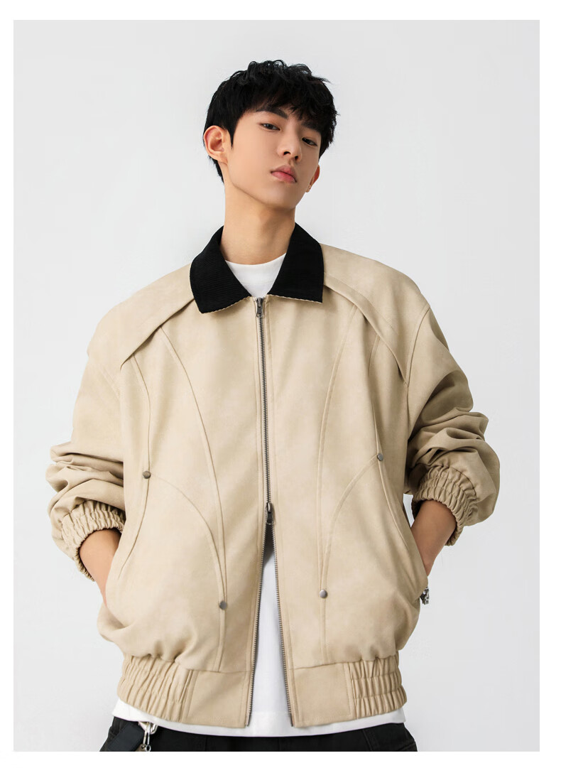 Jeanswest American style motorcycle leather jacket for men 2026 autumn new high-end trendy brand loose and versatile lapel jacket for men brown XL