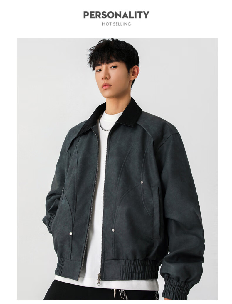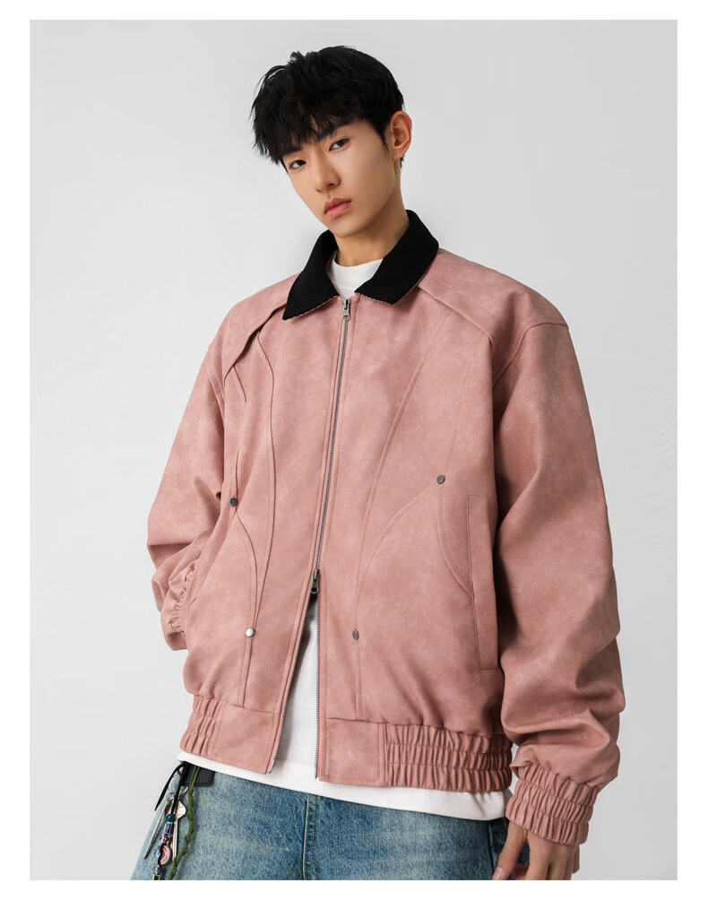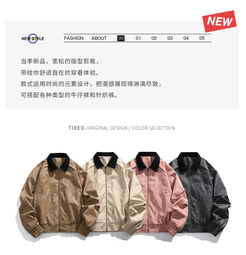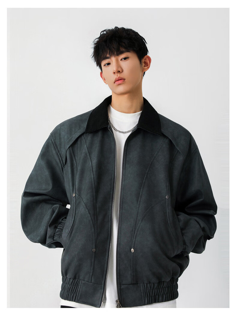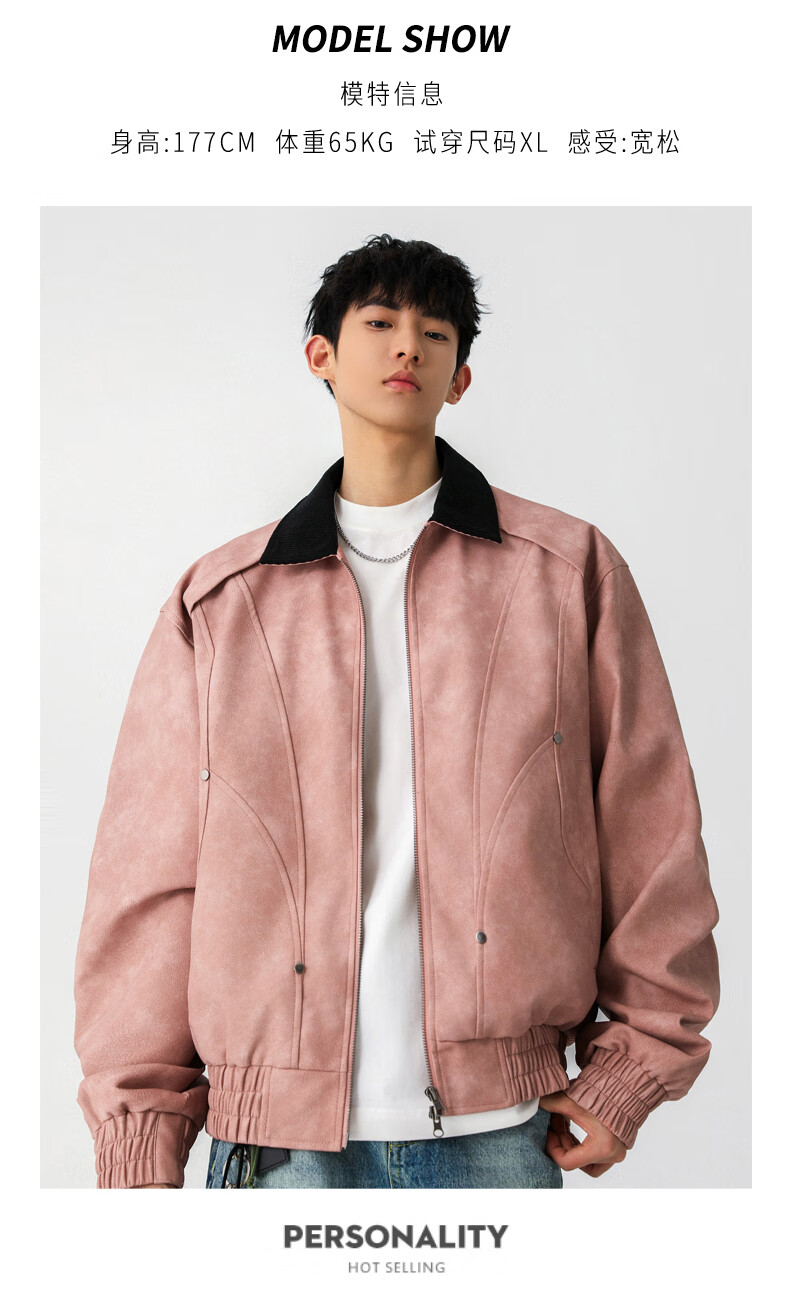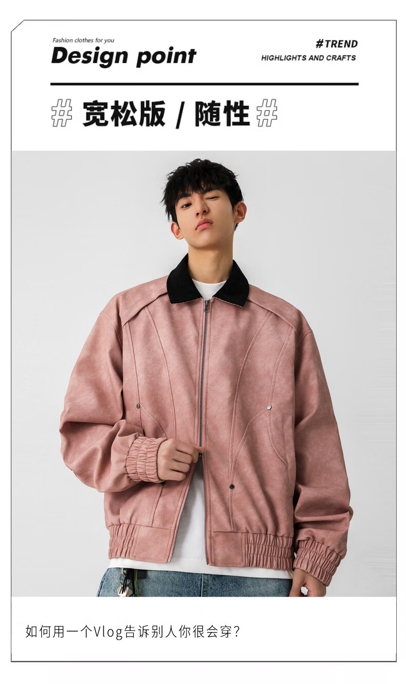 Jeanswest American style motorcycle leather jacket for men 2026 autumn new high-end trendy brand loose and versatile lapel jacket for men brown XL