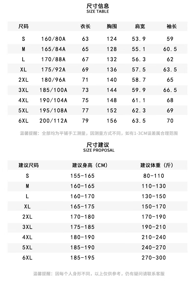 China (cm) 165 / 88-90 170 / 96-98 175 / 108-110 180 / 118-122 185 / 126-130