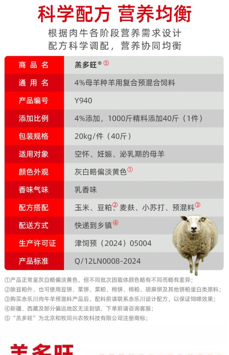Chilechuan 4% Lamb Duowangkong Pregnancy Basic Breeding Ewe Premix Trace Element Feed 40Jin Jin is equal to 0.5kg Express Delivery 1 piece sent by express delivery (to towns)