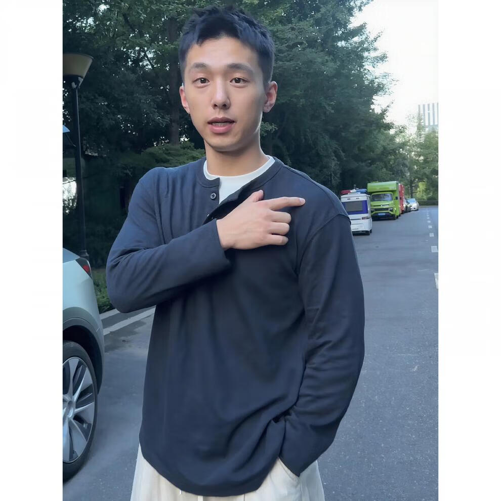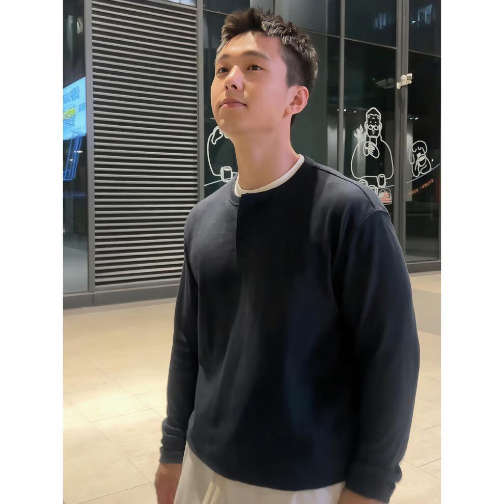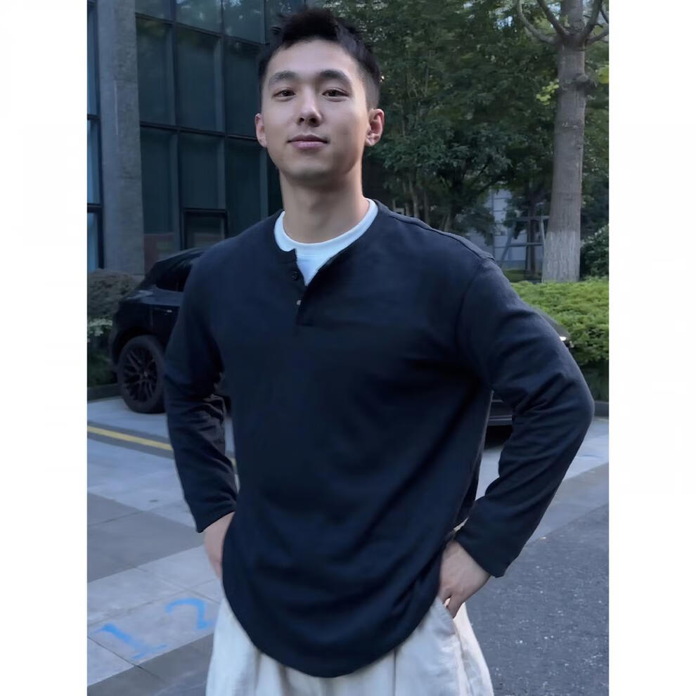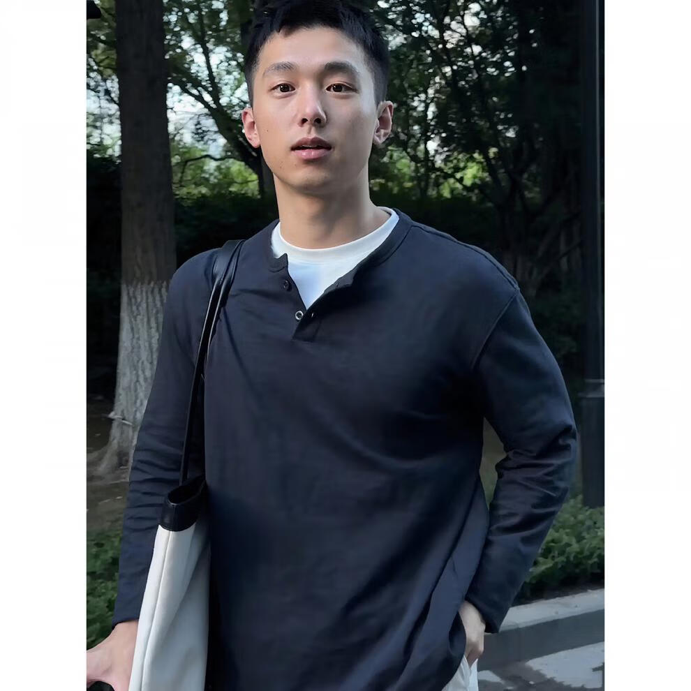 JEEP SPIRIT bamboo cotton fake two-piece Henry collar long-sleeved T-shirt men's cleanfit inner layering shirt early autumn single-wear top navy blue M (100-115Jin Jin equals 0.5 kg)