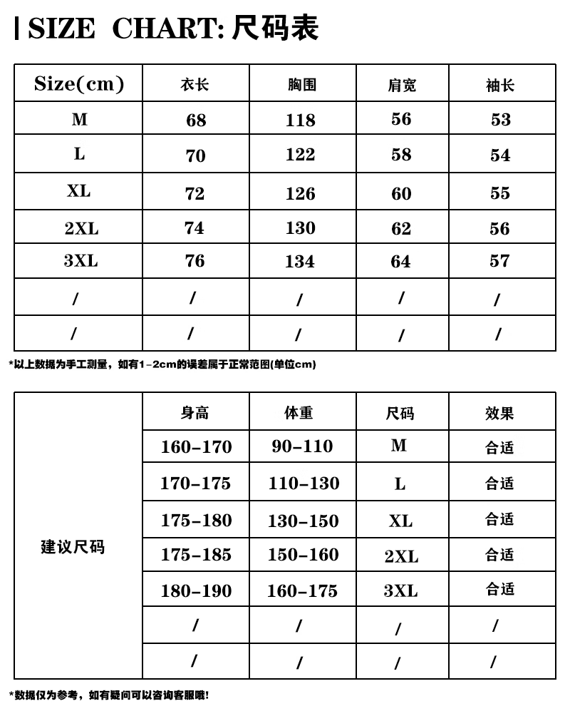 China (cm) 160-165/84-86 165-170 / 88-90 167-172 / 92-96 168-173 / 98-102 170-176 / 106-110