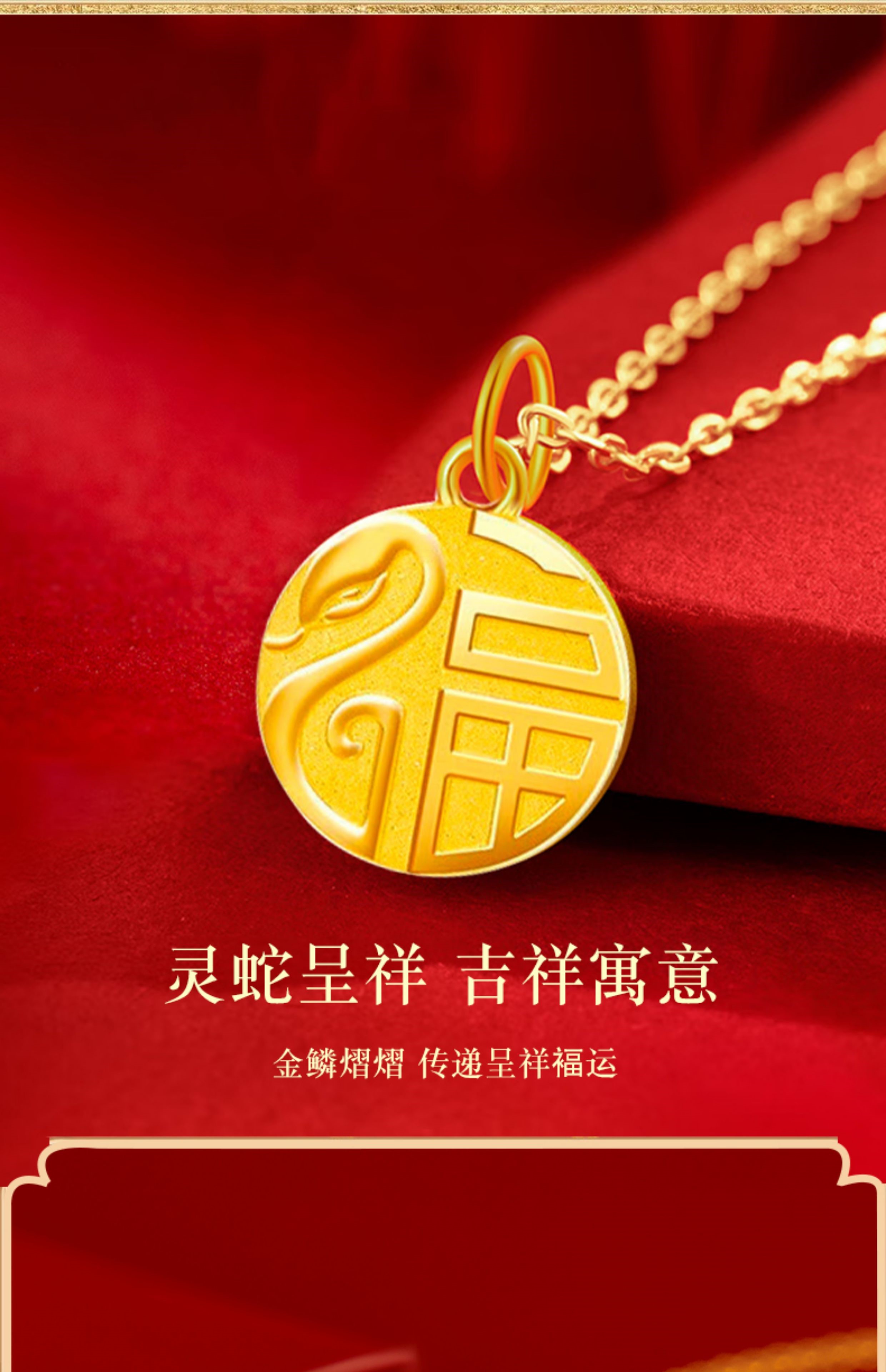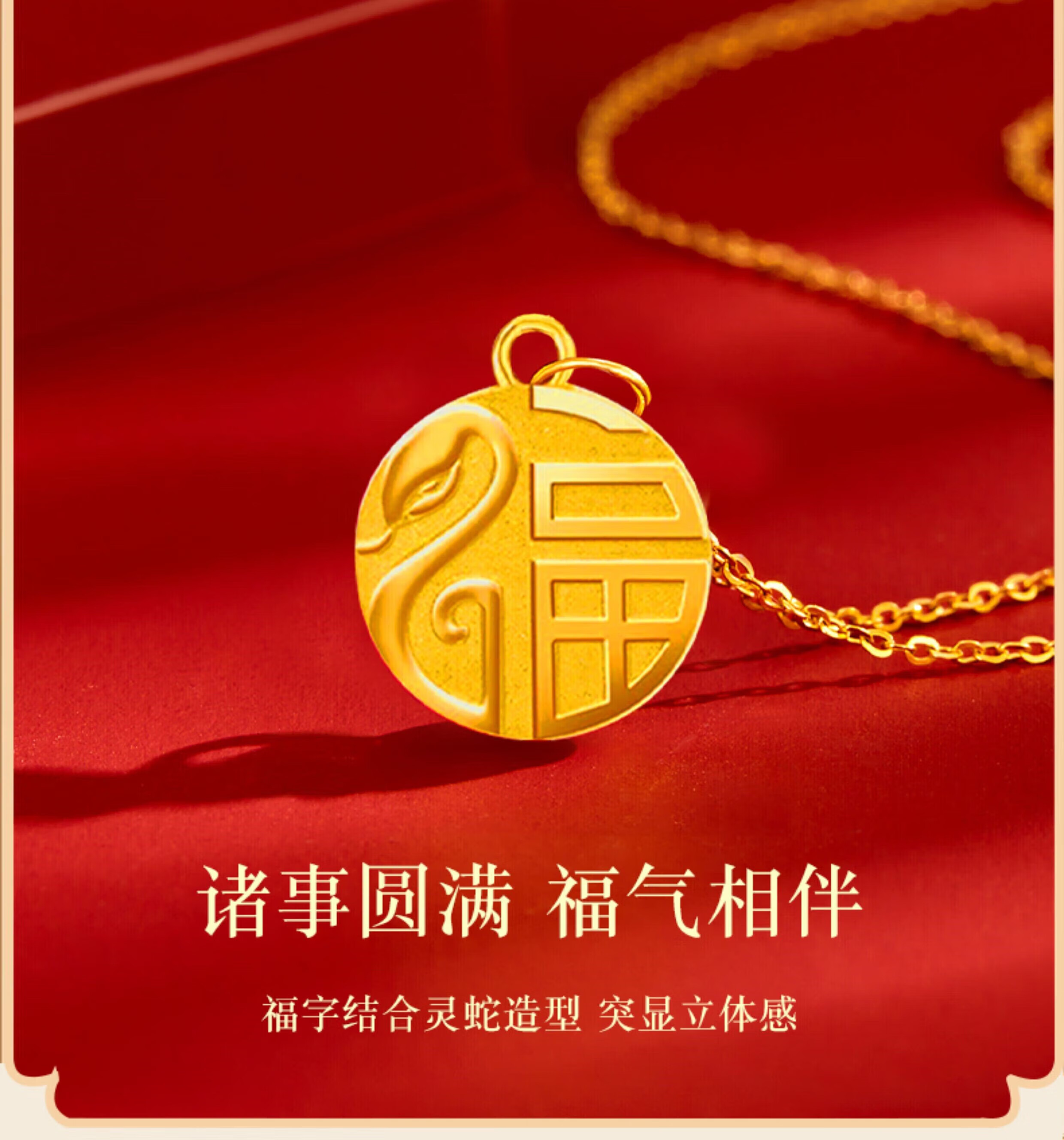 Chow Tai Fook Gold Necklace Women's 2025 Hard Gold Zodiac Snake Fortune Brand Pendant Gold Snake Small Gold Coin Pure Gold Necklace National Day Gift Pure Gold Snake Fortune Brand Zodiac Snake Pendant