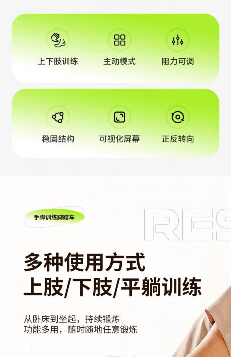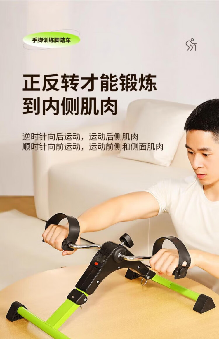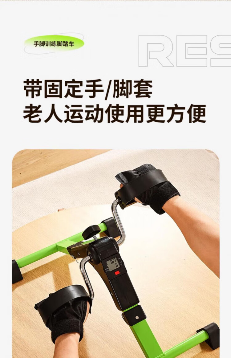 He Jiangong's home rehabilitation training bicycle for the elderly, pedal bike, fitness equipment for stroke and hemiplegia, luxury green + pair of fixed gloves, triangle stability