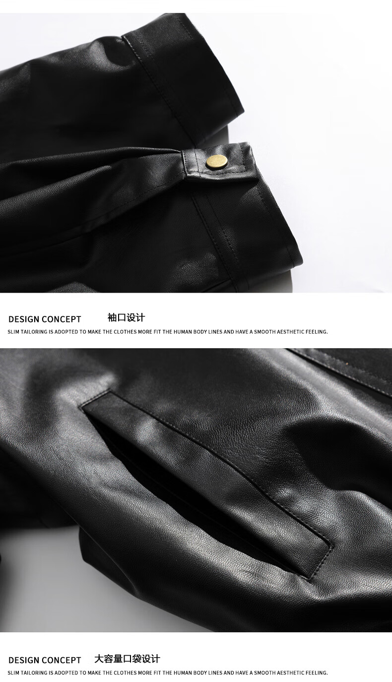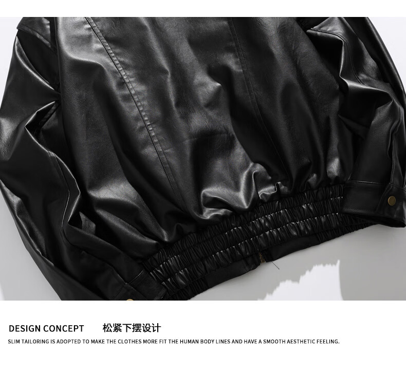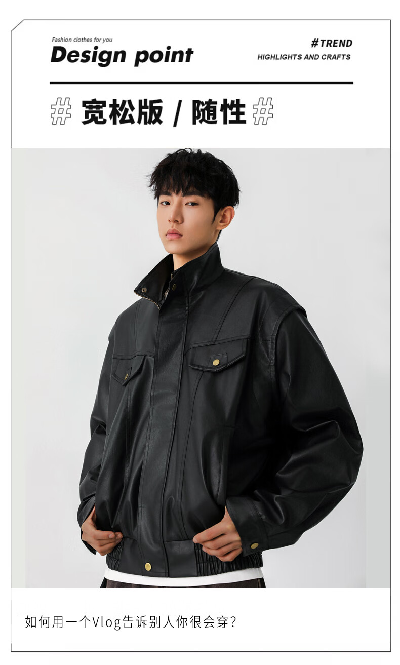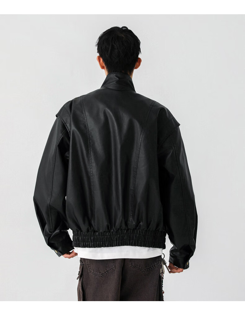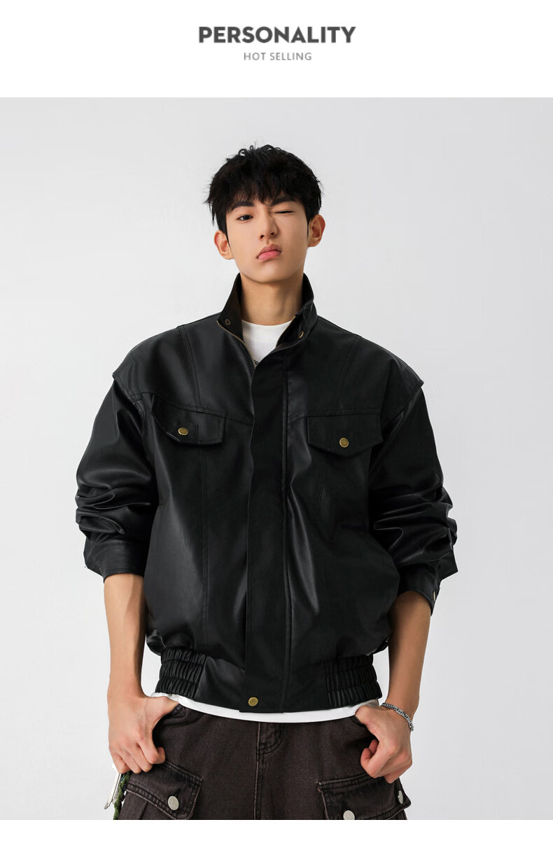Jeanswest high street leather jacket men's 2026 autumn and winter loose and versatile American trendy brand pu leather casual motorcycle jacket for men black S