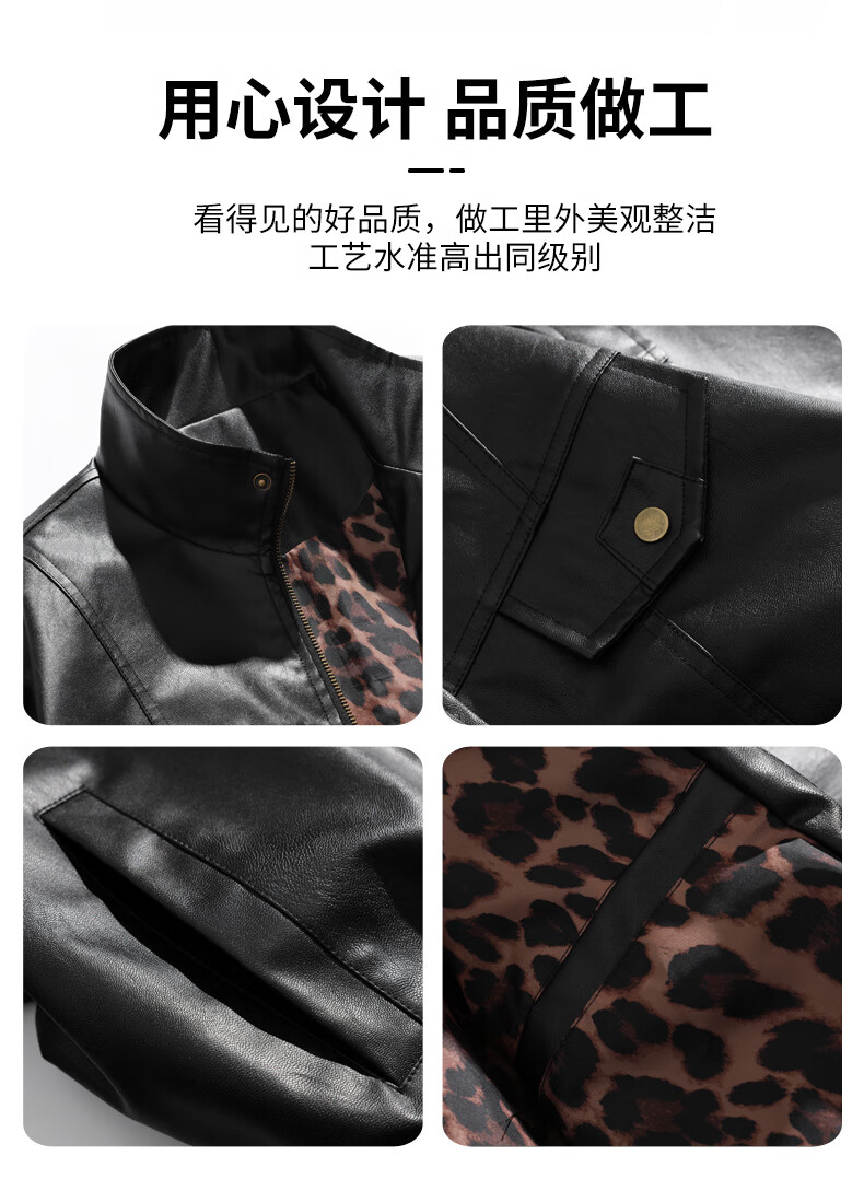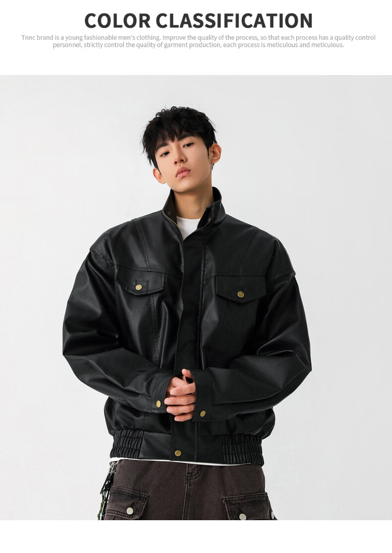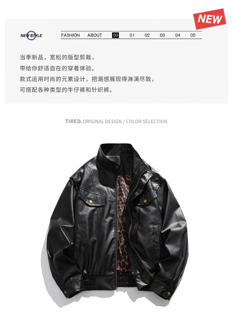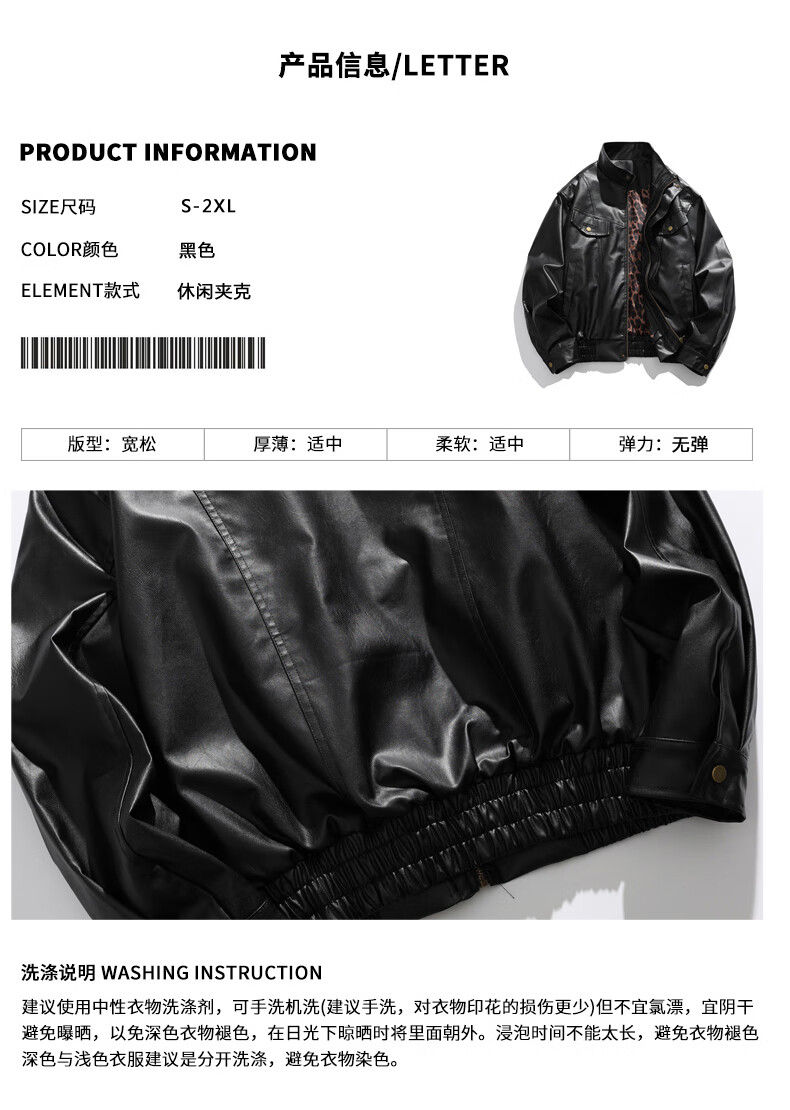 Jeanswest high street leather jacket men's 2026 autumn and winter loose and versatile American trendy brand pu leather casual motorcycle jacket for men black S