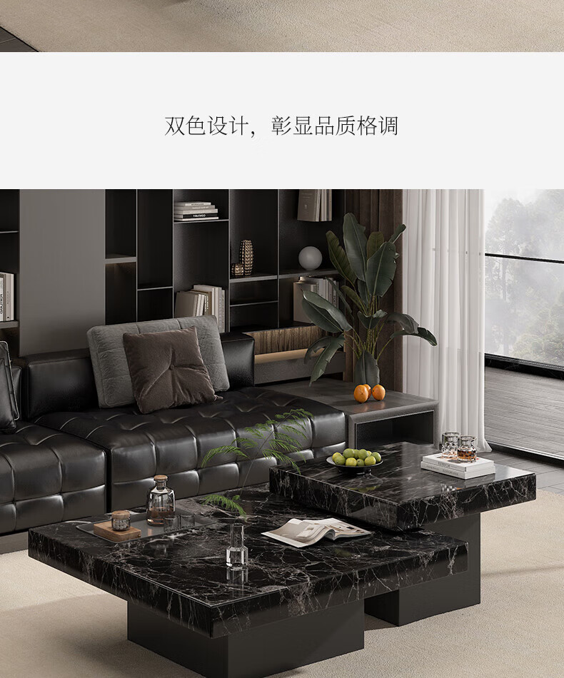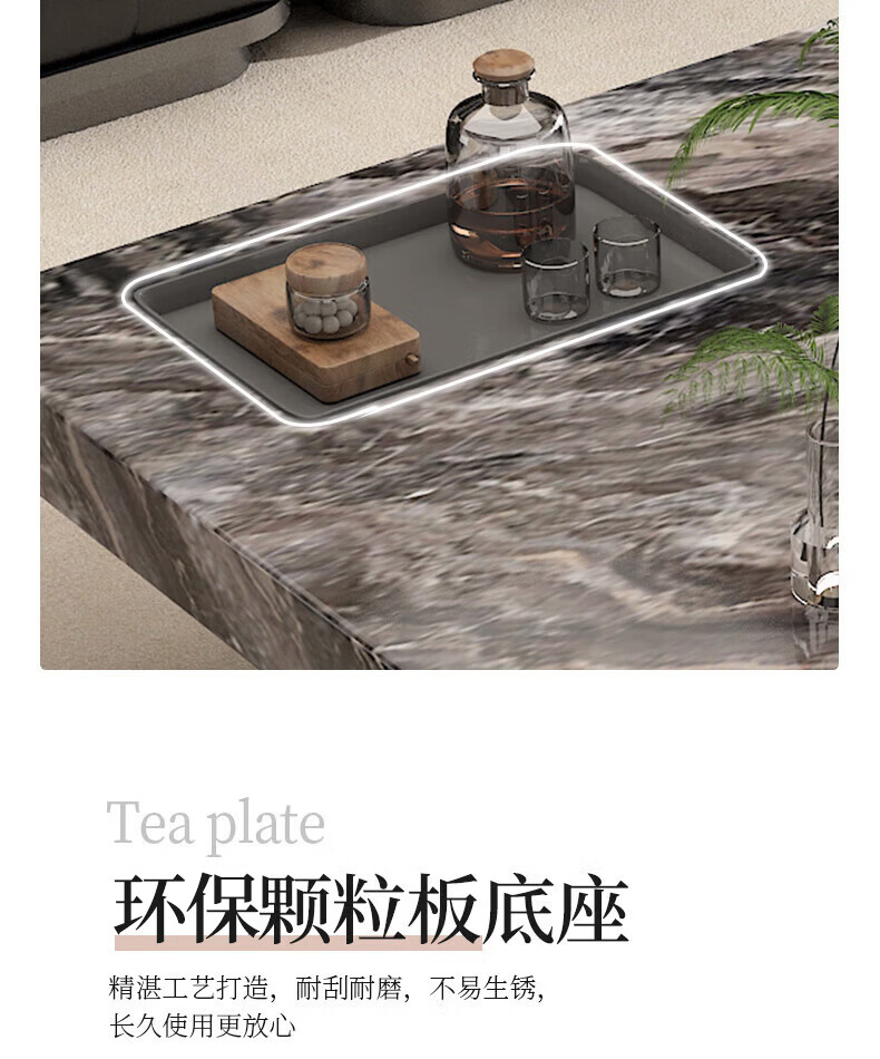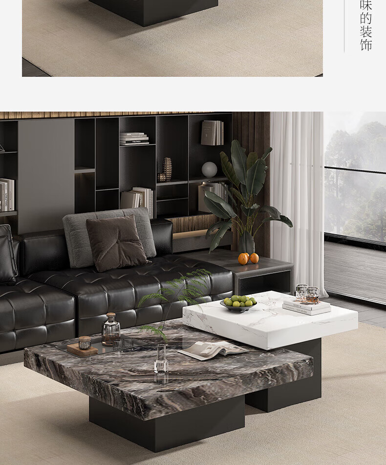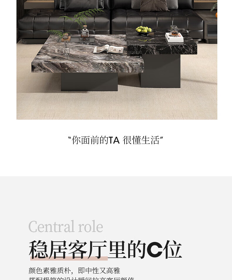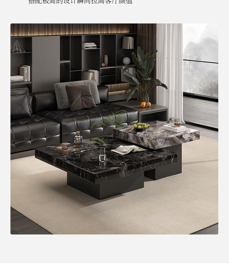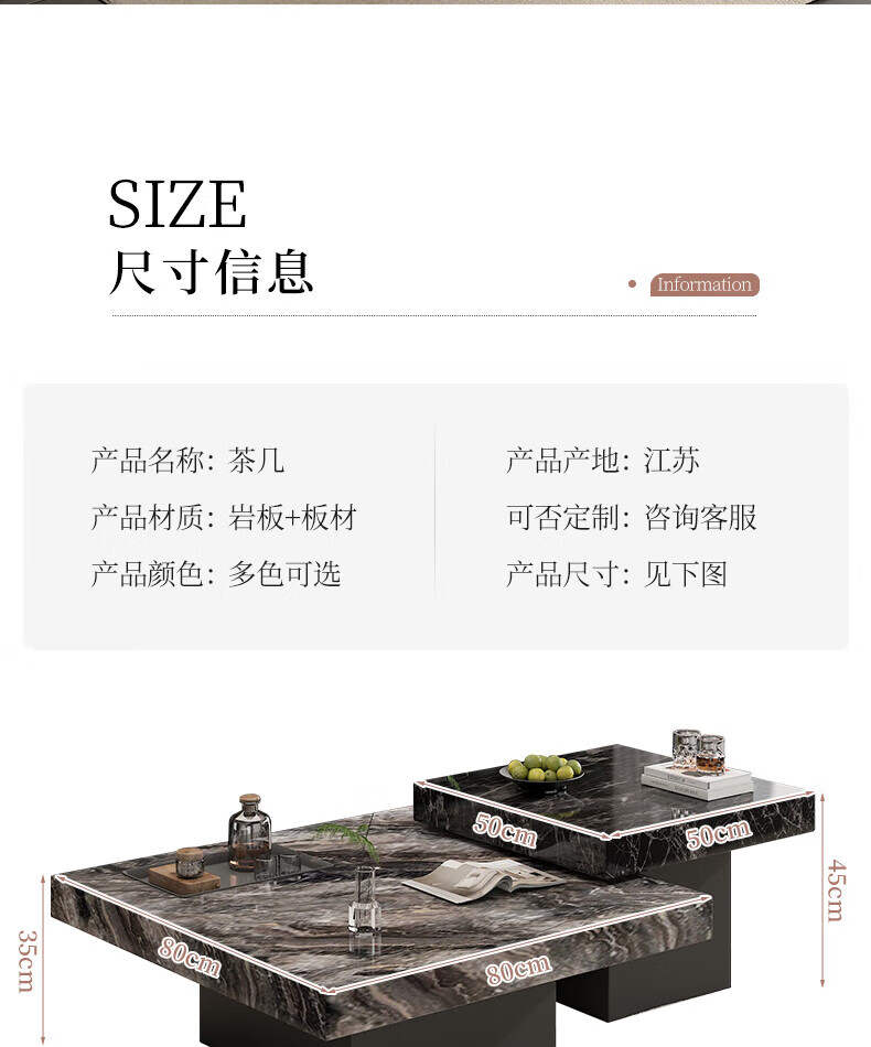 Qingzi Yu Italian minimalist slate coffee table square suspended home modern simple living room color matching high and low side table combination 80cm Venetian Brown + 50cm Knight Black Tea Tray Style