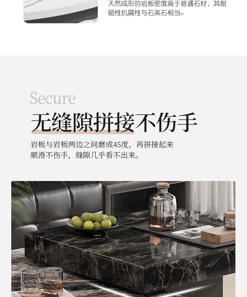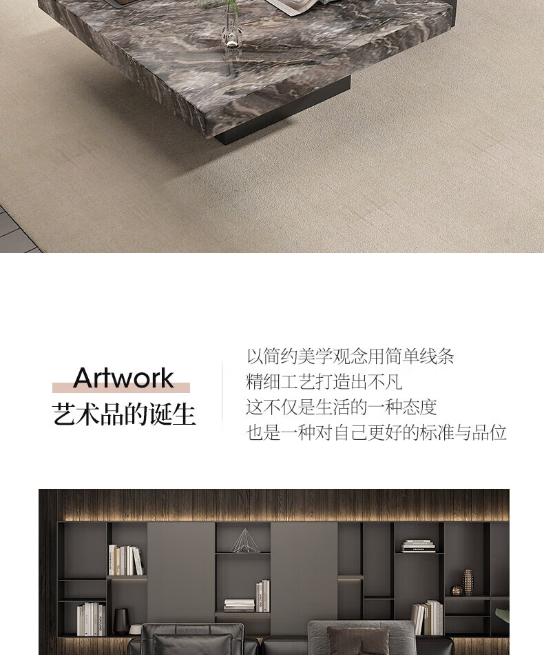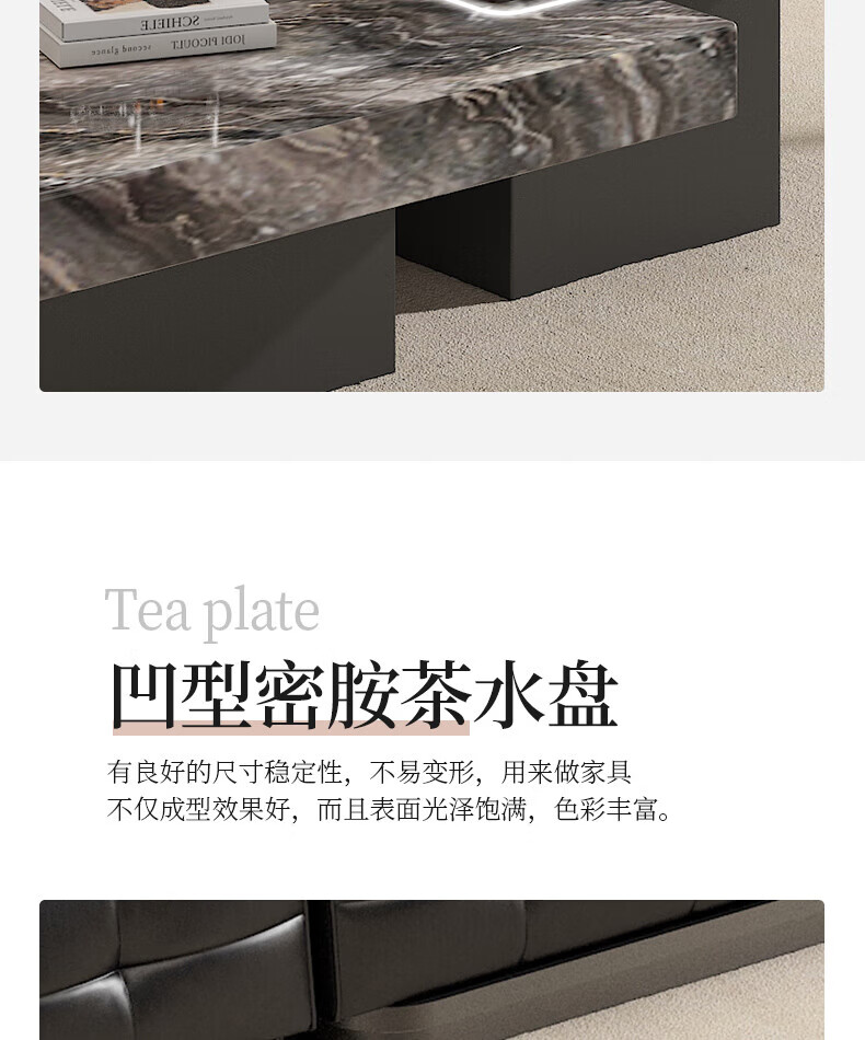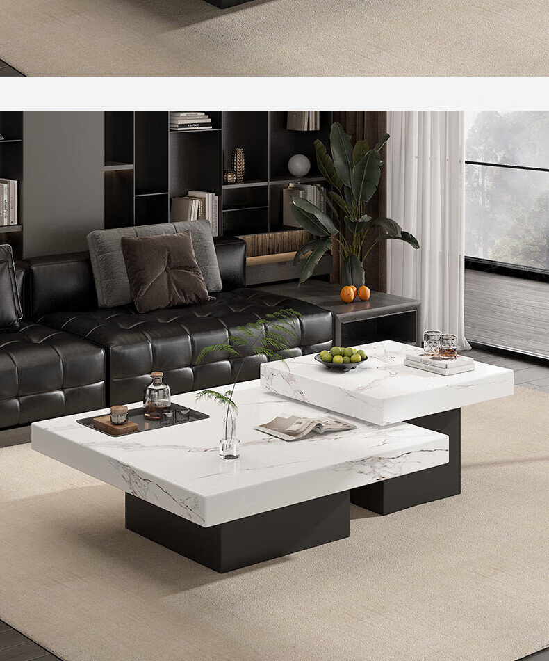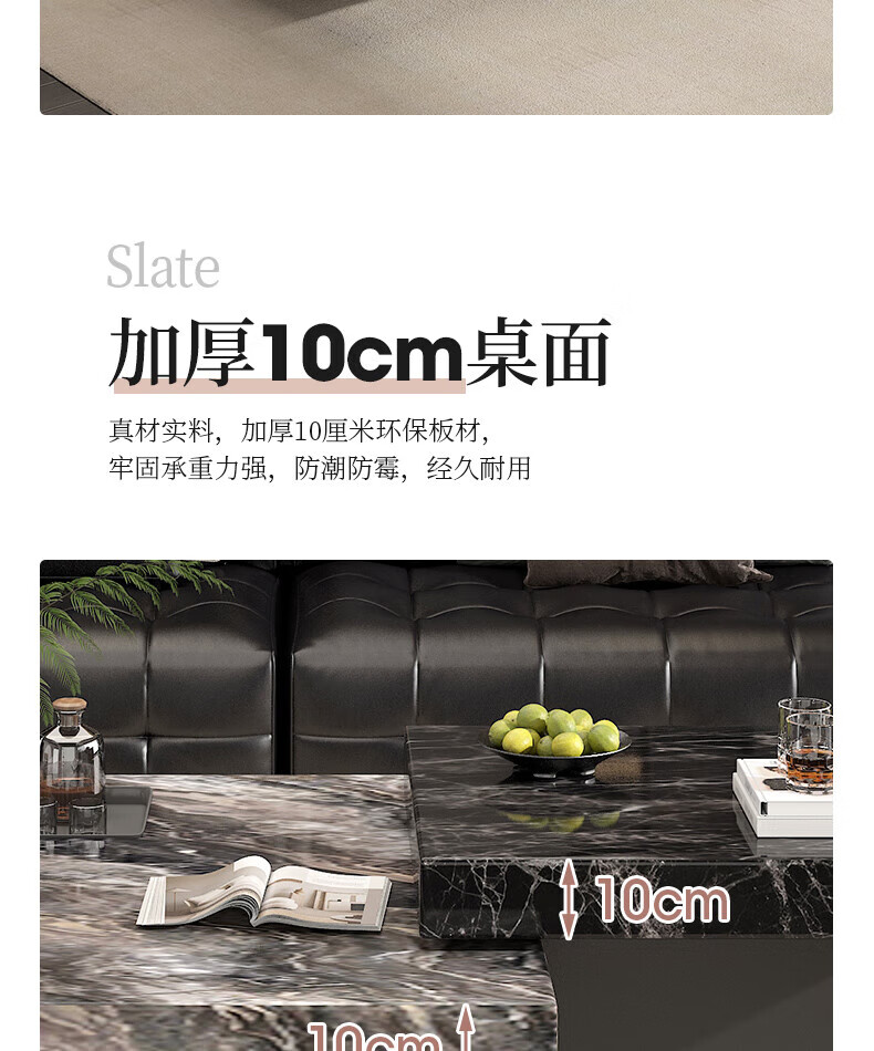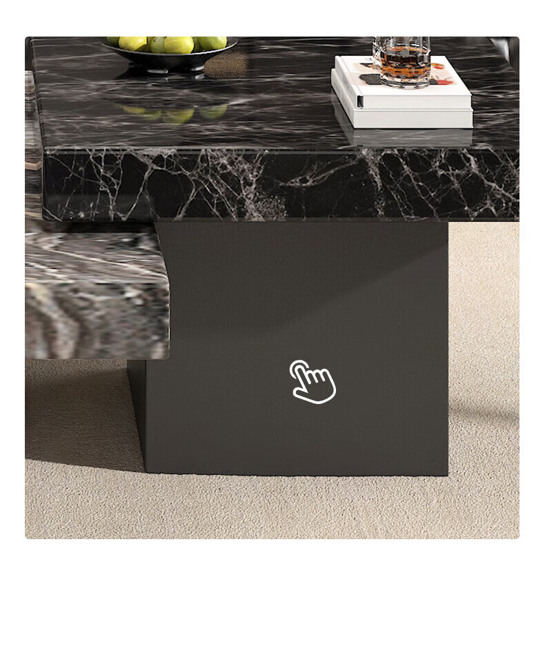 Qingzi Yu Italian minimalist slate coffee table square suspended home modern simple living room color matching high and low side table combination 80cm Venetian Brown + 50cm Knight Black Tea Tray Style