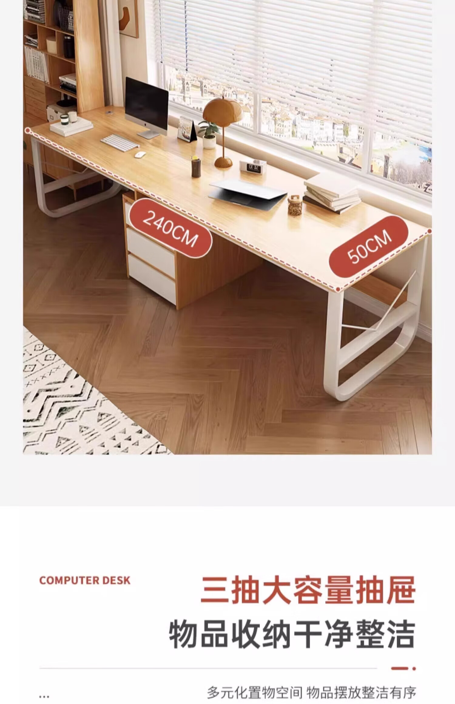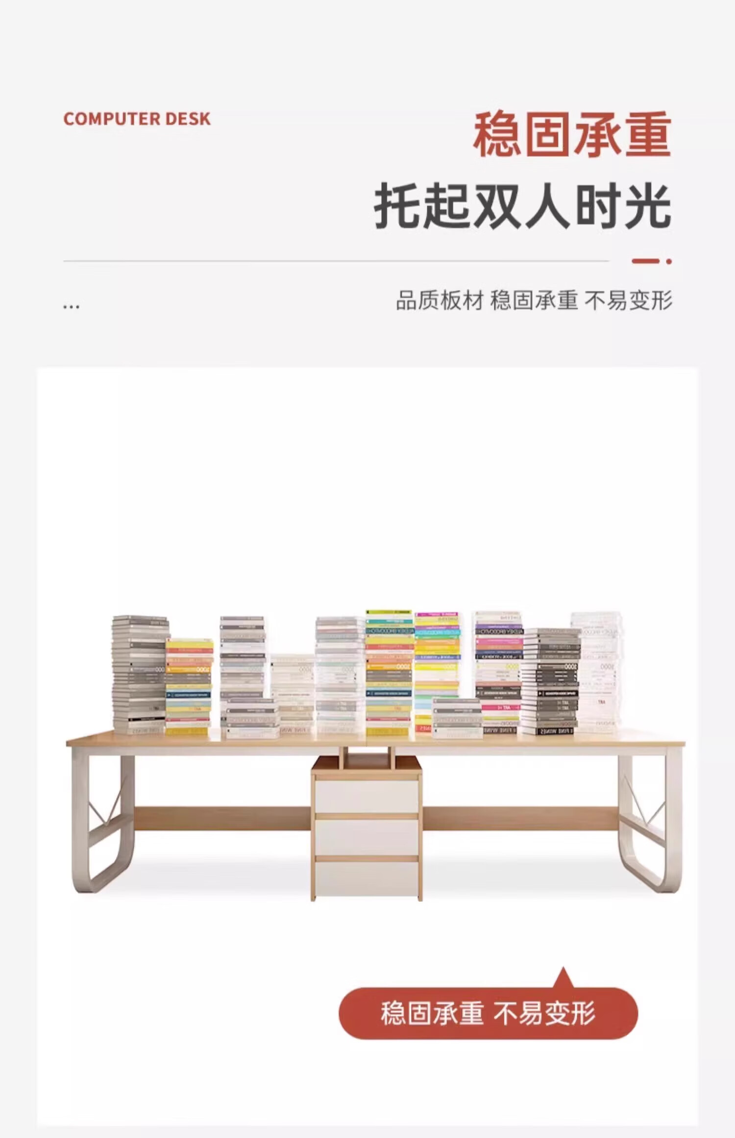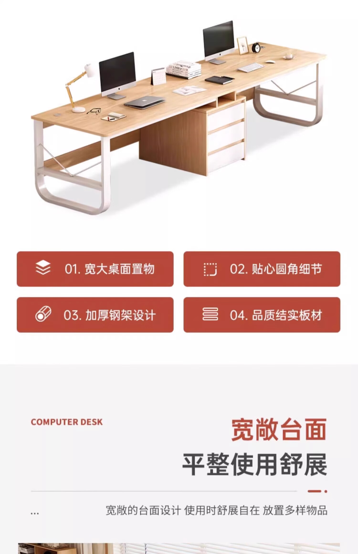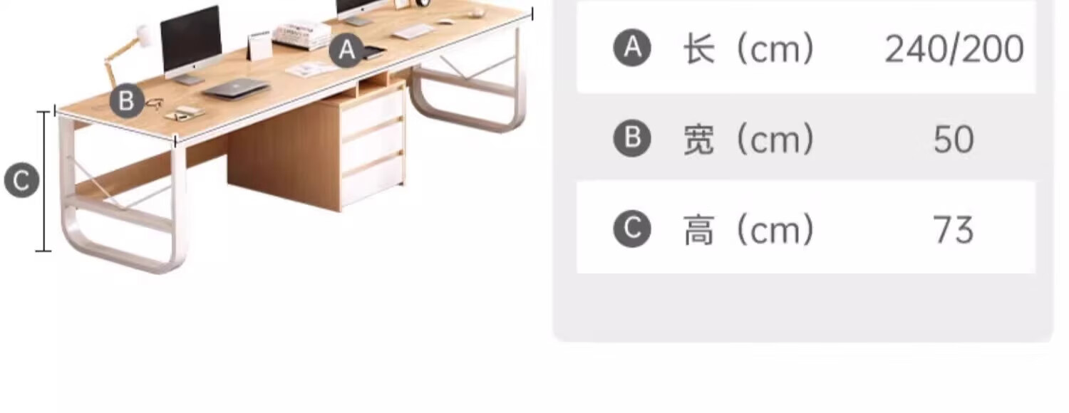 Double computer table desktop home long desk e-sports table couple side by side with drawer workbench office desk table and chairs warm white 200*50*73
