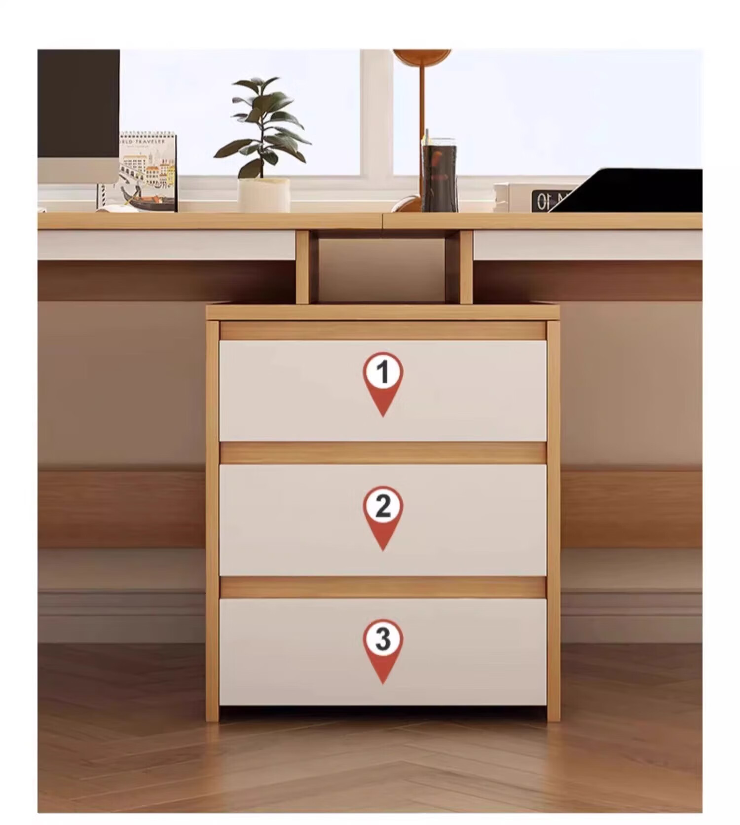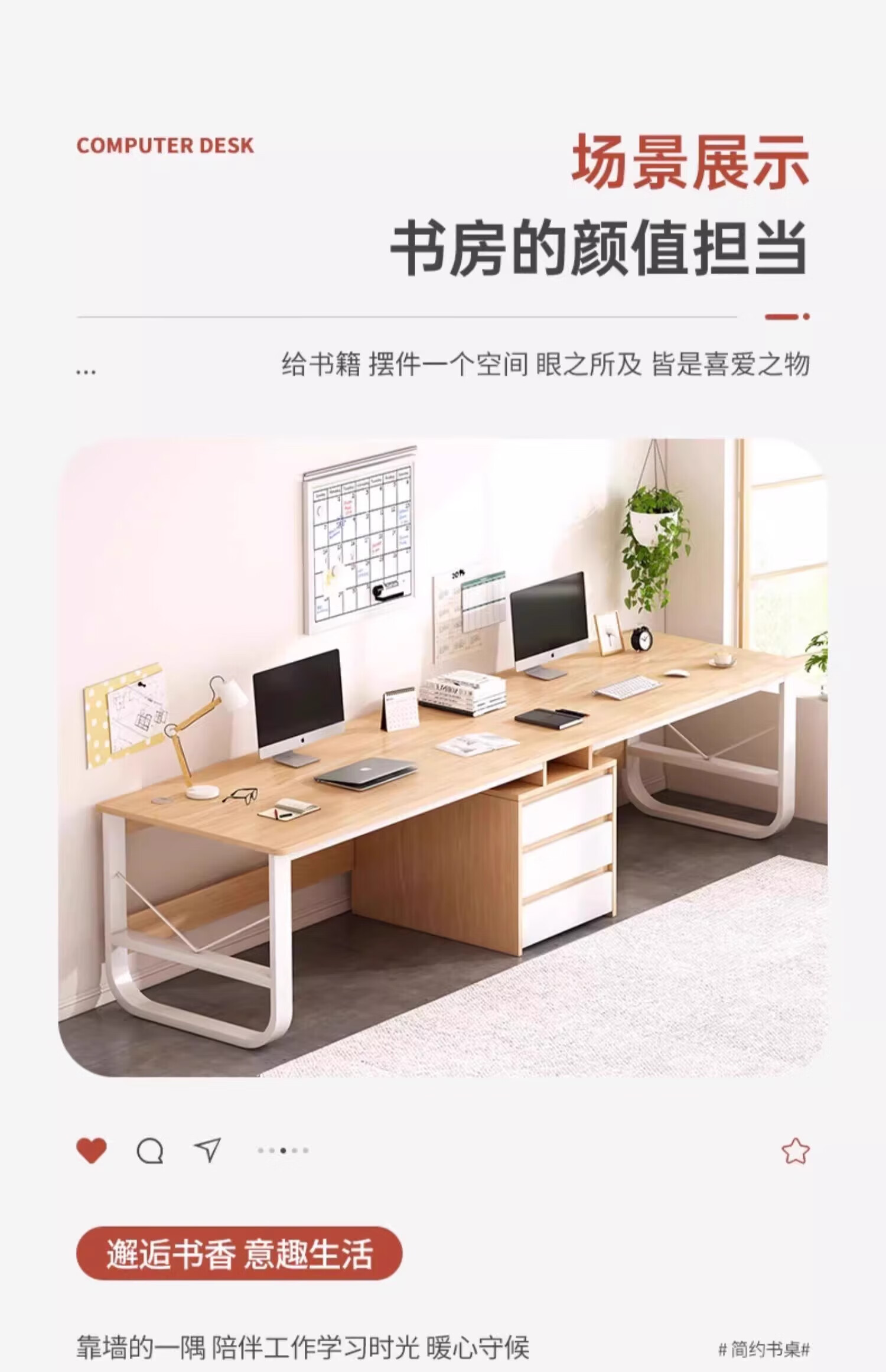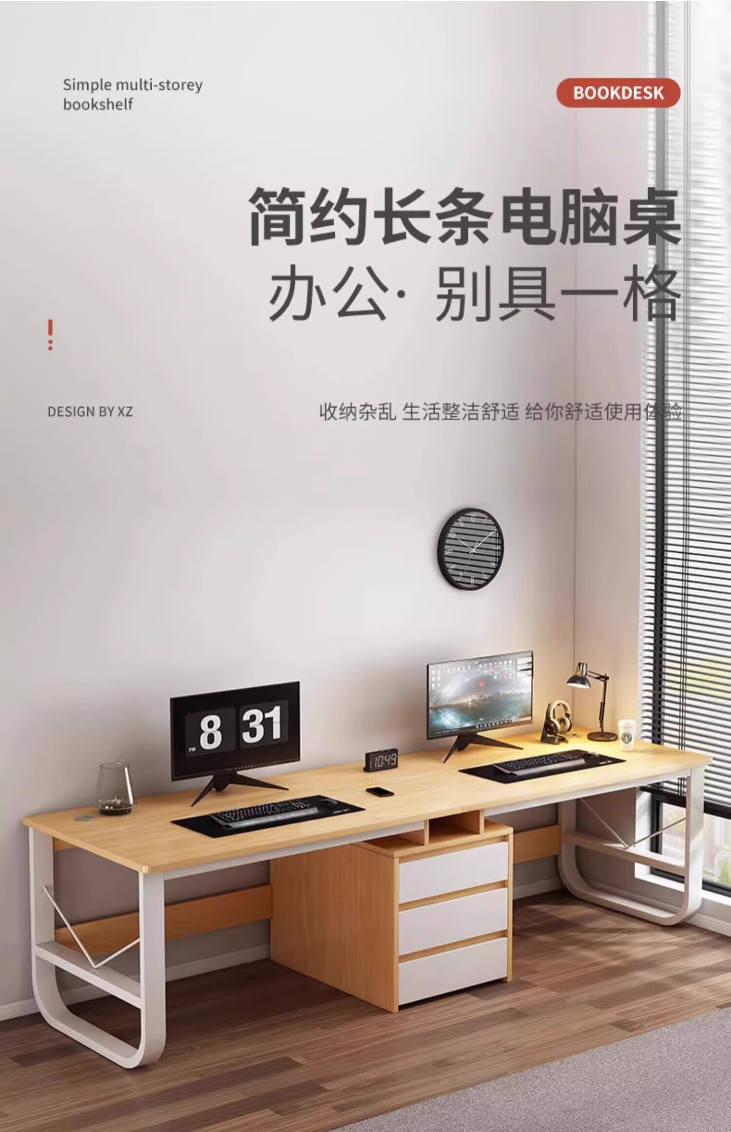 Double computer table desktop home long desk e-sports table couple side by side with drawer workbench office desk table and chairs warm white 200*50*73