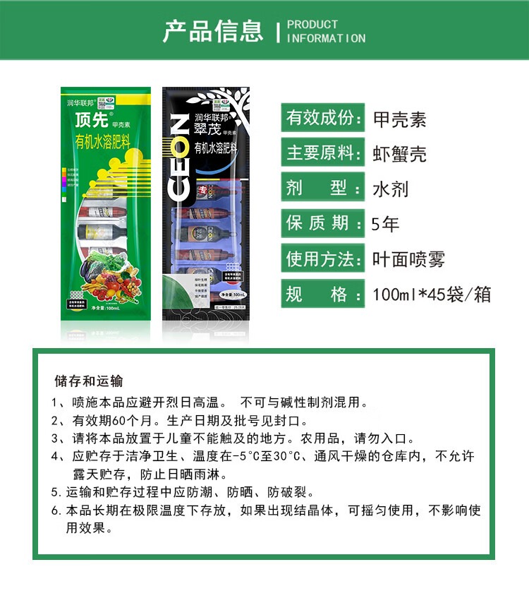 Runhua Federation RUNHUAFEDERATION Dingxian Cuimao organic water-soluble fertilizer chitin disease-resistant and heavy-cropping fruit expansion fruit rooting foliar fertilizer Dingxian 100ml