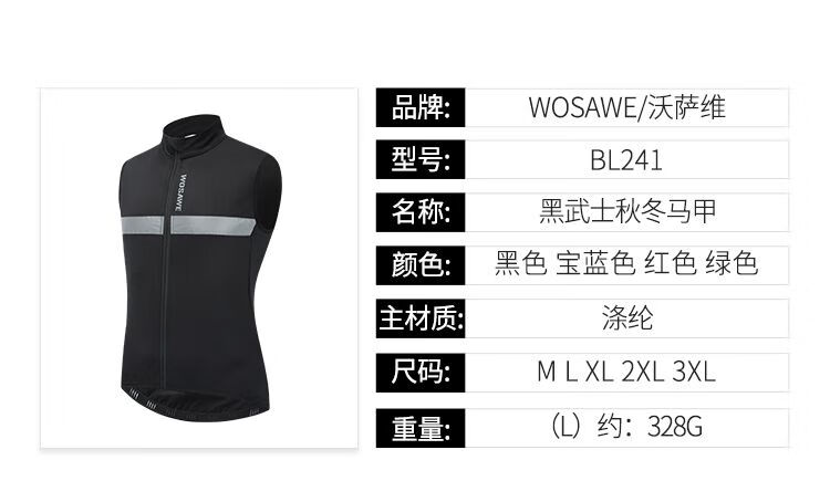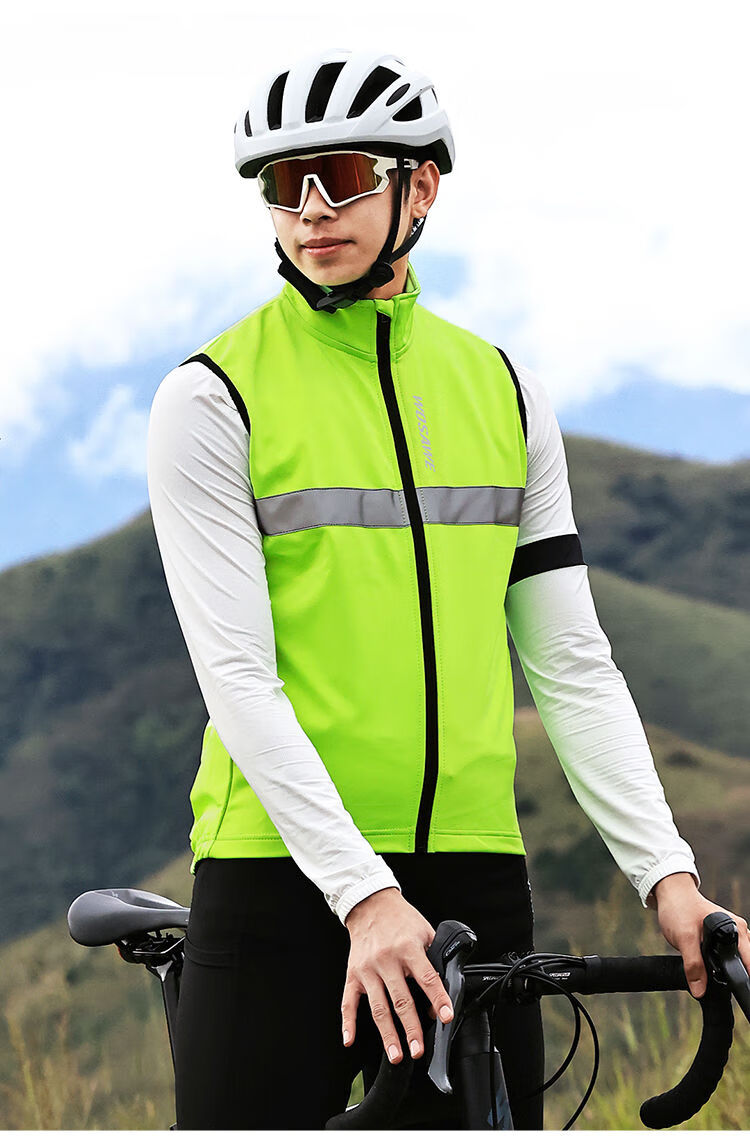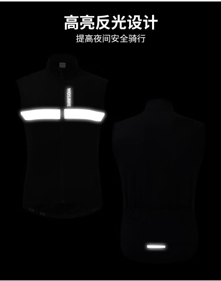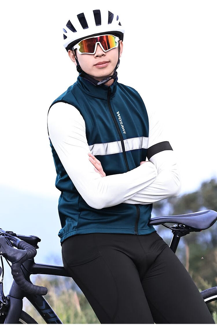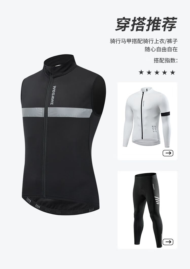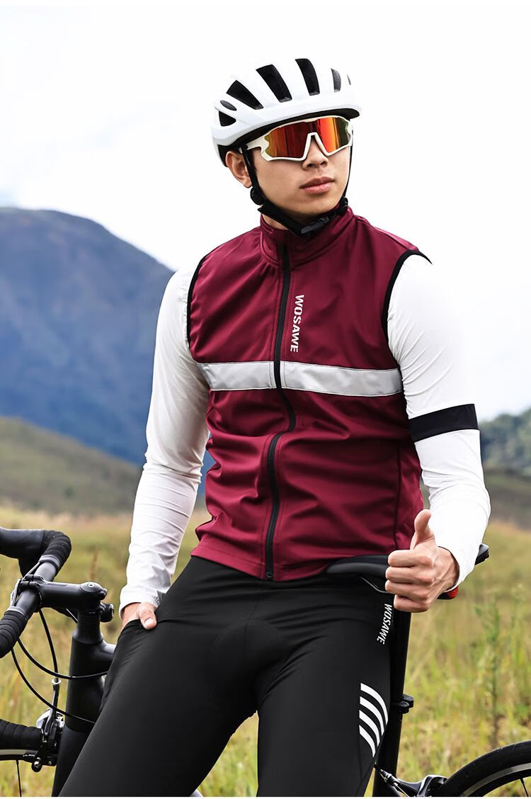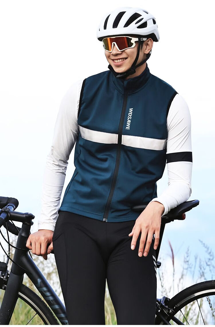 WOSAWE Mountain Road Bike Fleece Vest Water-Repellent Autumn and Winter Cycling Clothes Cycling Vest BL241-Black Warrior Black M Suitable for 60-65 kg