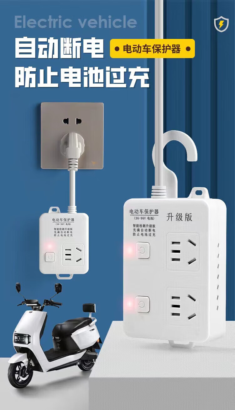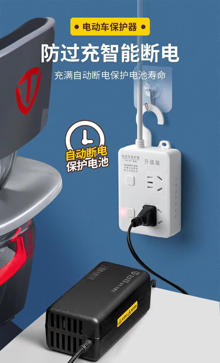 Bull Bull electric vehicle charging automatic power-off protector socket battery car anti-overcharging smart timer plug-in strip 2-digit 0.2 meter automatic power-off when full 2-position 0.2 meter automatic power-off