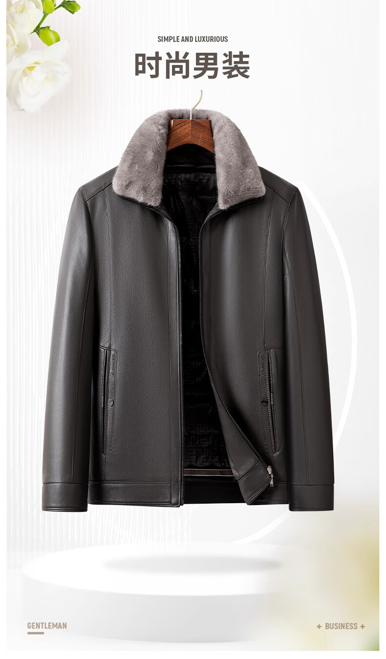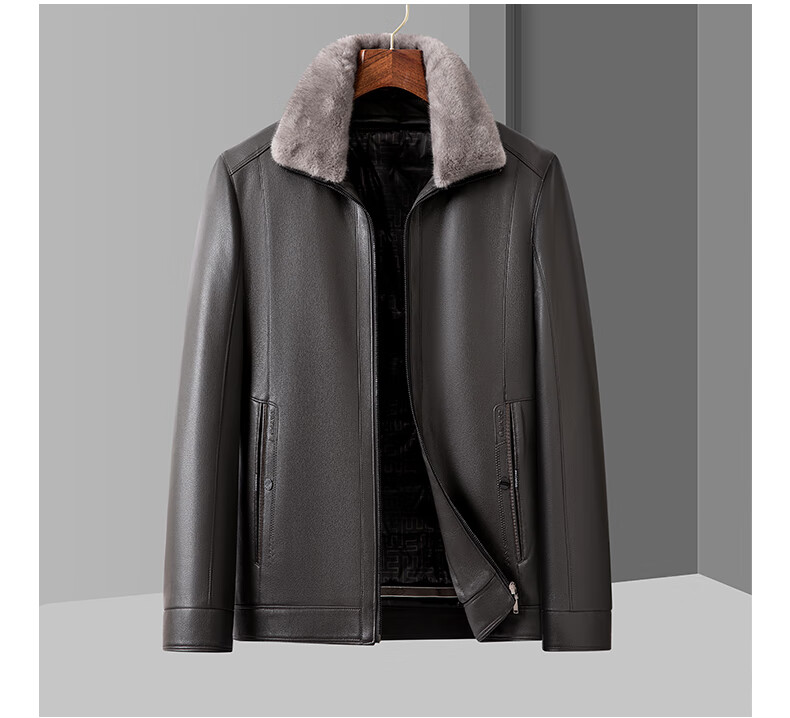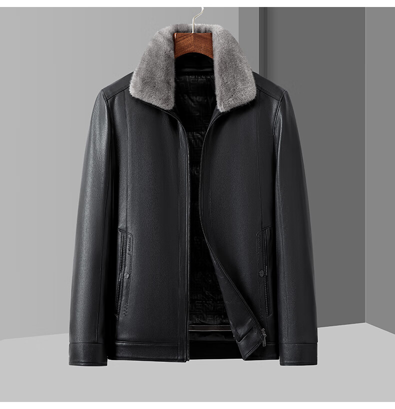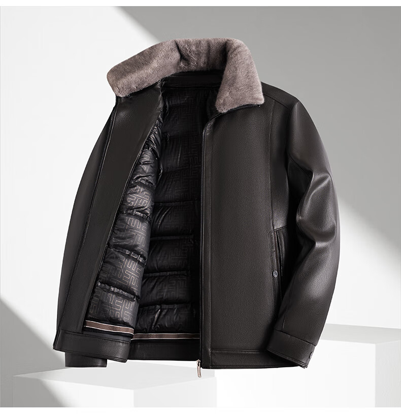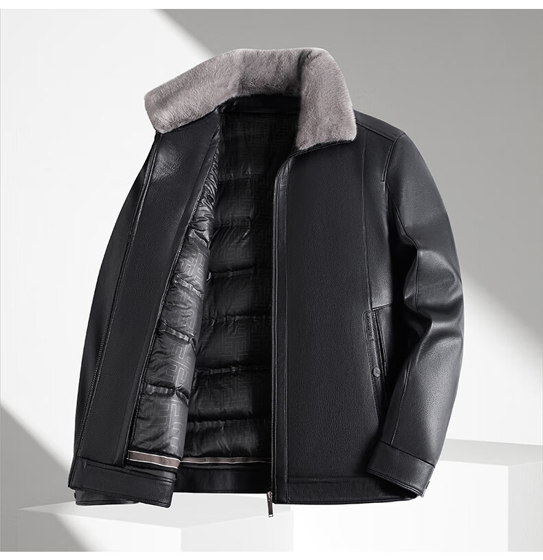 Woodpecker (TUCANO) down leather jacket men's thickened and warm autumn and winter leather jacket dad winter coat middle-aged men's leather jacket top black removable liner + fur collar XL /180 recommended 125-140Jin Jin equals 0.5 kg