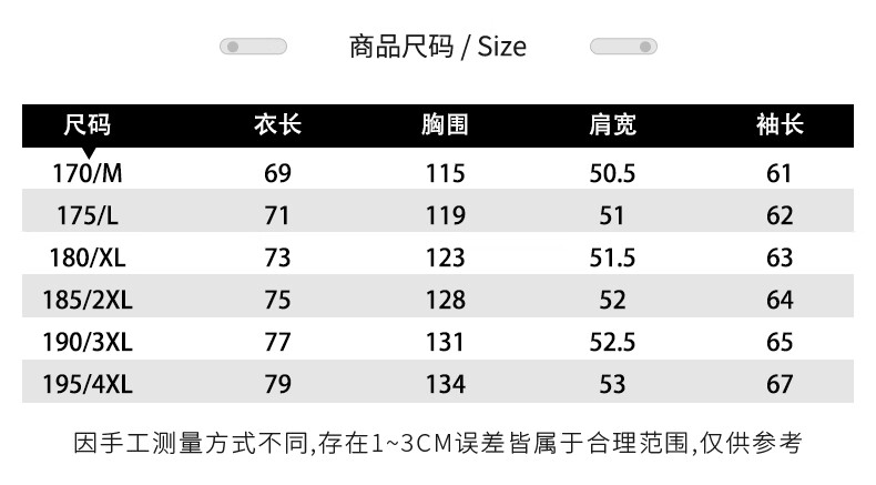 China (cm) 165 / 88-90 170 / 96-98 175 / 108-110 180 / 118-122 185 / 126-130