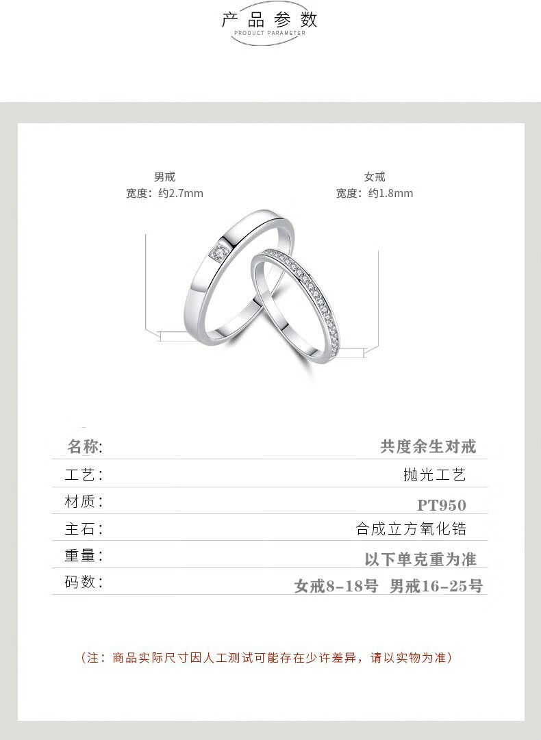 Jinshitong pt950 platinum couple ring to spend the rest of their lives together PT950 ring closed diamond ring custom plain ring lover to spend the rest of their life platinum female ring No. 11