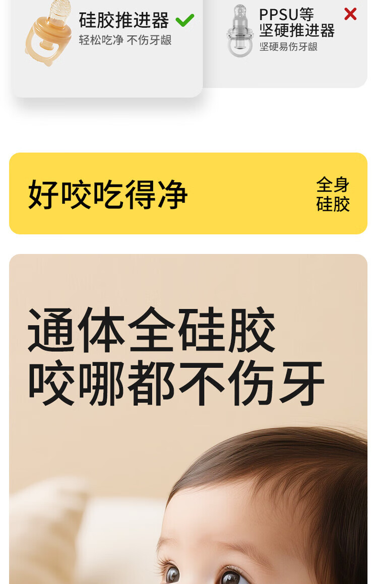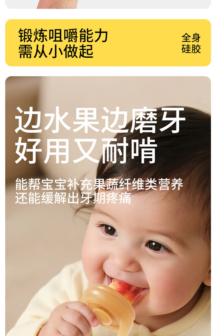 Liangliang Bear Bite Fruit Fruit and Vegetable Bite Bag for babies over 6 months old, fruit and vegetable bite bag, Bite Bite (non-teeth-chickening-soft silicone propeller) 1 pack