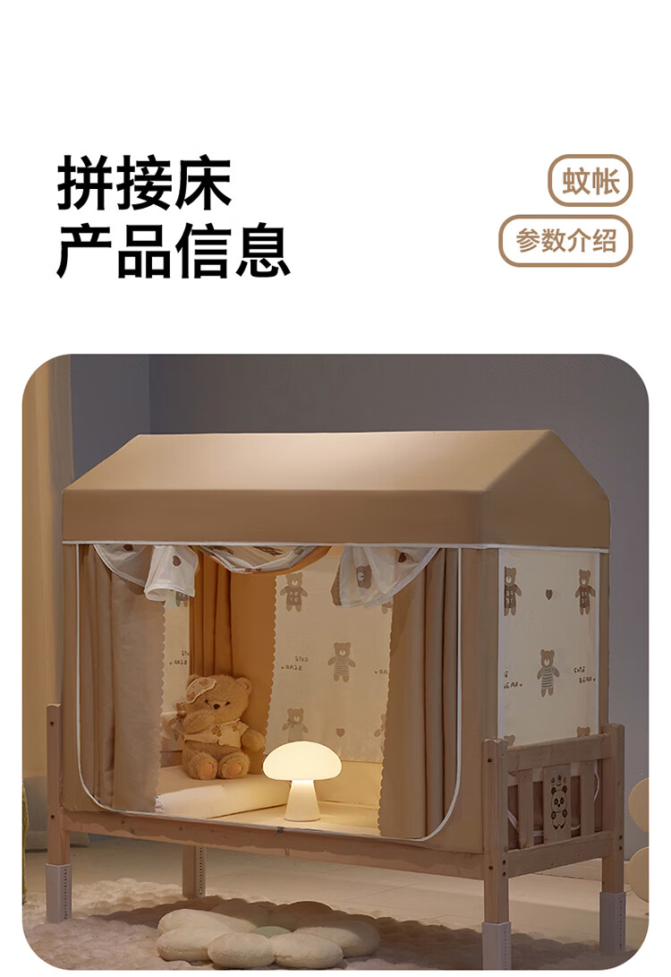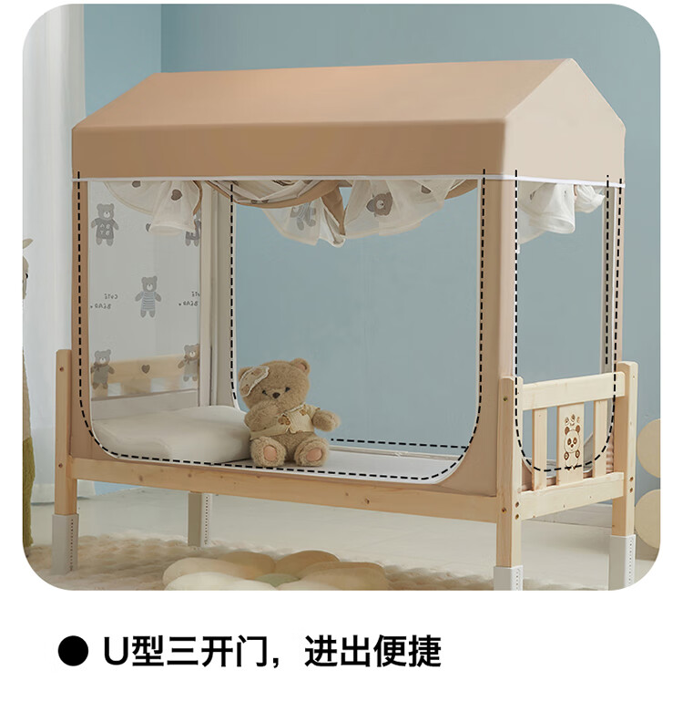 2025 New Baby Spliced Bed Mosquito Net Home Bedroom Full Bottom Children's Anti-Fall Mongolian Yurt Blackout Bed Tent Snow Yourui Curtainless Model Width 60 Length 140 Height 116cm