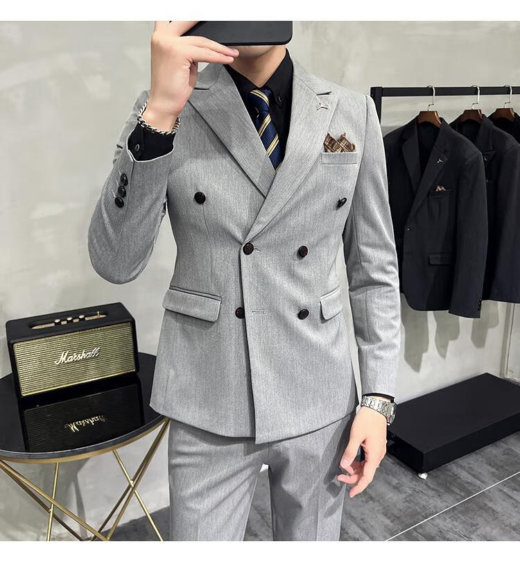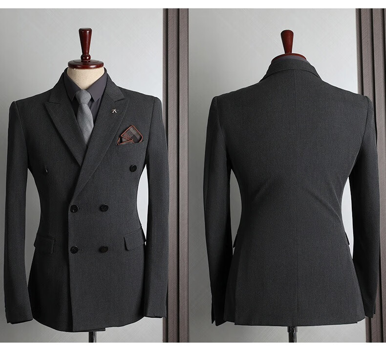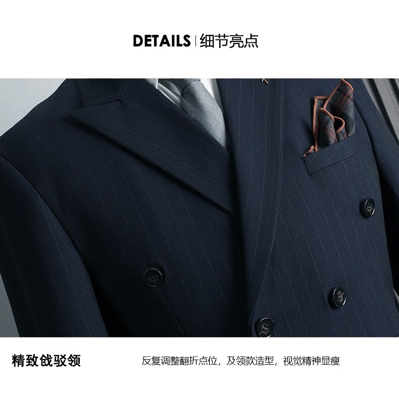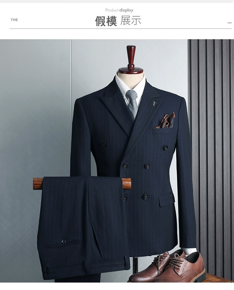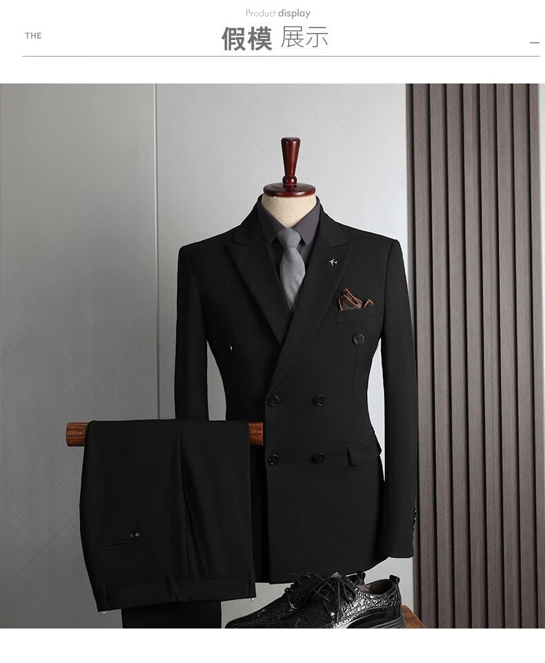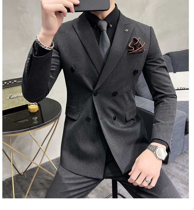 Playboy Suit Men's Double Breasted Business Casual Stretch Suit Three Piece Groom Wedding Dress Double Striped Black (Top + Pants + Vest) Free Shirt + Tie + Leather 2XL Weight (153-165Jin Jin is equal to 0.5kg)