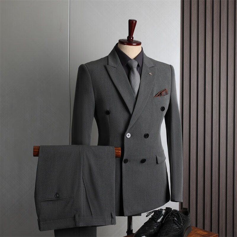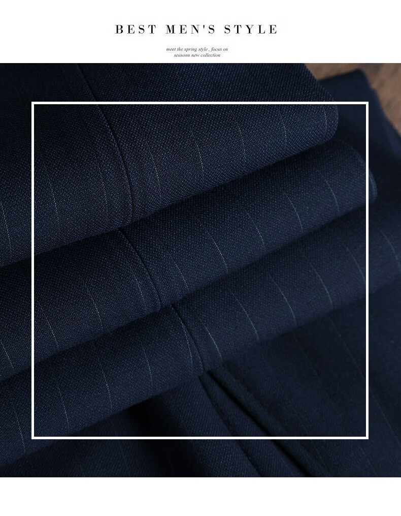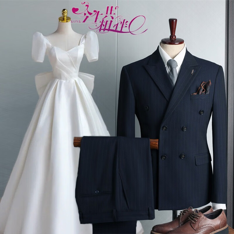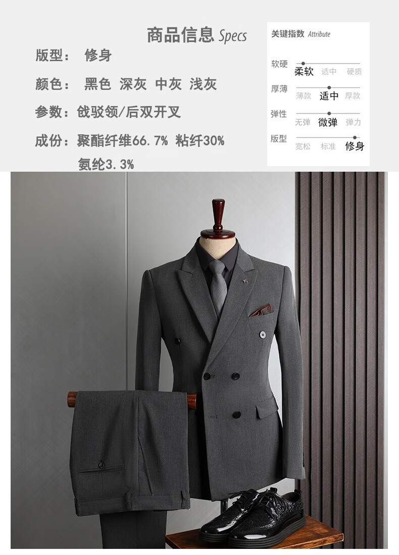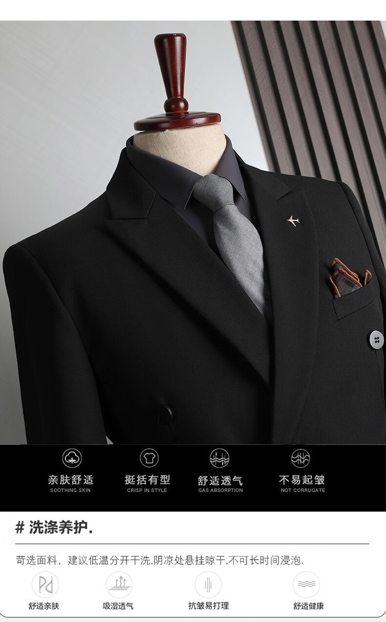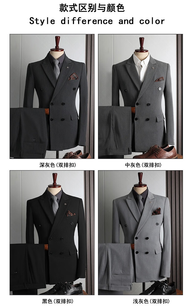 Playboy Suit Men's Double Breasted Business Casual Stretch Suit Three Piece Groom Wedding Dress Double Striped Black (Top + Pants + Vest) Free Shirt + Tie + Leather 2XL Weight (153-165Jin Jin is equal to 0.5kg)
