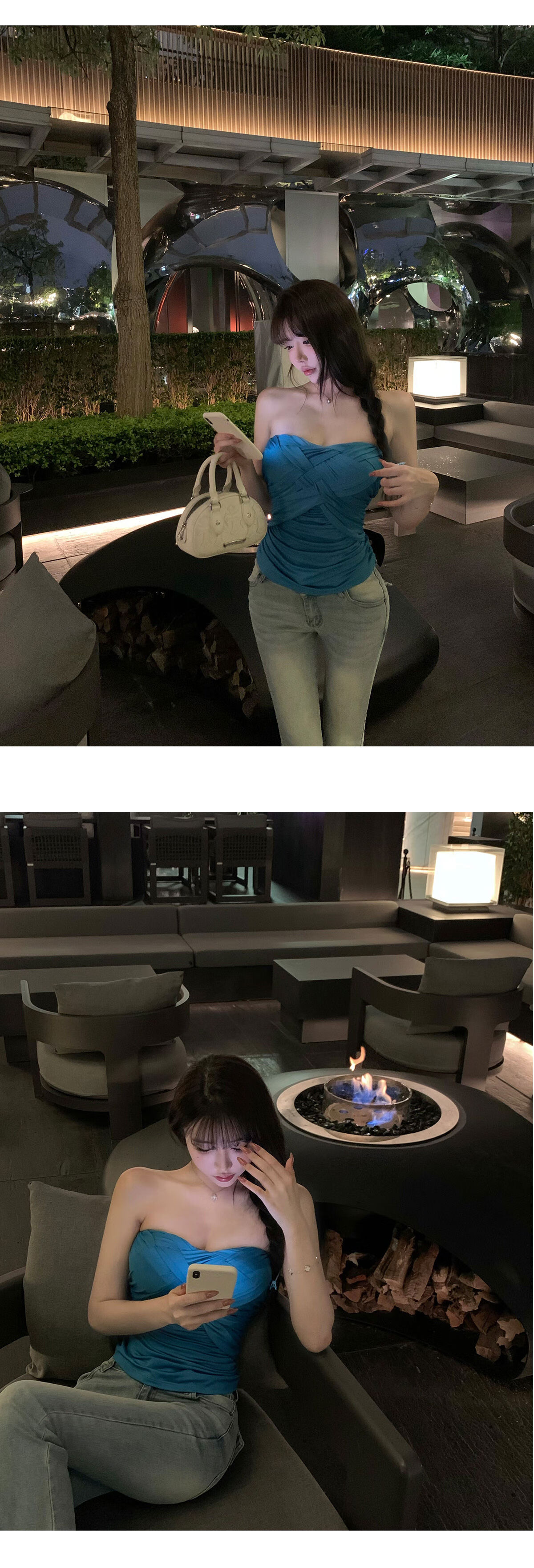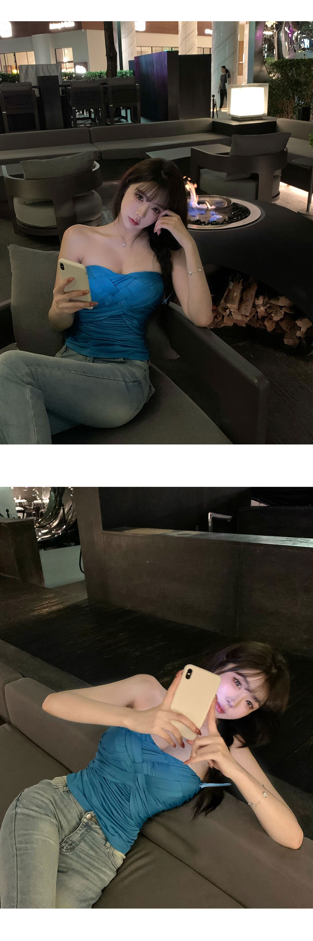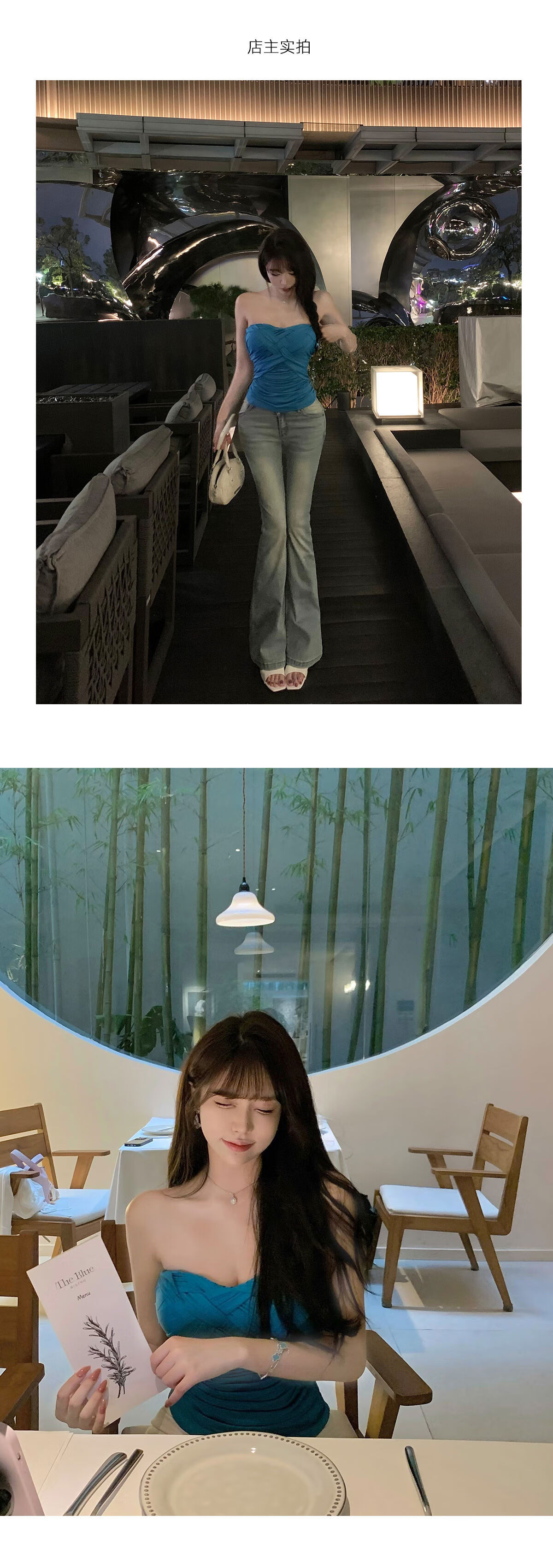 Liuuheeheea niche design tube top slimming slim net celebrity ins solid color versatile slim sleeveless top blue S