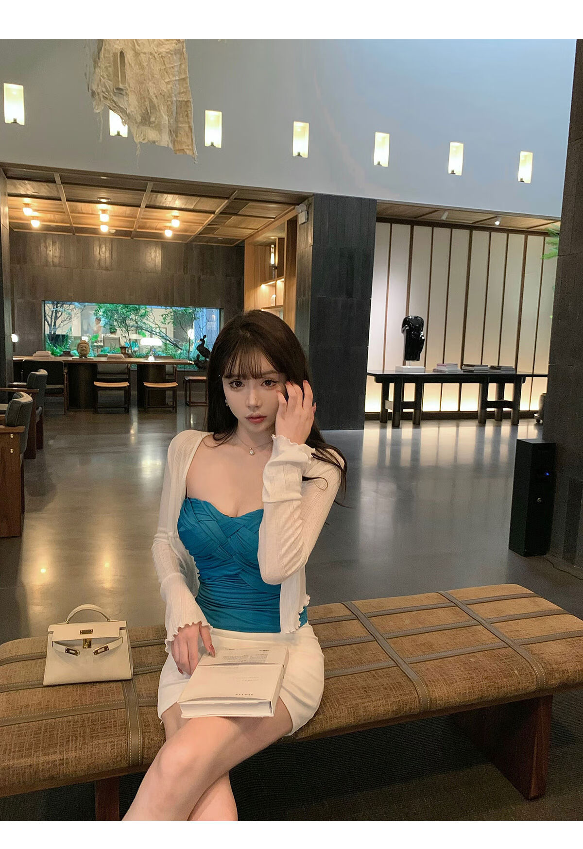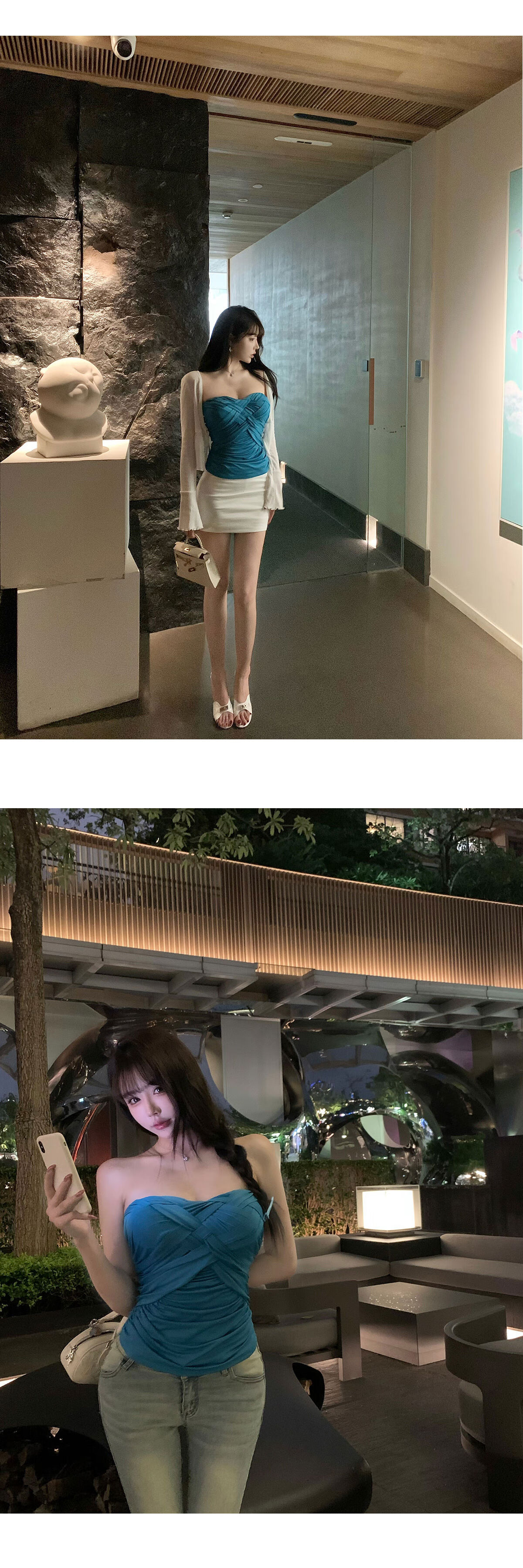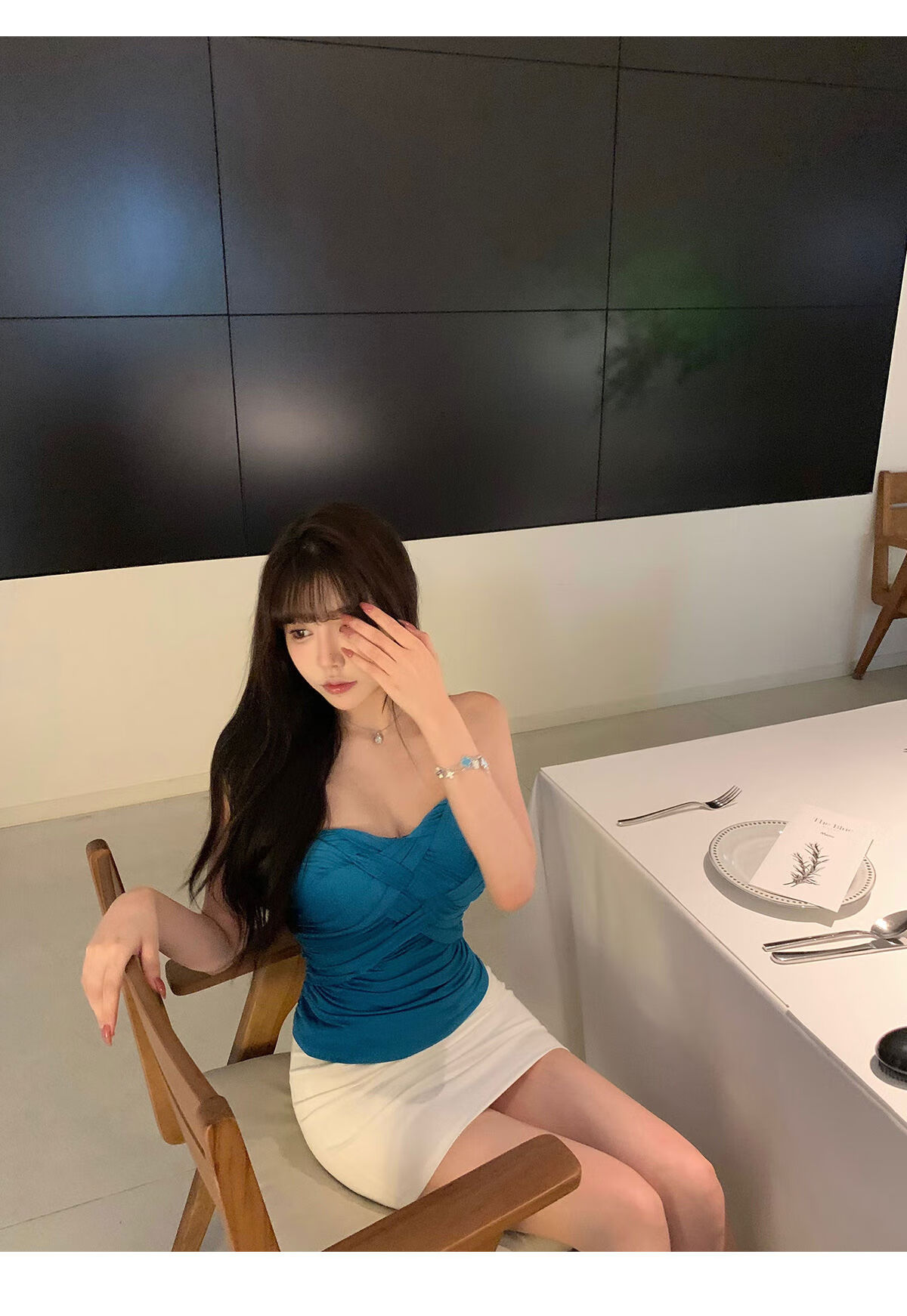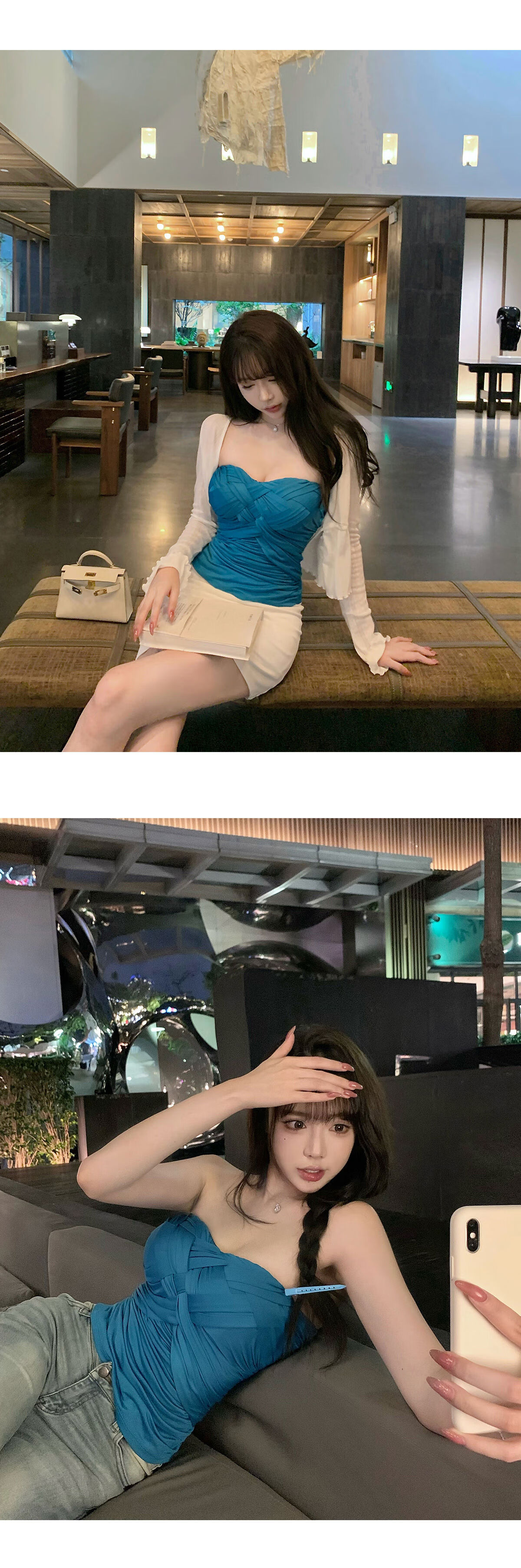 Liuuheeheea niche design tube top slimming slim net celebrity ins solid color versatile slim sleeveless top blue S