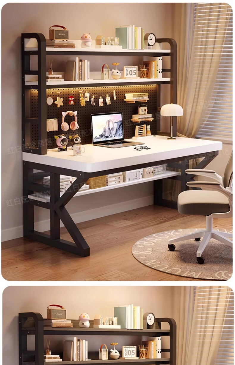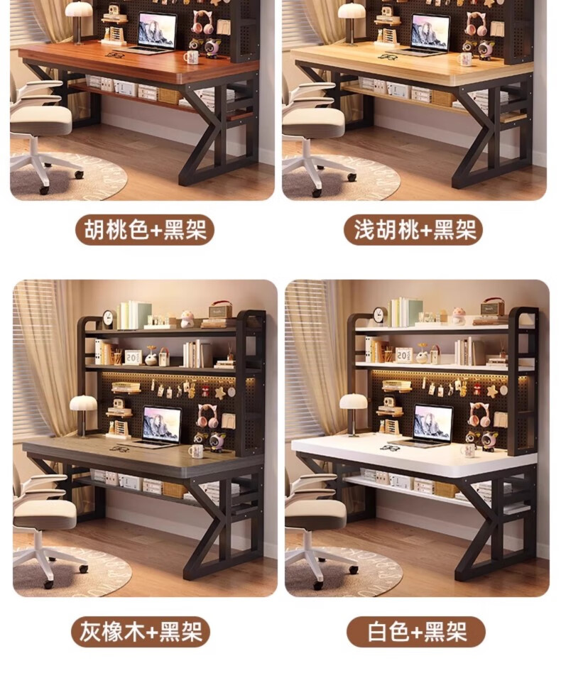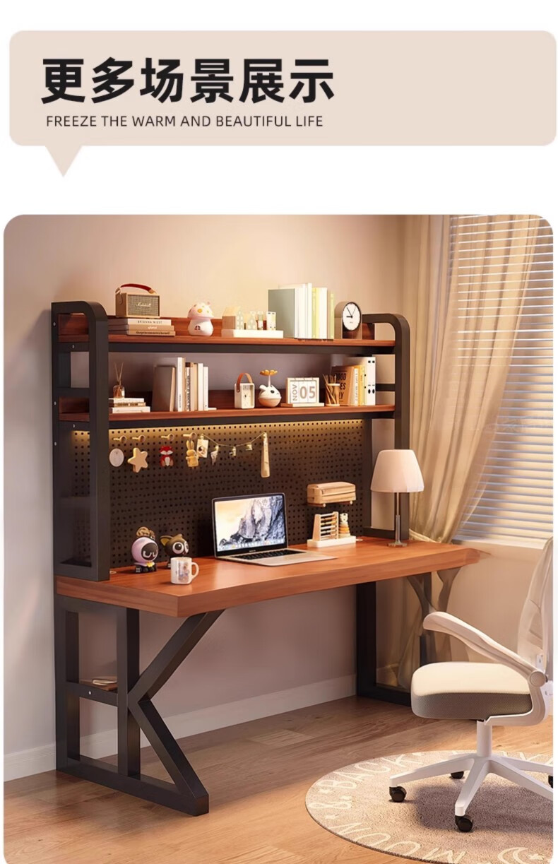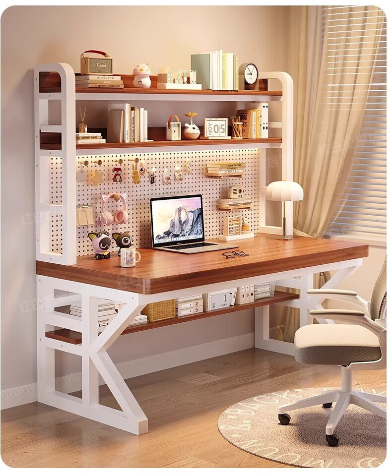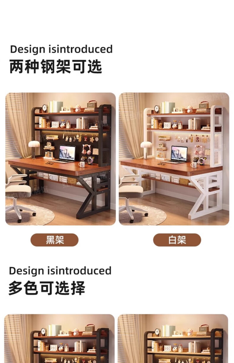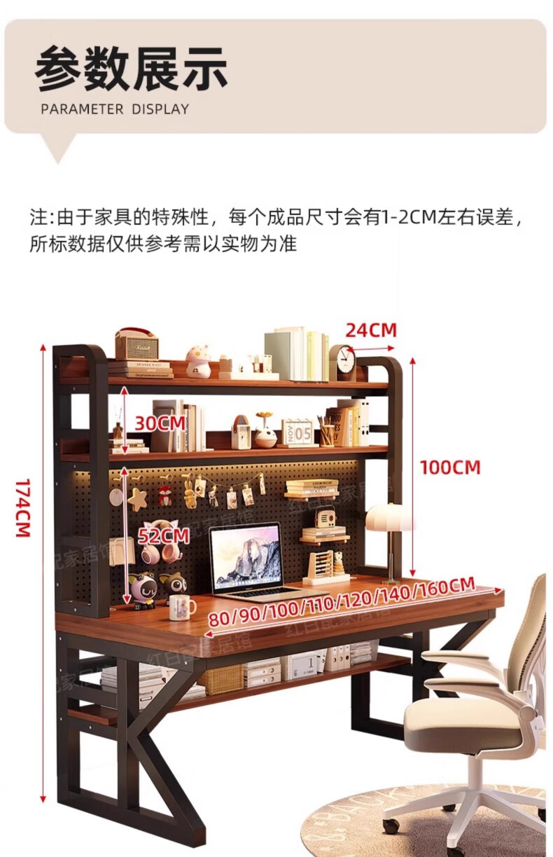 Yanqi Home Delivery Computer Desk Desktop Bookshelf Integrated Desk Desk Perforated Board Student Study Desk Dark Walnut + Black Shelf Extra Thick 3.0CM Solid Wood 100x60x176cm Bookshelf Perforated Board