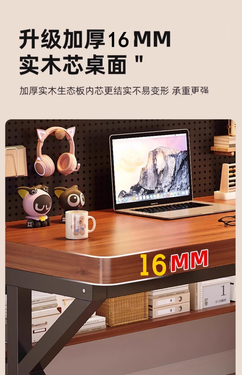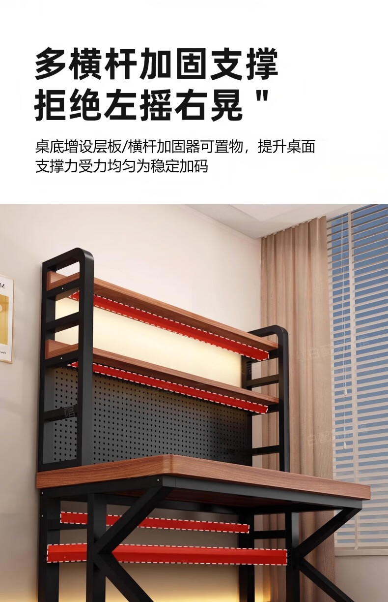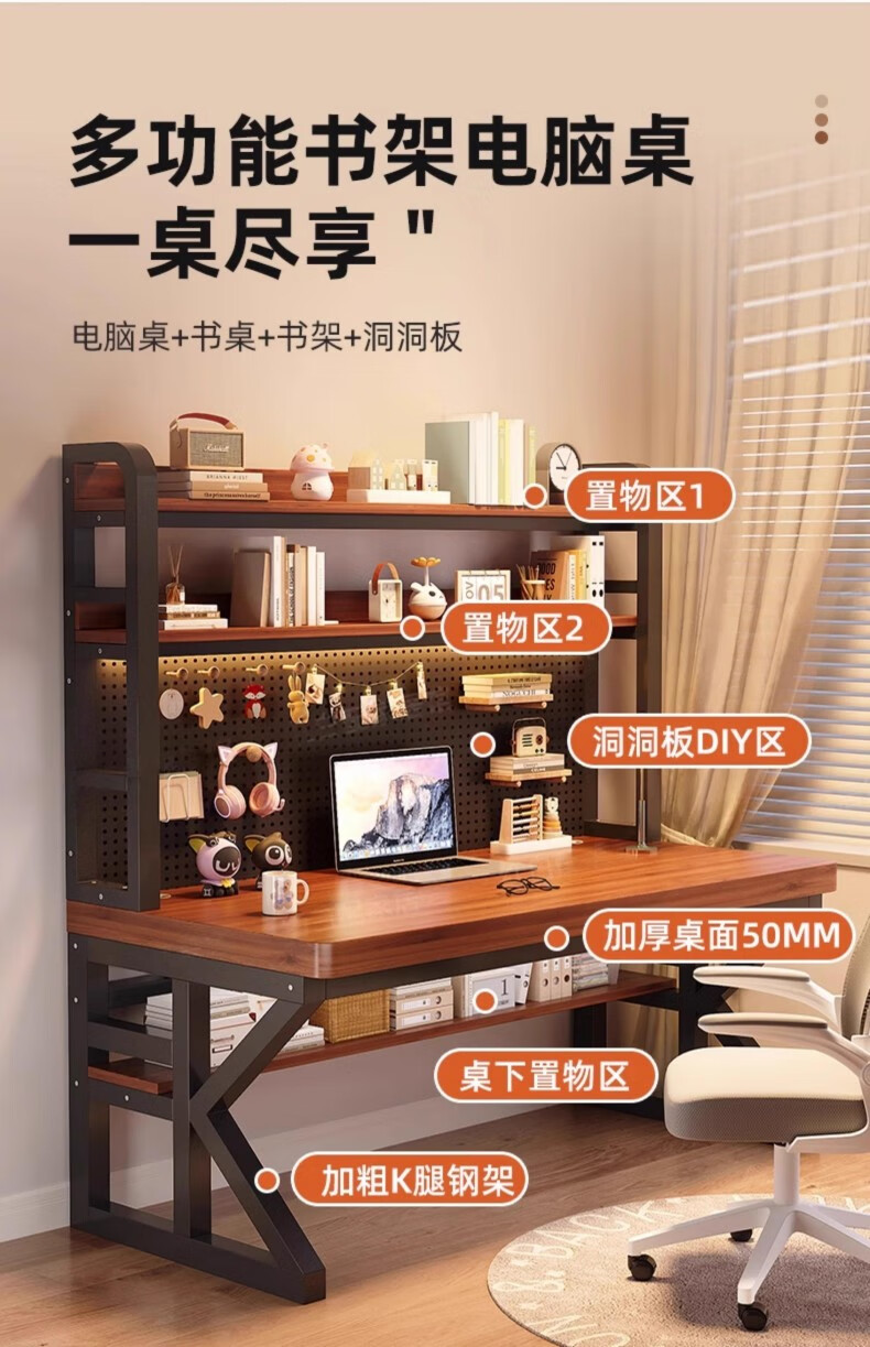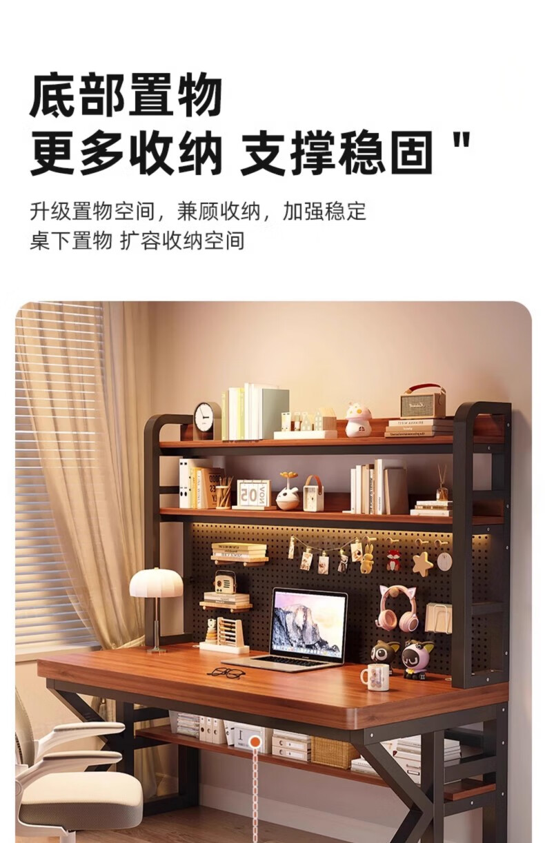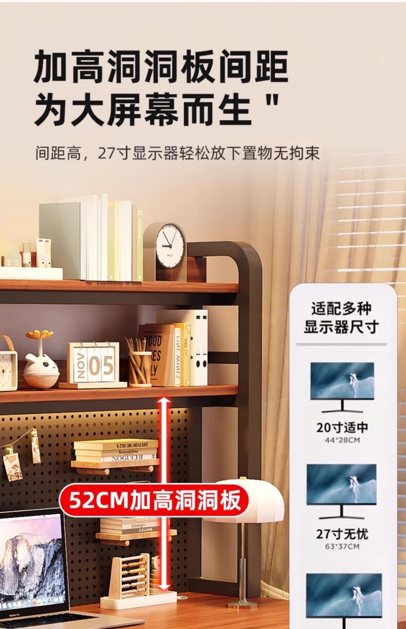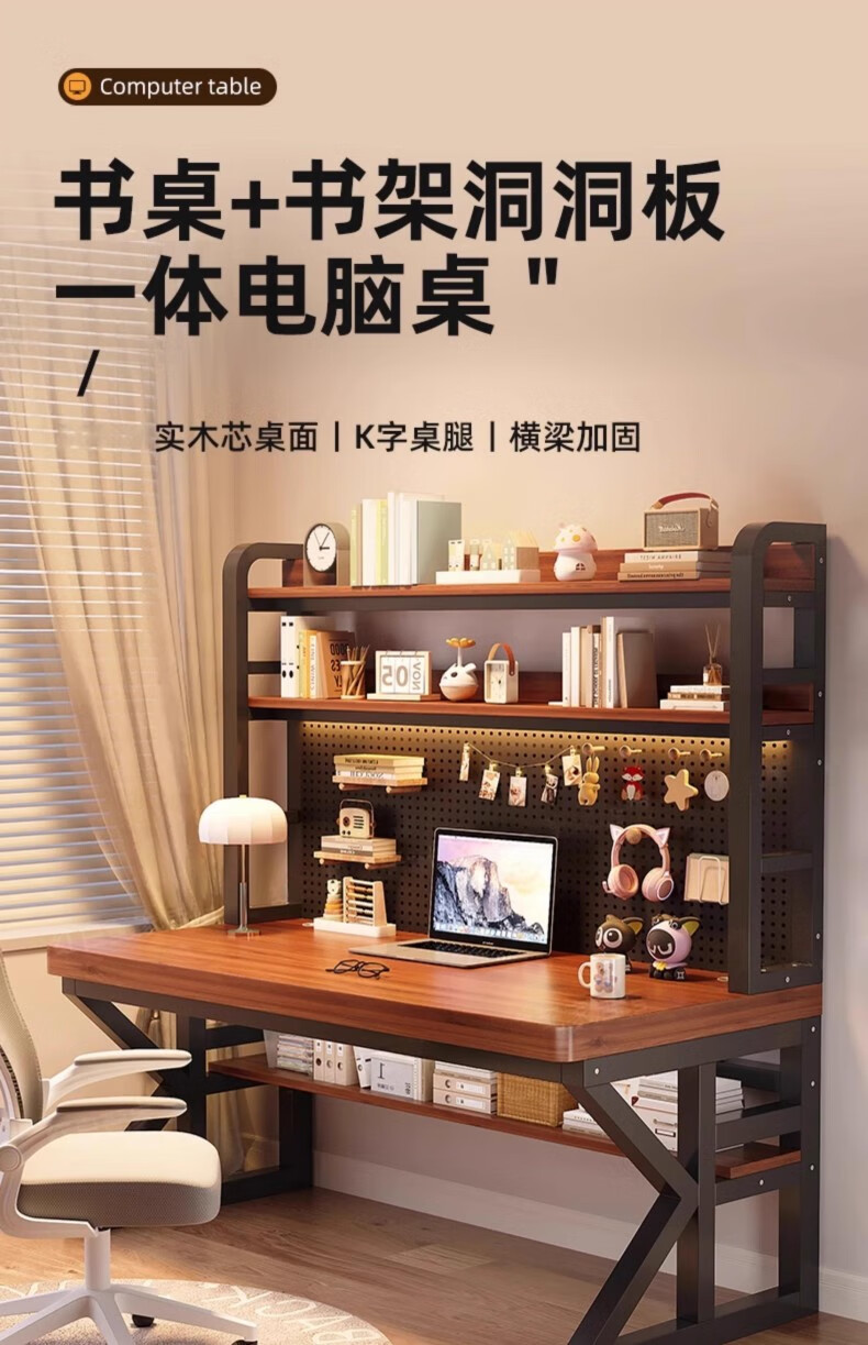 Yanqi Home Delivery Computer Desk Desktop Bookshelf Integrated Desk Desk Perforated Board Student Study Desk Dark Walnut + Black Shelf Extra Thick 3.0CM Solid Wood 100x60x176cm Bookshelf Perforated Board