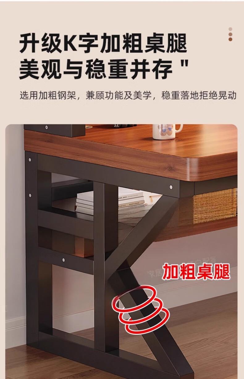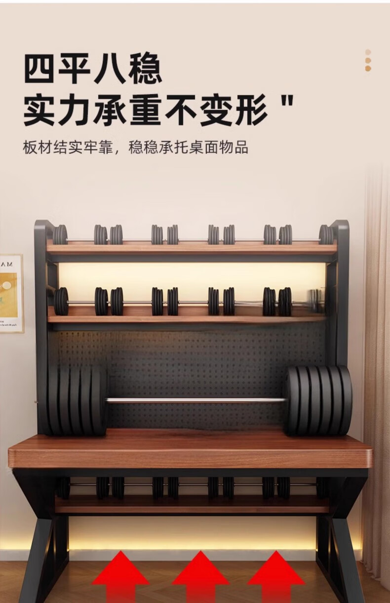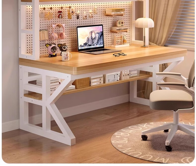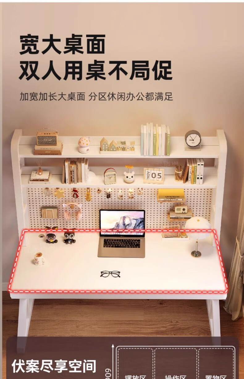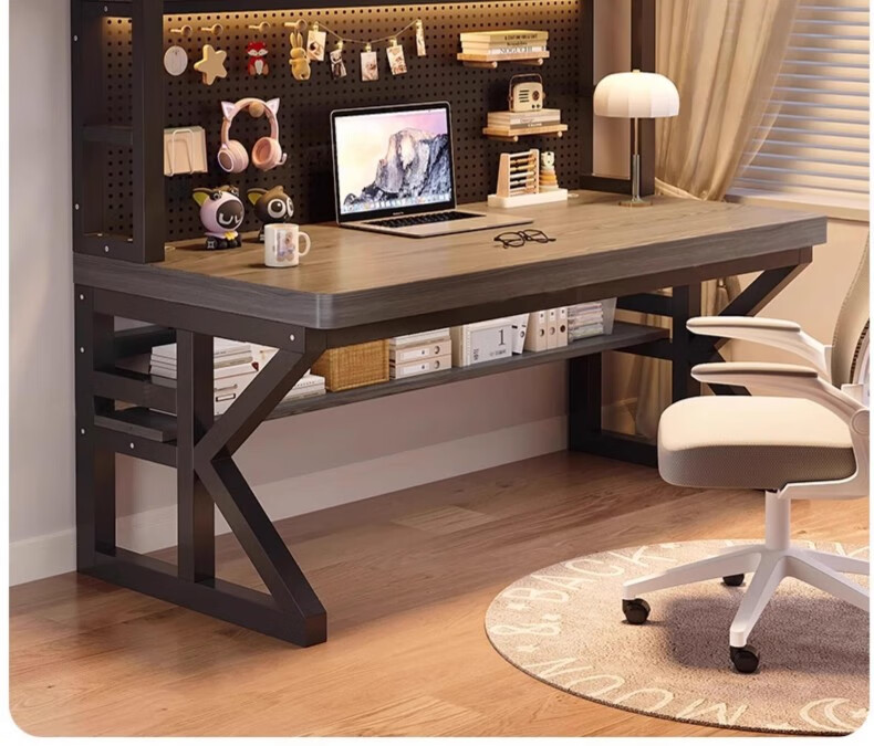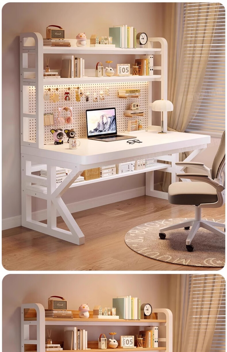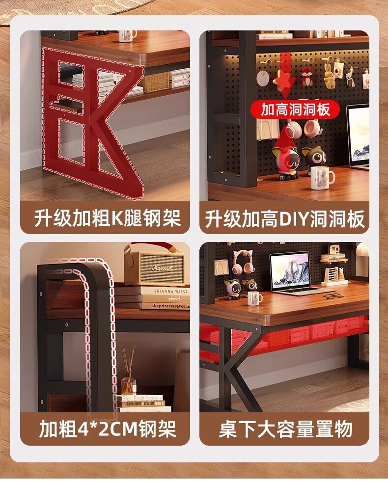 Yanqi Home Delivery Computer Desk Desktop Bookshelf Integrated Desk Desk Perforated Board Student Study Desk Dark Walnut + Black Shelf Extra Thick 3.0CM Solid Wood 100x60x176cm Bookshelf Perforated Board