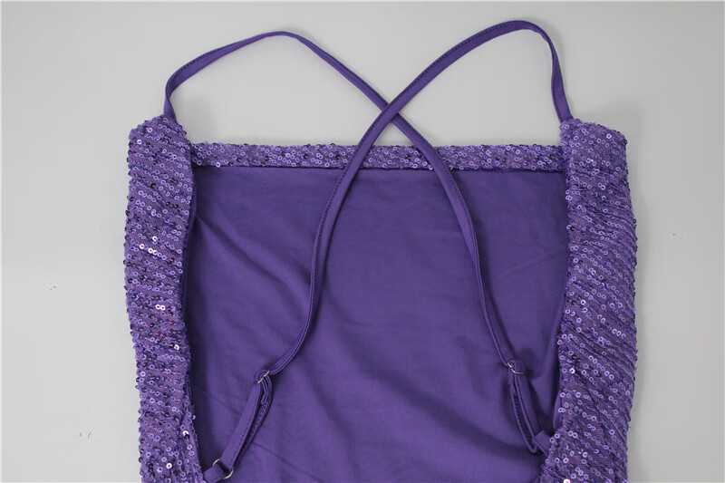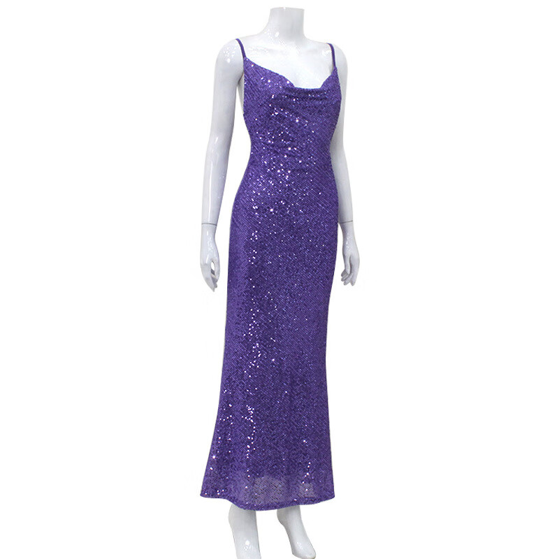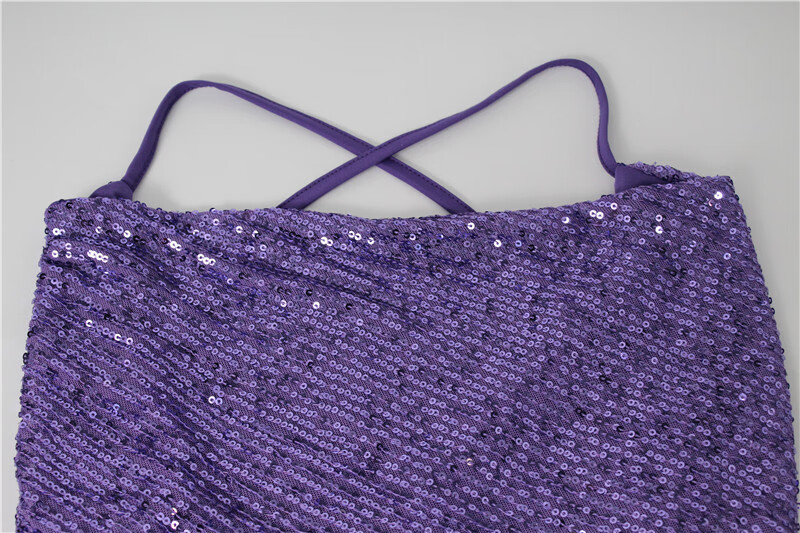 Manyu pure light luxury sequined evening dress European and American sexy low-cut backless suspender skirt slim and elegant fishtail skirt purple ready stock S