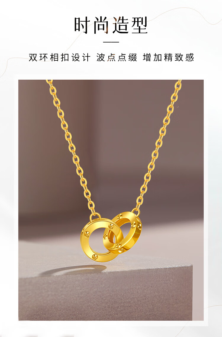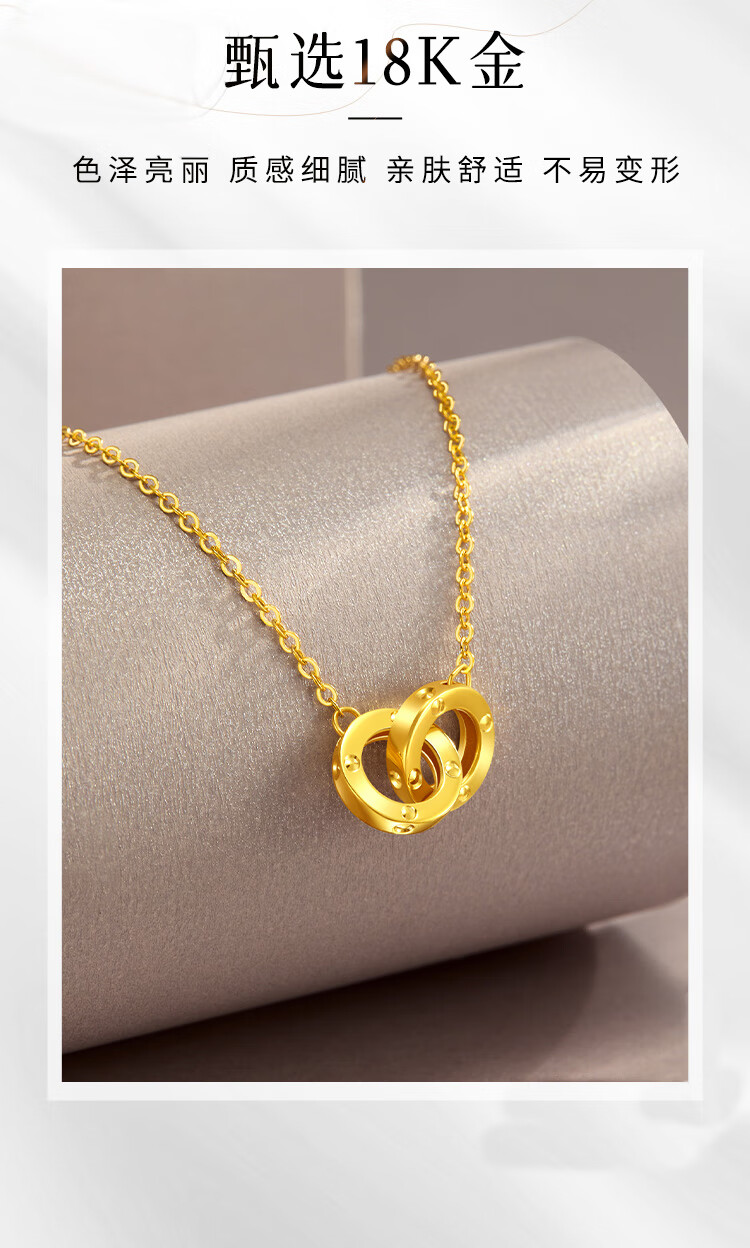 Lao Fengxiang 18K interlocking chain set for women, versatile necklace, fashion jewelry, Valentine's Day birthday gift for girlfriend and wife, 18K interlocking chain set, about 0.75g