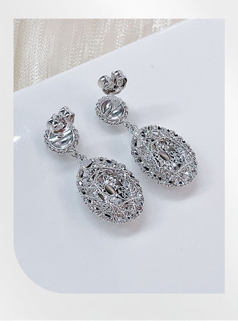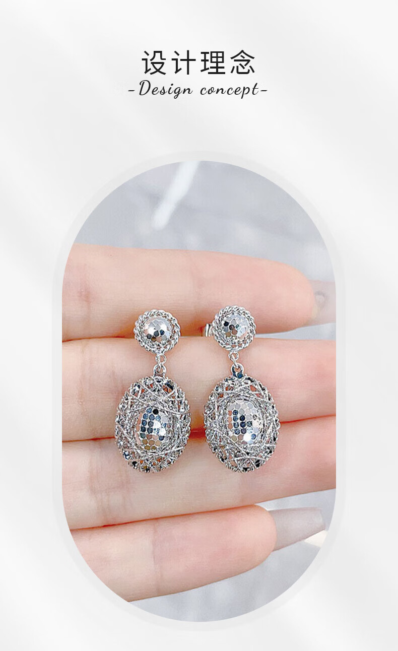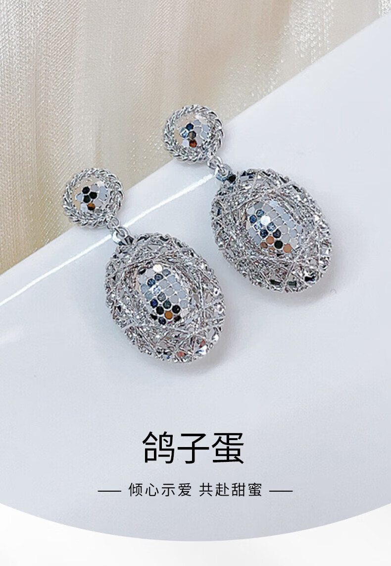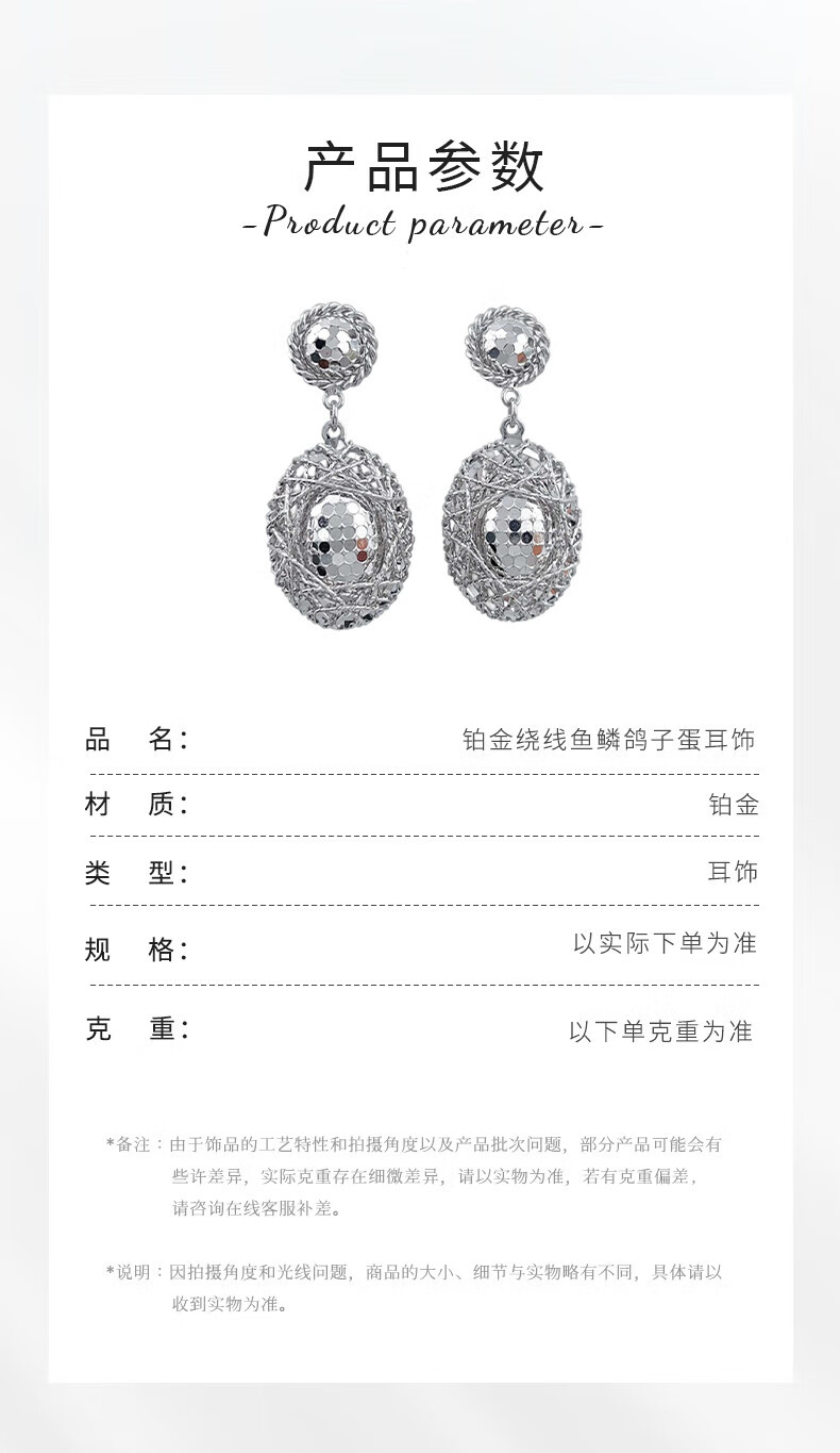 Laofu gold and platinum wire-wrapped fish scale pigeon egg earrings, about 7.88g