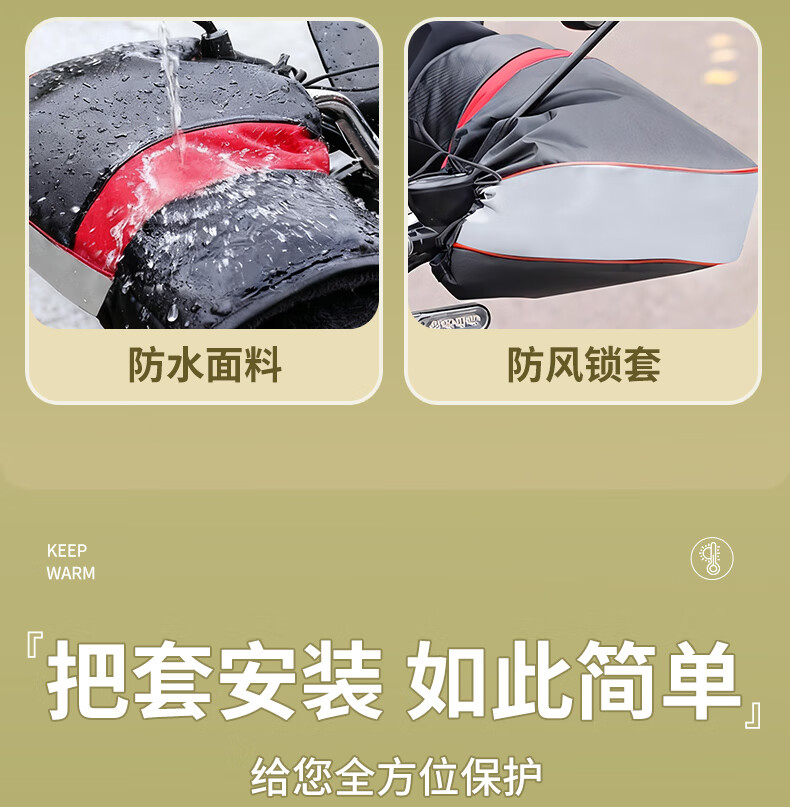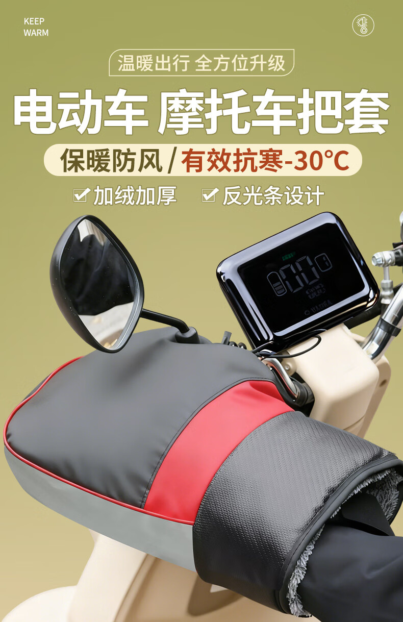 Pioneer electric rider handlebar cover winter windshield motorcycle handlebar cover rain cover plus velvet thickened gloves windproof warm waterproof thickened rainproof cloth reflective strip large diameter