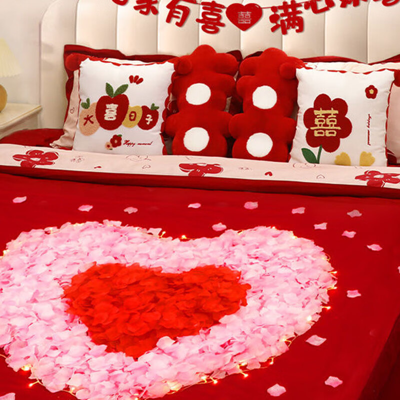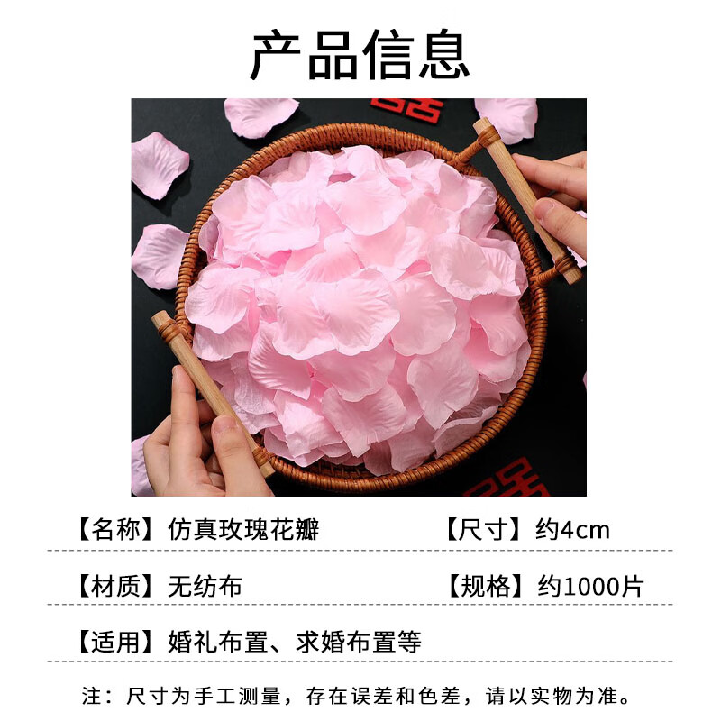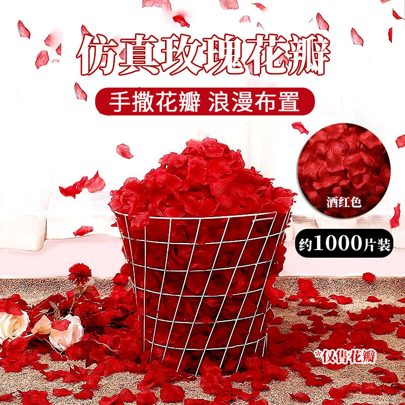 Dongzhitiandi simulated rose fake flower petals for wedding, wedding room, birthday confession, decoration, hand-spreading flowers, proposal, petal rain, simulated rose petals, burgundy, about 1000 pieces